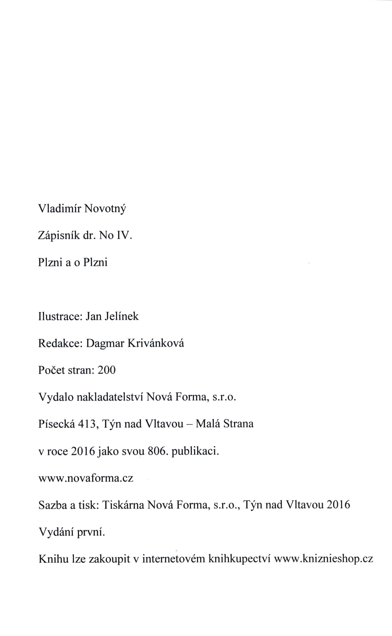 1. Názvové údajeZápisník dr. No IV. : Plzni a o Plzni / Vladimír Novotný ; ilustrace: Jan Jelínek
