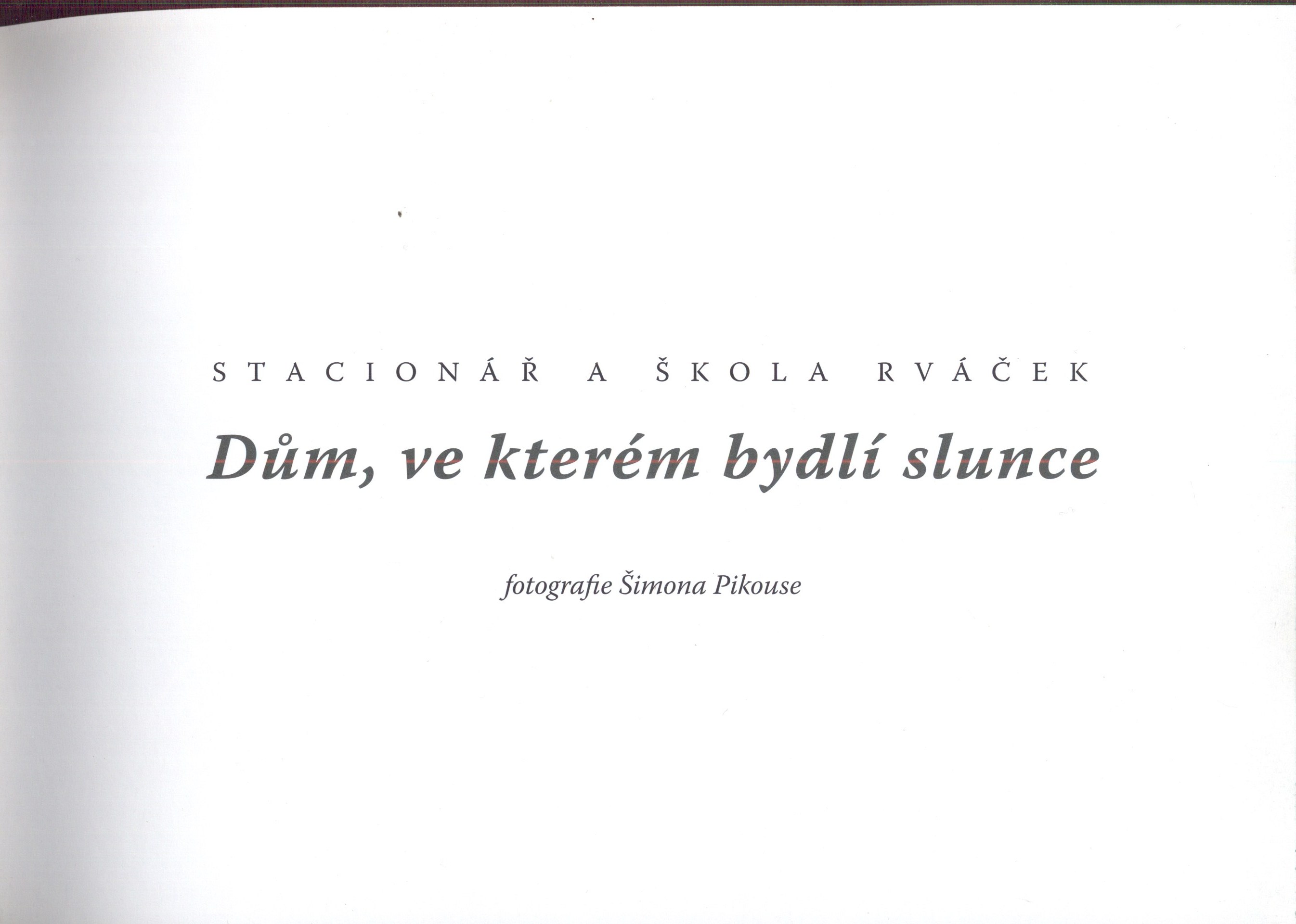 1. Názvové údajeDům, ve kterém bydlí slunce : stacionář a škola Rváček / fotografie Šimona Pikouse
