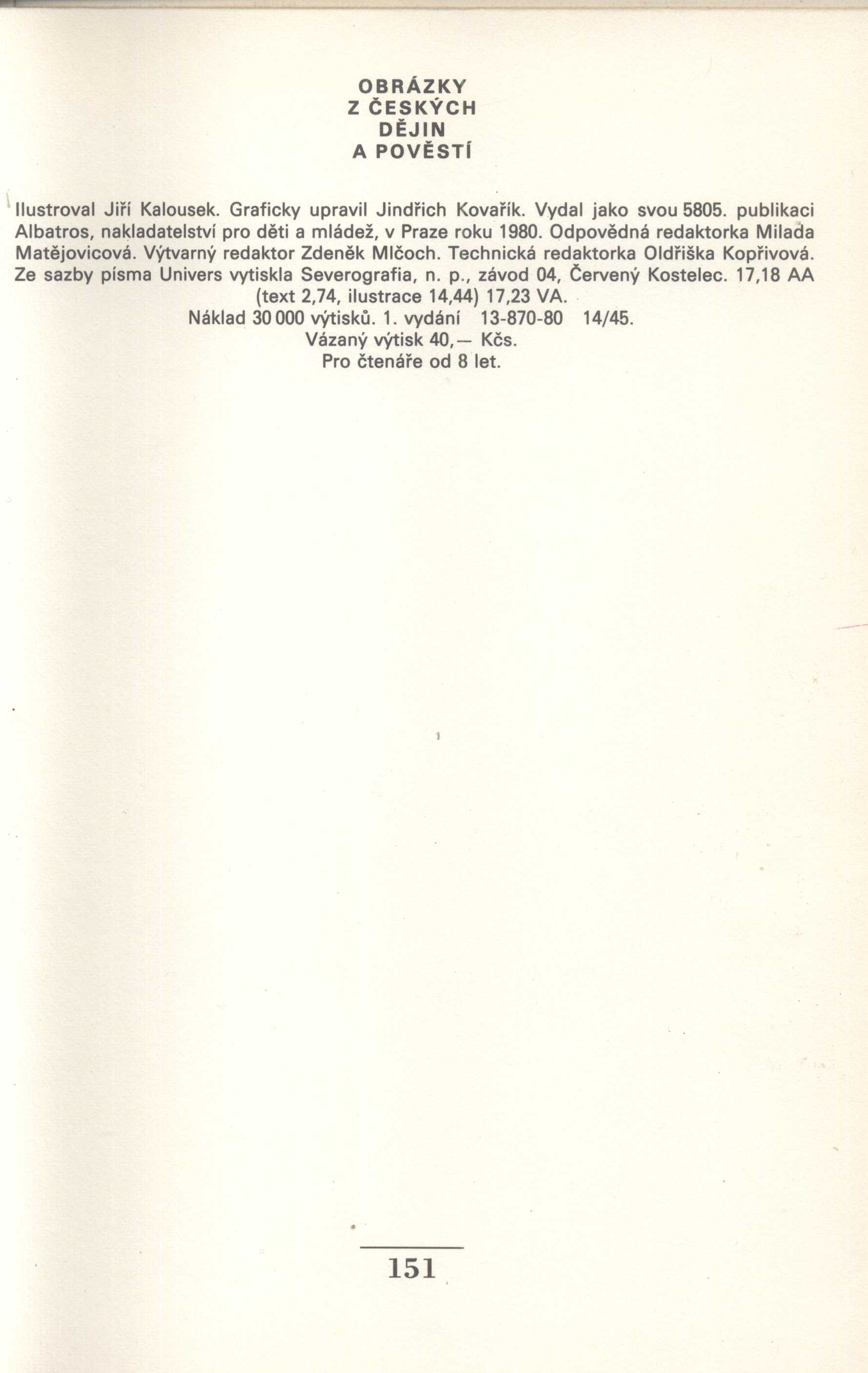 1. Názvové údajeObrázky z českých dějin a pověstí / Zdeněk Adla, Jiří Černý ; ilustroval Jiří Kalousek