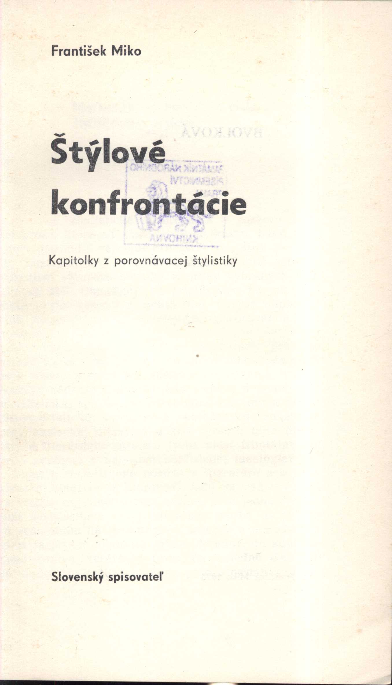 2. Názvové údajeŠtýlové konfrontácie : kapitolky z porovnávacej štylistiky / František Miko