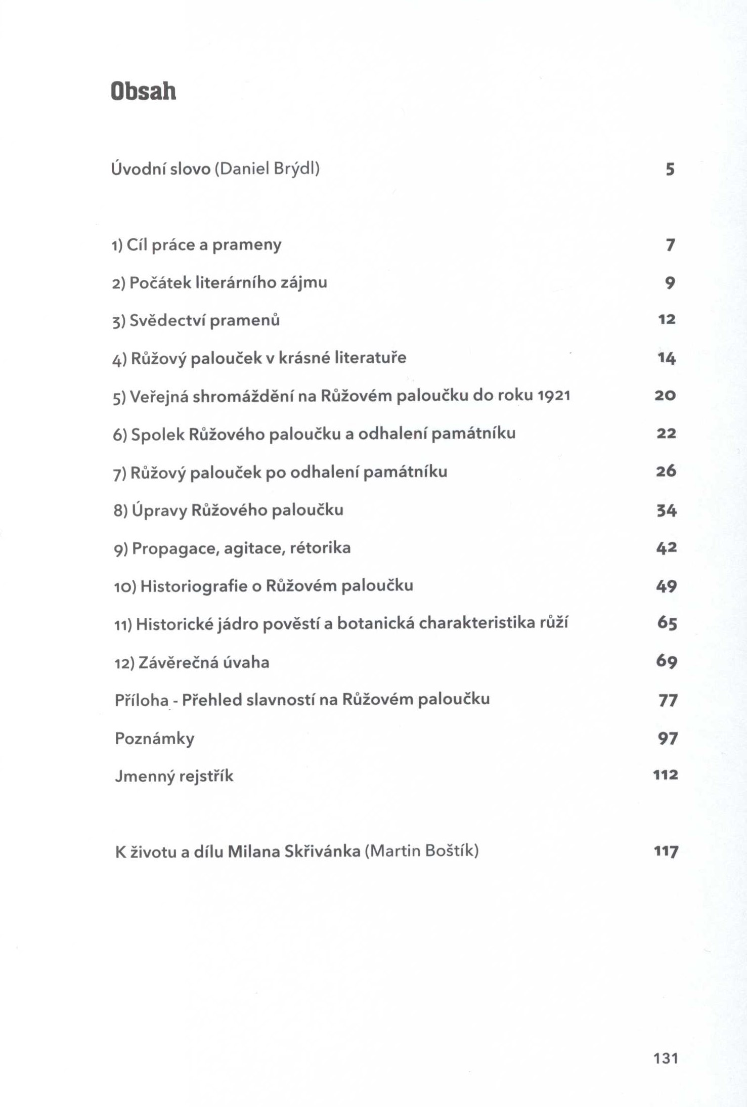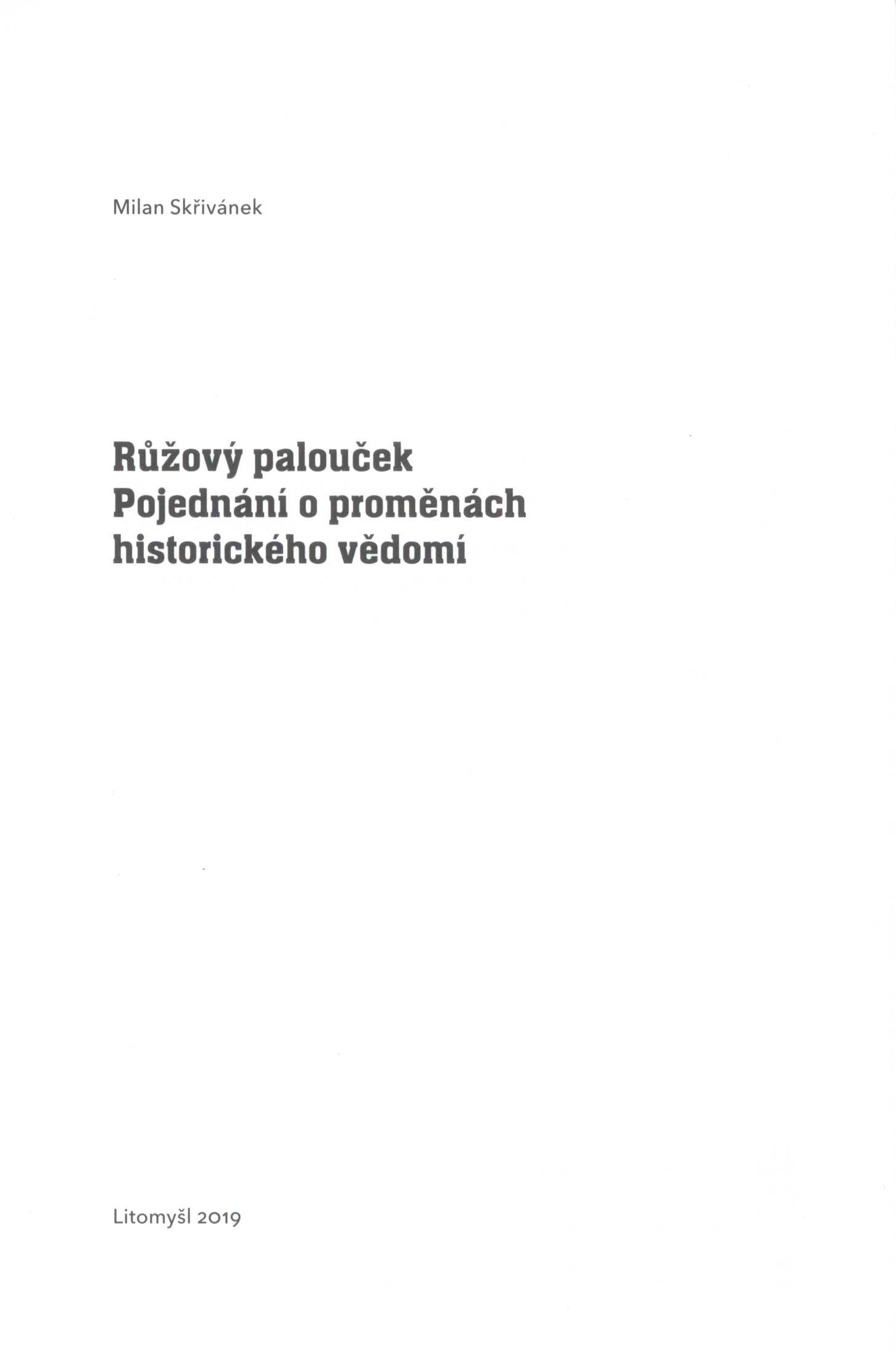 1. Názvové údajeRůžový palouček : pojednání o proměnách historického vědomí / Milan Skřivánek ; úvodní slovo Daniel Brýdl ; příprava k vydání, jmenný rejstřík a závěrečný text Martin Boštík ; grafická úprava a sazba Jiří Lammel