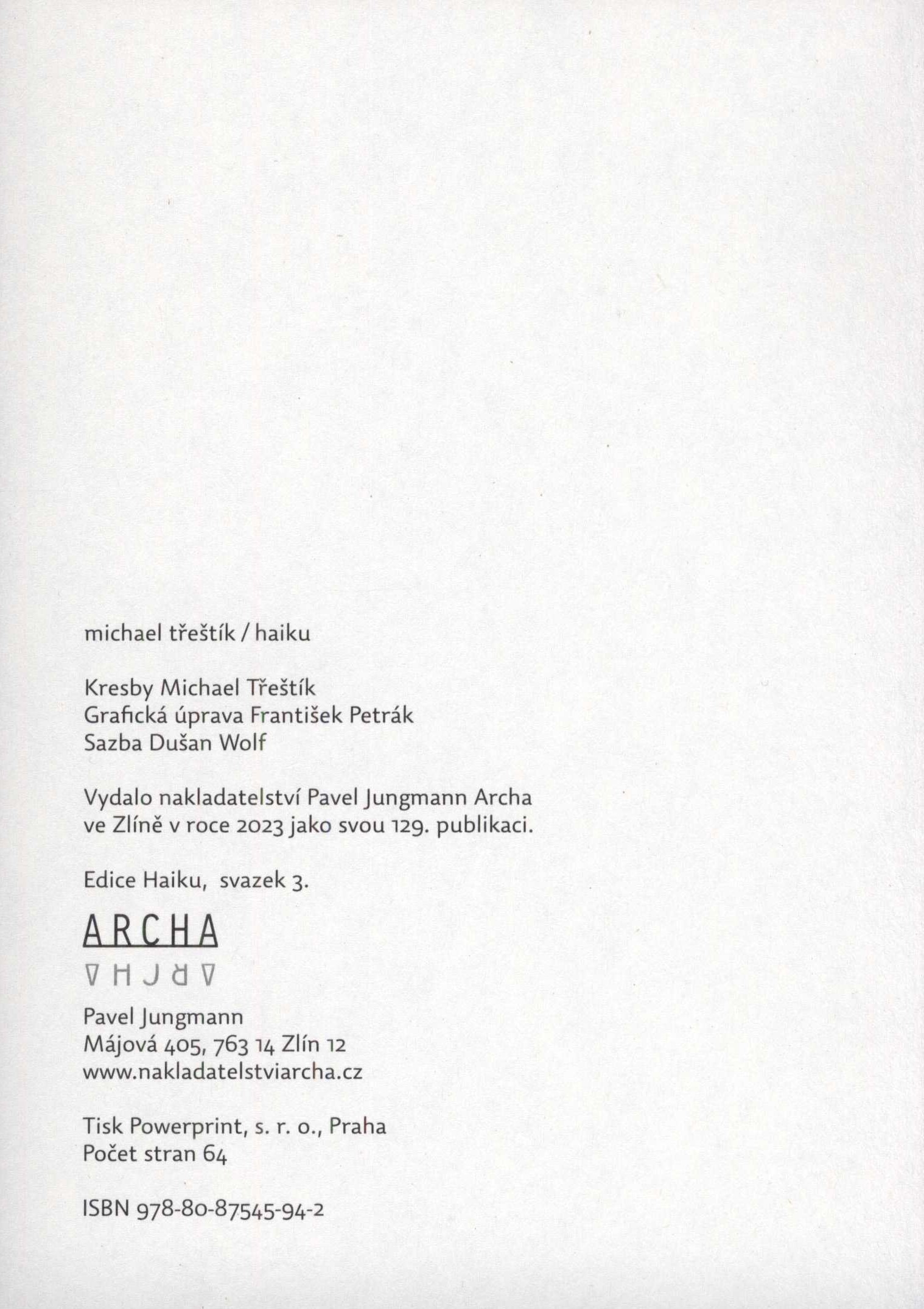 Názvové údajeHaiku / Michael Třeštík ; kresby Michael Třeštík ; grafická úprava František Petrák