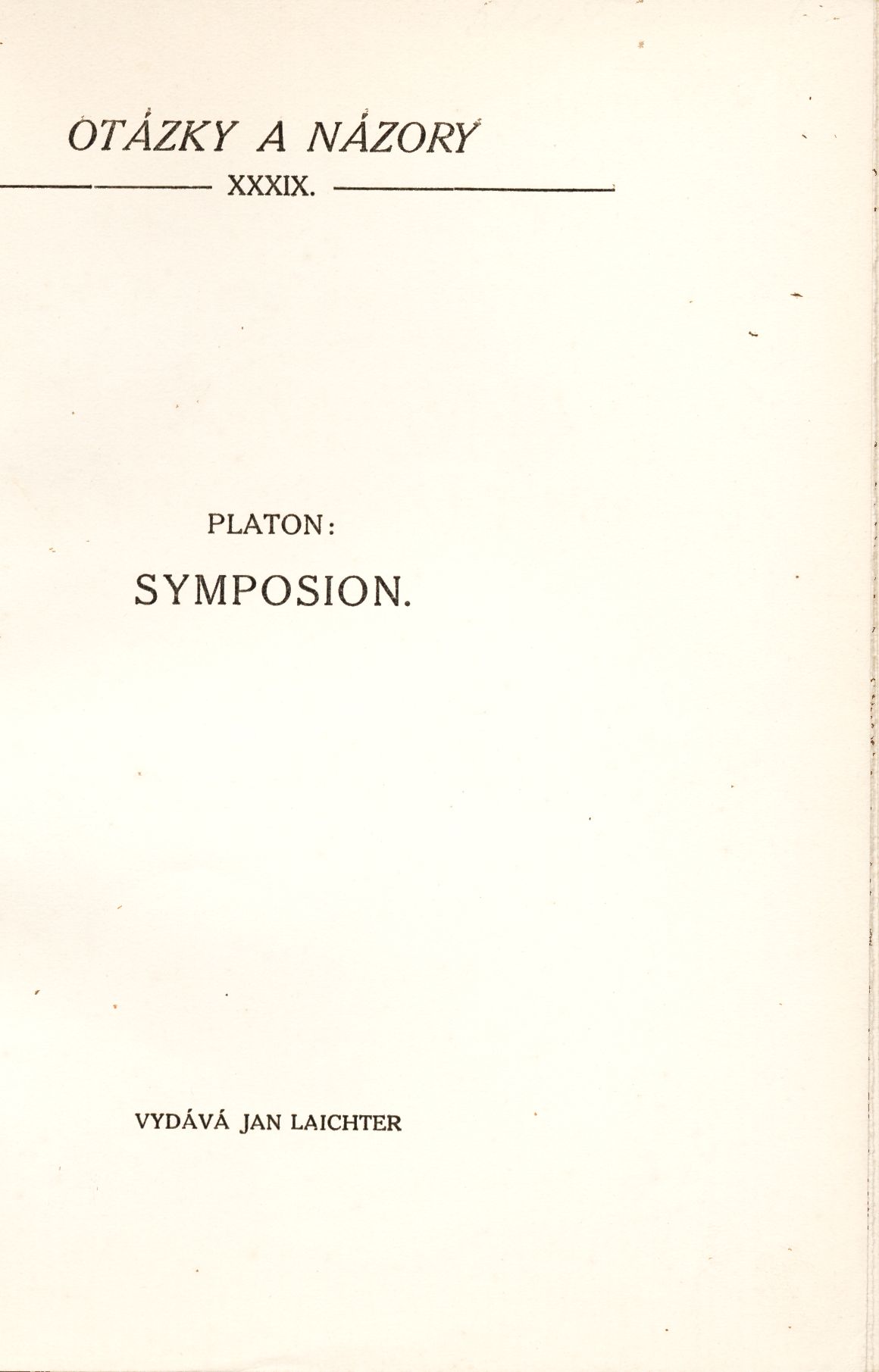 Klíčová slova řecká literatura * antická literatura * Platon * rozmluvy * filozofie * láska * český překlad * Novotný F. * umělecká knižní vazba