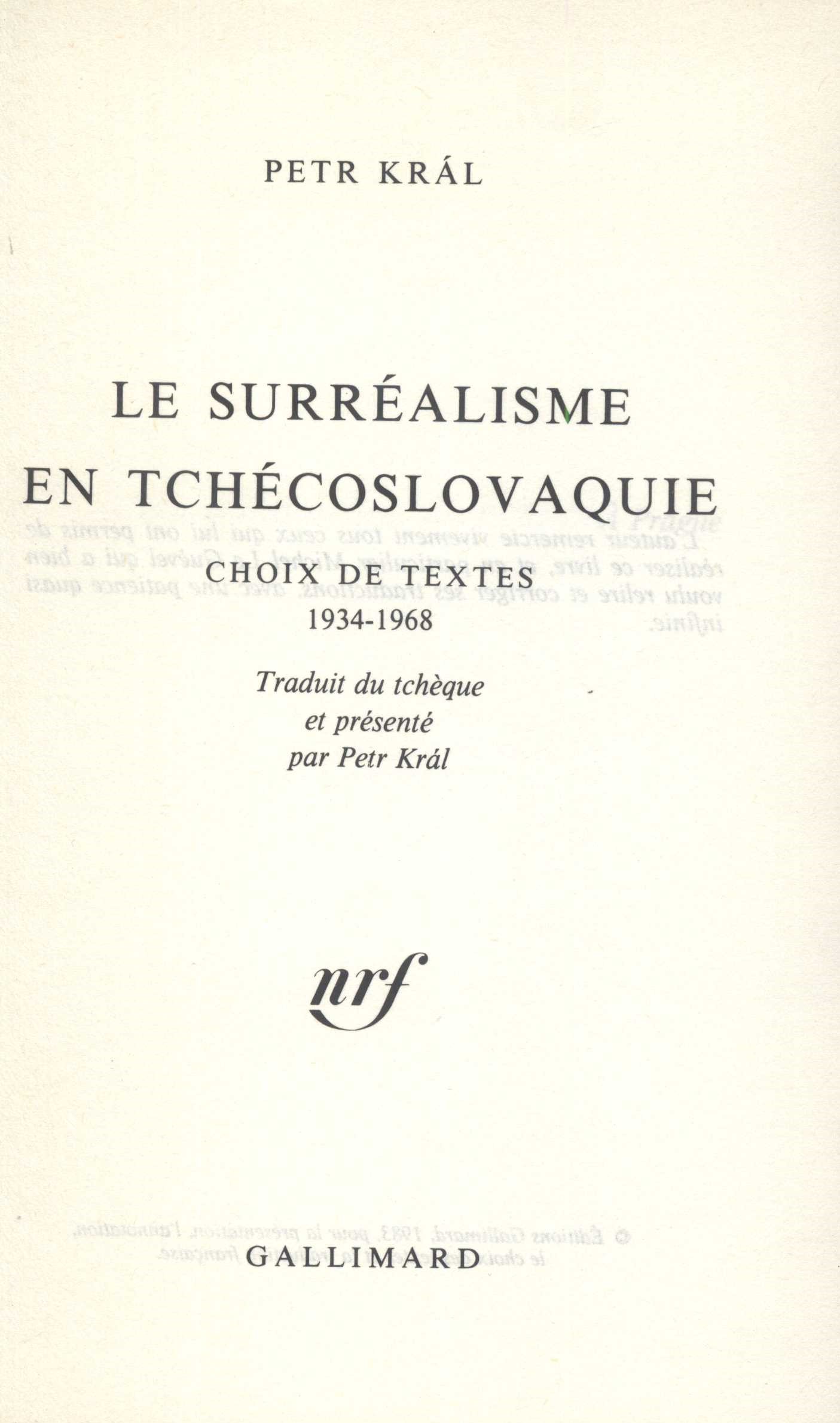 1. Názvové údajeLe surréalisme en Tchécoslovaquie : choix de textes 1934-1968 / Petr Král ; traduit de tchèque et présenté par Petr Král