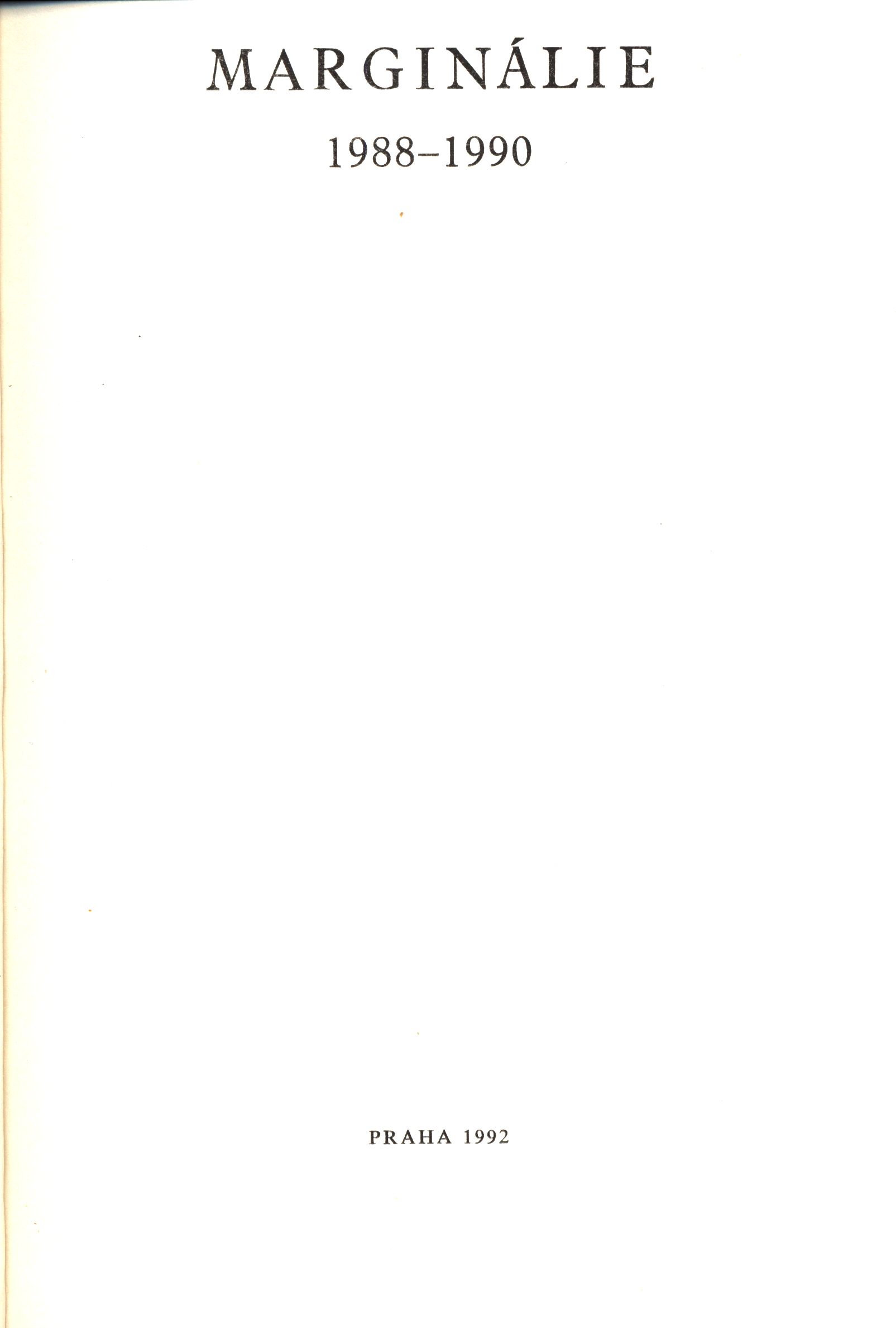 1. Názvové údajeMarginálie 1988-1990 : členská prémie Spolku českých bibliofilů / redigovali Jiří Holý a František Prošek ; obálku navrhl a typograficky upravil Martin Dyrynk
