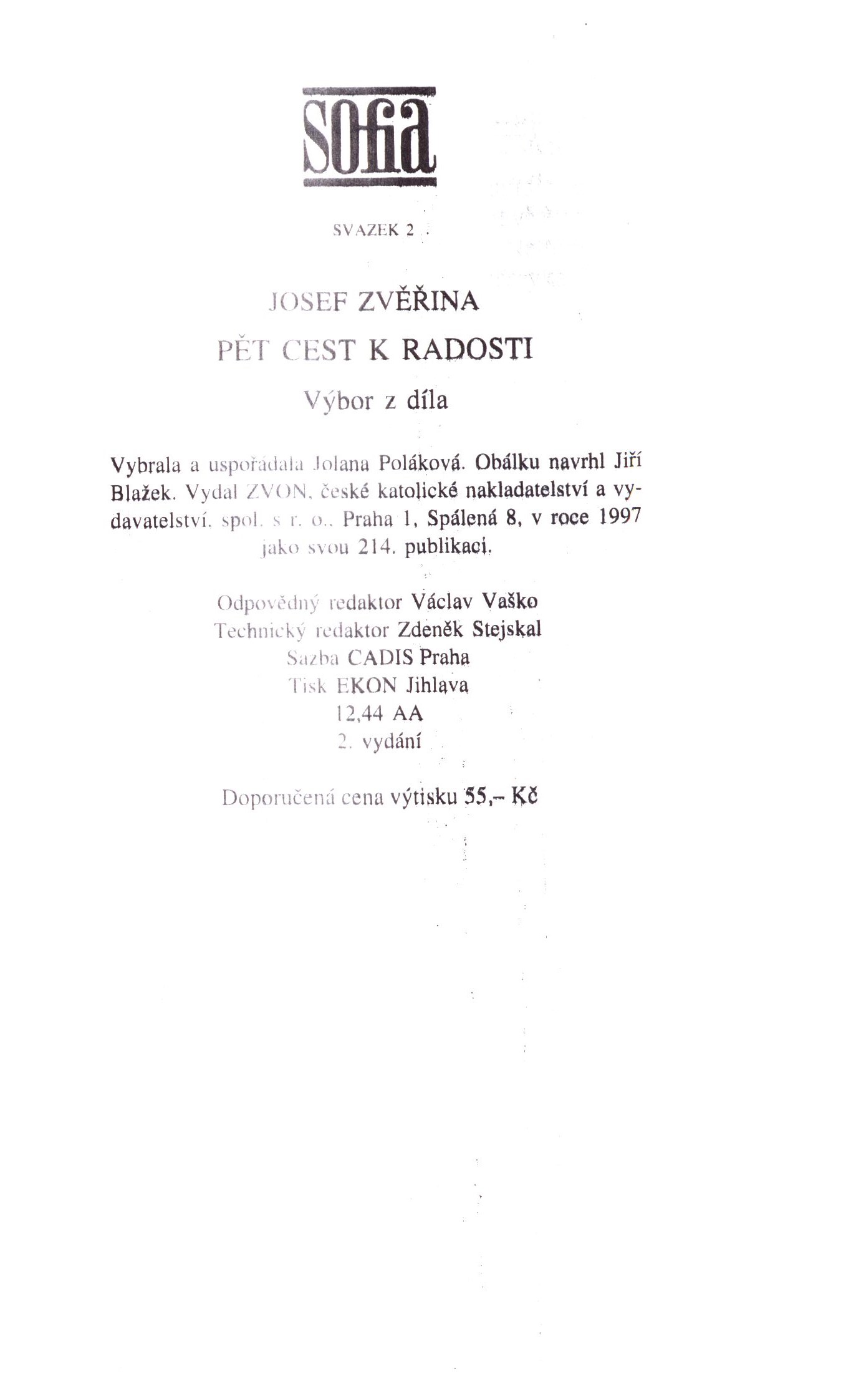 1. Názvové údajePět cest k radosti / Josef Zvěřina ; vybrala a uspořádala Jolana Poláková ; obálku navrhl Jiří Blažek