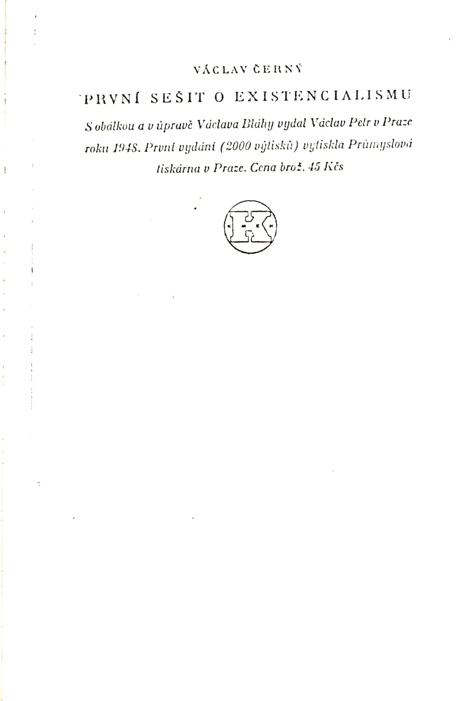 1. Názvové údajePrvní sešit o existencialismu / Václav Černý ; s obálkou a v úpravě Václava Bláhy