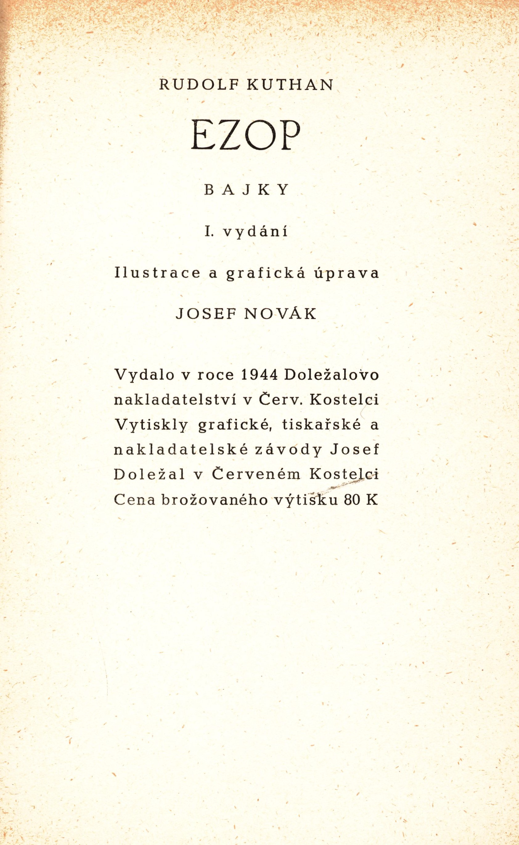 Názvové údajeEzop : bajky / Rudolf Kuthan ; ilustrace a grafická úprava Josef Novák