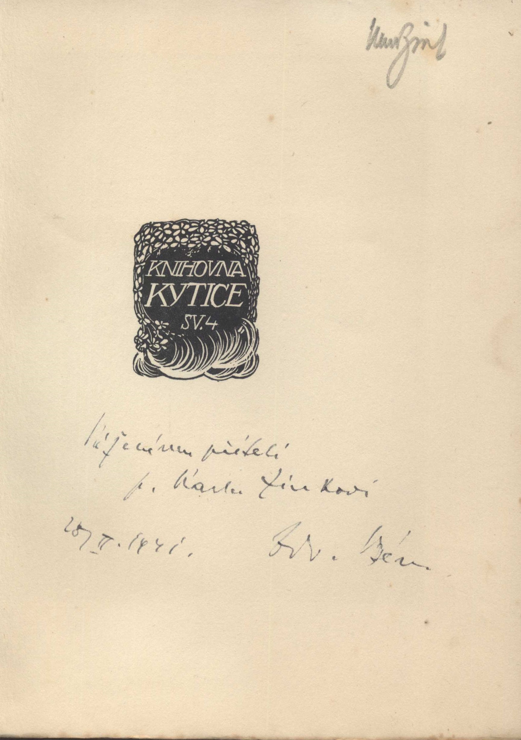 Názvové údaje Lysistrate : komedie / Aristofanes ; z řečtiny přeložil Ferdinand Stiebitz ; upravil V. H. Brunner ; vazbu provedl Zd. a J. Nožička Autor Aristofanés, asi 445-asi 386 př. Kr. (Autor) Další autoři Stiebitz, Ferdinand, 1894-1961 (Překladatel) (Autor doslovu, tiráže atd.) Brunner, Vratislav Hugo, 1886-1928 (Knižní grafik) Nožička, Jan (Vazač) Nožička, Zdeněk (Vazač) Korp. Kvasnička a Hampl (nakladatelství) (Nakladatel, vydavatel) "Grafia", dělnická knihtiskárna (tiskárna, nakladatelství) (Tiskař) Nakladatel [Praha : Kvasnička a Hampl], 1927 Výrobce Grafia Rozsah 101 , iii stran Klíčová slova antická literatura * antické drama * řecké divadlo * řecká literatura * komedie * bibliofilie * bibliofilské tisky * bibliofilský tisk Počet ex. 5, z toho volných 5 Druh dok. monografie Signatura KaG XVI B2 318, Hoffmeister 0537, P 92 a 33, Biebl 28, P 134 f 41 Názvové údaje Běsové : (životní drama Dostojevského) / Jan Bartoš Osobní jméno Bartoš, Jan, 1893-1946 (Autor) (Nakladatel, vydavatel) Další autoři Zink, Karel, 1889-1975 (Dřívější majitel) Korp. "Grafia", dělnická knihtiskárna (tiskárna, nakladatelství) (Tiskař) Nakladatel Praha : nákladem vlastním, 1914 Výrobce V Praze : tiskem "Grafie", dělnické knihtiskárny Rozsah 26 stran, 1 nečíslovaný list obrazové přílohy : fotografie ; 19 cm Osobní hesla Dostojevskij, Fedor Michajlovič, 1821-1881 - ruský spisovatel Klíčová slova česká literatura * pojednání * Bartoš J. * ruská literatura * ruští spisovatelé * Dostojevskij F. M. Počet ex. 1, z toho volných 1 Druh dok. monografie Signatura VZinková 0512 Názvové údaje Miroslav Tyrš : studie kritická : s 22 přílohami / Jos. Bartoš Osobní jméno Bartoš, Josef, 1887-1952 (Autor) Další autoři Vaníček, Karel, 1860-1926 (Dřívější majitel) Korp. "Grafia", dělnická knihtiskárna (tiskárna, nakladatelství) (Tiskař) Spolek výtvarných umělců Mánes (Nakladatel, vydavatel) Nakladatel Praha : Nákladem Spolku výtvarných umělců Manes, 1916 Výrobce (Tiskem Grafie, dělnické tiskárny) Rozsah 100 s., [22] příl. Osobní hesla Tyrš, Miroslav, 1832-1884 - univerzitní profesor, historik umění, zakladatel Sokola Klíčová slova česká literatura * studie * sport * tělesná výchova * filozofie * metodika * estetika * Sokol * Tyrš M. * r. 1916 Počet ex. 7, z toho volných 7 Druh dok. monografie Signatura MUK 368, LK Knytl 1656, LK P 54 f 55, LK P XVII d 18, LK M 200 c 28, KaG XIII D 183, KaG XXXVIII B 24 Názvové údaje Zdeněk Fibich : s 18 obrazovými přílohami a 4 facsimily / Josef Bartoš Osobní jméno Bartoš, Josef, 1887-1952 (Autor) Další autoři Spolek výtvarných umělců Mánes (Nakladatel, vydavatel) "Grafia", dělnická knihtiskárna (tiskárna, nakladatelství) (Tiskař) Štencův grafický závod (Leptař) (Tiskař obrazu) Nakladatel V Praze : nákladem Spolku výtvarných umělců Manes, 1914 Výrobce (tiskem Grafie, dělnické tiskárny) Rozsah [7], 108 s., [1+21] l. obr. příl. ; 17 cm Osobní hesla Fibich, Zdeněk, 1850-1900 - hudební skladatel Klíčová slova česká literatura * biografie * monografie * hudební skladatelé * česká hudební tvorba * Fibich Z. * obrazové přílohy Počet ex. 1, z toho volných 1 Druh dok. monografie Signatura Topič 0507 Názvové údaje Zdeněk Fibich : s 18 obrazovými přílohami a 4 facsimily / Josef Bartoš Osobní jméno Bartoš, Josef, 1887-1952 (Autor) Další autoři "Grafia", dělnická knihtiskárna (tiskárna, nakladatelství) (Tiskař) Spolek výtvarných umělců Mánes (Nakladatel, vydavatel) Nakladatel Praha : Nákladem Spolku výtvarných umělců Manes, 1914 Výrobce (Tiskem Grafie, dělnické tiskárny) Rozsah 108 s., [22] příl. Osobní hesla Fibich, Zdeněk, 1850-1900 - hudební skladatel Klíčová slova česká literatura * česká hudba * monografie * česká hudební tvorba * hudební skladatelé * moderní umění * Fibich Z. Počet ex. 1, z toho volných 1 Druh dok. monografie Signatura KaG XXXVIII B 21 Názvové údaje Černá a zlatá / Edvard Bém ; původní dřevorytová výzdoba, celková úprava a návrh vazby F. Koblihy Osobní jméno Bém, Edvard, 1883-1945 (Autor) (Dedikátor) (Autor podpisu) Další autoři Kobliha, František, 1877-1962 (Ilustrátor) (Knižní grafik) (Výtvarník vazby) Kaláb, Method, 1885-1963 (Typograf) (Autor obálky) Malík, Antonín, 1882-1918 (Vazač) Zink, Karel, 1889-1975 (Dedikant) (Autor podpisu) Korp. Milan Svoboda (nakladatelství) (Nakladatel, vydavatel) "Grafia", dělnická knihtiskárna (tiskárna, nakladatelství) (Tiskař) Nakladatel V Roudnici n. L. : Milan Svoboda, 1912 Výrobce V Praze : Grafia, dělnická knihtiskárna Rozsah 76 stran : ilustrace ; 22 cm Klíčová slova česká literatura * próza * Bém E. * prózy * ilustrace * ilustrační výzdoba * Kobliha F. * bibliofilská vydání * r. 1912 Počet ex. 1, z toho volných 1 Adr. el. zdr. http://krameriusndk.nkp.cz/search/handle/uuid:17360390-6da7-11e5-9e57-005056827e52 Druh dok. monografie Signatura VZinková 0546 Názvové údaje Plancius / Konstantin Biebl ; [úpravu navrhl a kresbu v titulu nakreslil Jindřich Štyrský] Osobní jméno Biebl, Konstantin, 1898-1951 (Autor) (Dedikátor) Další autoři Štyrský, Jindřich, 1899-1942 (Ilustrátor) (Knižní grafik) Slabý, Zdeněk Karel, 1930-2020 (Dedikant) Korp. Nakladatelství B. Janda - Sfinx (Nakladatel, vydavatel) "Grafia", dělnická knihtiskárna (tiskárna, nakladatelství) (Tiskař) Nakladatel Praha : Sfinx - B. Janda, 1931 Výrobce (Grafia) Rozsah 26 s. : il. Klíčová slova česká próza * Jáva * avantgarda * česká avantgarda * literární avantgarda * cestopisné fejetony * poetismus Počet ex. 4, z toho volných 4 Druh dok. monografie Signatura C12b 11158, ZKSlabý 0608, C12b 13755, KaG XVI B2 185 Názvové údaje Výstava Česká tradice v 19. století / katalog Anna Masaryková ; instalace Jarosl