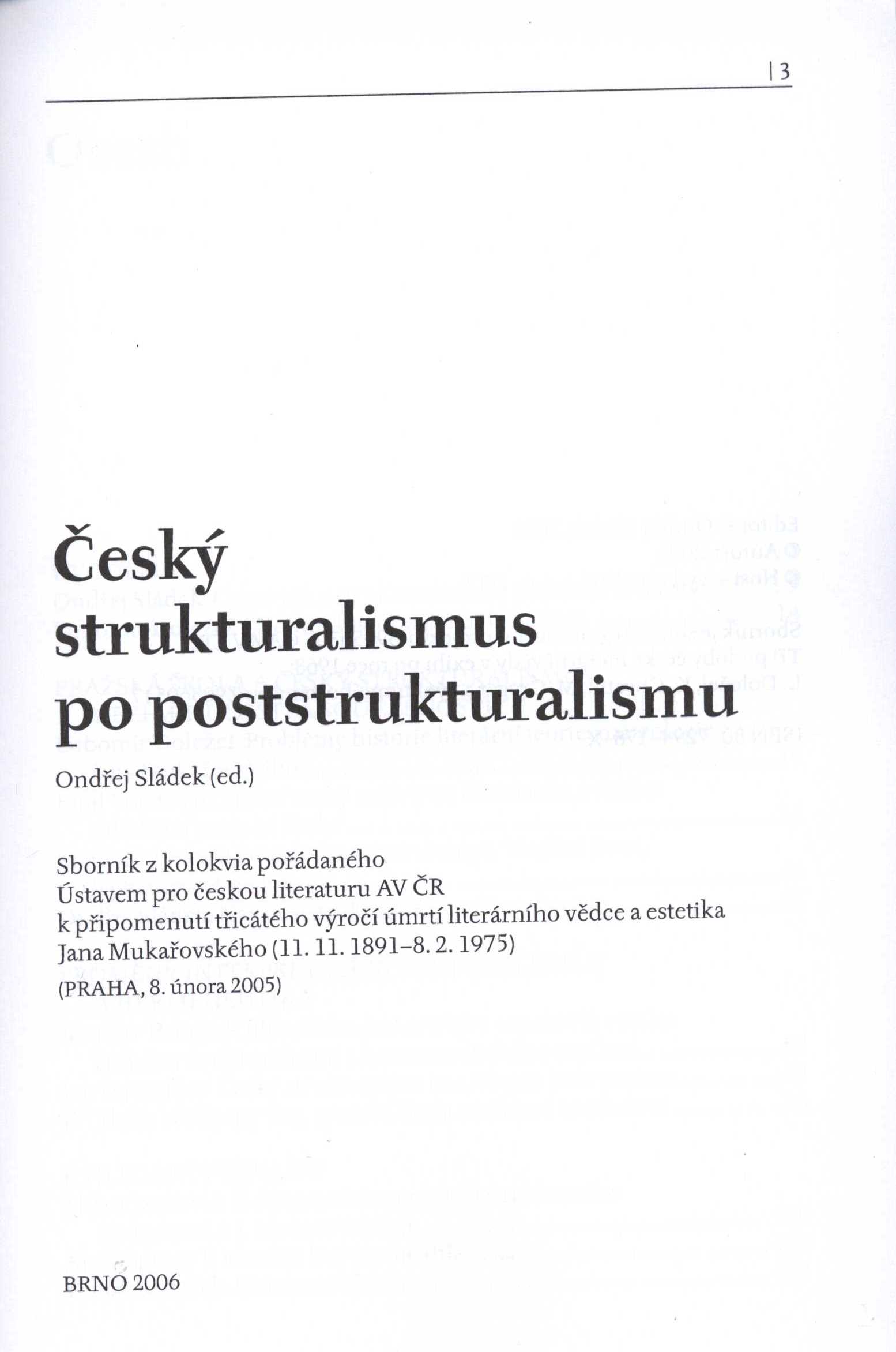 Názvové údaje Autenticita a literatura : sborník referátů z literární konference 41. Bezručovy Opavy 16.-17. 9. 1998 / [redigoval Vladimír Křivánek] Záhlaví-akce 41. Bezručova Opava (1998 : Opava) Další autoři Křivánek, Vladimír, 1951-2022 (Editor) Korp. Slezské zemské museum (Opava, Česko) (Nakladatel, vydavatel) Ústav pro českou literaturu (Akademie věd ČR) (Nakladatel, vydavatel) Slezská univerzita v Opavě (Nakladatel, vydavatel) Nakladatel Opava : Slezské zemské muzeum : Ústav pro českou literaturu : Slezská univerzita, 1999 Rozsah 143 s. Klíčová slova česká literatura * sborník příspěvků * literární věda * literárněvědná konference * Opava * r. 1998 Počet ex. 2, z toho volných 2 Druh dok. monografie Signatura C12c 983, R&AHamanovi 0797 Názvové údaje Z toho, co bylo - zůstává to, co bude : básník a kritik Antonín Brousek / Lucie Antošíková ; obálka (s použitím fotografie Josefa Chuchmy) a grafická úprava Boris Mysliveček Osobní jméno Antošíková, Lucie, (Autor) 1982- Další autoři Mysliveček, Boris, 1948- (Autor obálky) (Knižní grafik) Chuchma, Josef, 1959- (Fotograf) Korp. Ústav pro českou literaturu (Akademie věd ČR) (Nakladatel, vydavatel) Host (nakladatelství) (Nakladatel, vydavatel) Tiskárna Reprocentrum (Tiskař) Nakladatel Praha : Ústav pro českou literaturu AV ČR, v.v.i. ; Brno : Host, 2017 Výrobce Blansko : Reprocentrum, a.s. Rozsah 231 stran : ilustrace, portréty, faksimile ; 21 cm Osobní hesla Brousek, Antonín, 1941-2013 - bohemista, redaktor, básník, literární kritik, překladatel, pedagog Chronologie 20. století Předmětová hesla Czech poetry - 20th century * literary life - Czechia - 20th century * literary criticism - Czechia - 20th century * literary criticism and history * interpretation and reception of literature Klíčová slova česká literatura * monografie * literární život * literární kritika * literárněvědné rozbory * Brousek A. * česká poezie * interpretace literárního díla * přijetí literárního díla * Česko * stol. 20.-21. Počet ex. 1, z toho volných 1 Druh dok. monografie Signatura C12b 17843 Názvové údaje Z večerní školy versologie. III, Polymetrie, metrika překladu / Miroslav Červenka, Květa Sgallová Osobní jméno Červenka, Miroslav, 1932-2005 (Autor) (Autor úvodu atd.) Další autoři Sgallová, Květuše, 1929- (Autor) (Autor úvodu atd.) Korp. Ústav pro českou literaturu (Akademie věd ČR) (Nakladatel, vydavatel) Alfaprint (tiskárna) (Tiskař) Nakladatel Praha : Ústav pro českou literaturu AV ČR, 1995 Výrobce Alfaprint, spol. s r.o. Rozsah 183 stran ; 20 cm + 1 brožura (18 nečíslovaných stran) Osobní hesla Mickiewicz, Adam, 1798-1855 - polský spisovatel a básník, pedagog * Puškin, Aleksandr Sergejevič, 1799-1837 - ruský básník, prozaik a dramatik Klíčová slova slovanská poezie * sémantika verše * polymetrie * metrika * překlady do češtiny * analýza překladu * Puškin A. S. * Mickiewicz A. * studie Počet ex. 2, z toho volných 2 Druh dok. monografie Signatura M 222 b 14, Holman-Březina 0538 Názvové údaje Český strukturalismus po poststrukturalismu : sborník z kolokvia pořádaného Ústavem pro českou literaturu AV ČR k připomenutí třicátého výročí úmrtí literárního vědce a estetika Jana Mukařovského (11.11.1891-8.2.1975) : Praha, 8. února 2005 / Ondřej Sládek (ed.) ; [obálka Boris Mysliveček] Záhlaví-akce Český strukturalismus po poststrukturalismu (Praha, Česko 2005) Další autoři Sládek, Ondřej, 1976- (Editor) Mysliveček, Boris, 1948- (Autor obálky) Korp. Ústav pro českou literaturu (Akademie věd ČR) (Nakladatel, vydavatel) Tiskárna Reprocentrum (Tiskař) Nakladatel Brno : Host, 2006 Výrobce Reprocentrum) Rozsah 242 s. ; 21 cm Osobní hesla Mukařovský, Jan, 1891-1975 - literární vědec, estetik, pedagog Klíčová slova estetika * literární estetika * literární strukturalismus * literatura * filozofie * Česko * stol. 20. * sborníky z konferencí Počet ex. 2, z toho volných 2 Druh dok. monografie Signatura C12b 9254, R&AHamanovi 0759 Názvové údaje Rukopisy královédvorský a zelenohorský : Dalibor Dobiáš Osobní jméno Dobiáš, Dalibor, 1977- (Autor) Další autoři Krč, Jakub, 1973- (Jiná role) Korp. Ústav pro českou literaturu (Akademie věd ČR) (Jiná role) Akademie věd České republiky. Středisko společných činností (Nakladatel, vydavatel) Serifa (tiskárna) (Tiskař) (Knižní grafik) (Sazeč) Nakladatel Praha : Středisko společných činností AVČR, s. v. v. i., 2018 Výrobce [Praha] : SERIFA, s.r.o. Rozsah 19 stran : ilustrace ; 21 cm Klíčová slova rukopis zelenohorský rukopis královédvorský literatura česká falzifikáty národní obrození * česká literatura * pojednání * rukopisy * Rukopis Královédvorský * Rukopis Zelenohorský * mystifikace * padělky * význam * Česko * stol. 19. * historické vyrovnání * současnost * r. 2018 Počet ex. 1, z toho volných 1 Druh dok. monografie Signatura LITb 00302 Názvové údaje Dílo. Svazek II, (1909-1914) / František Gellner ; [k vydání připravili pracovníci edičního a textologického oddělení Ústavu pro českou literaturu AV ČR Jiří Flaišman ... et al.] Osobní jméno Gellner, František, 1881-1914 (Autor) Další autoři Flaišman, Jiří, 1975- (Editor) Korp. Ústav pro českou literaturu (Akademie věd ČR) (Nakladatel, vydavatel) Tiskárna nakladatelství Karolinum (Tiskař) Nakladatel Praha : Ústav pro českou literaturu AV ČR : Akropolis, 2012 Výrobce (Tiskárna Nakladatelství Karolinum) Rozsah 745 s. : il. ; 24 cm Osobní hesla Gellner, František, 1881-1914 - básník a satirik, prozaik, dramatik, karikaturista, grafik a malíř Klíčová slova česká próza * česká poezie * publicistika * česká literatura * básně * satirické básně * povídky * články * stol. 20. * sebrané spisy * kritické vy