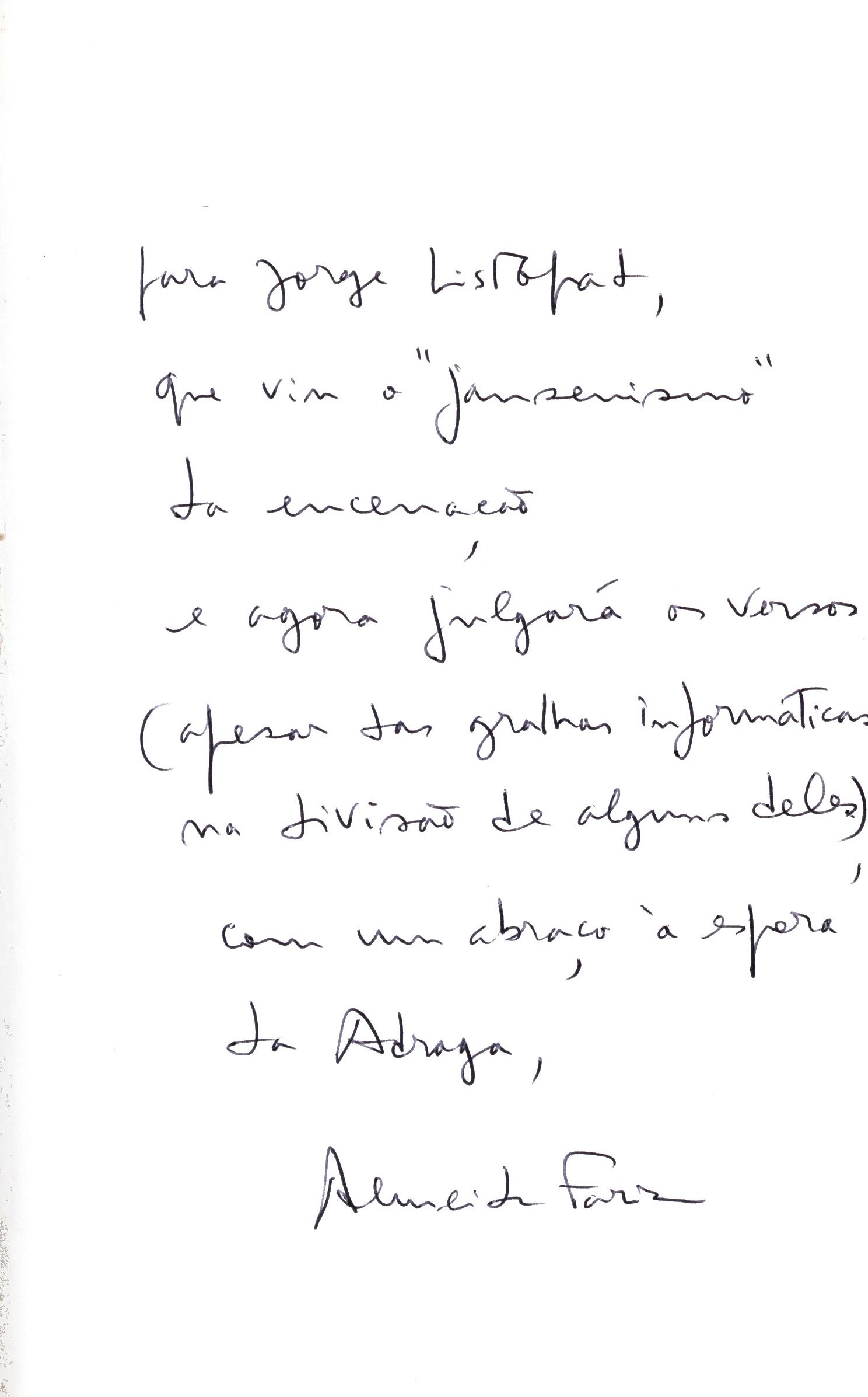 Názvové údaje A Mala dos Marx Brothers / João Camilo Osobní jméno Camilo, João (Autor) Další autoři Editorial Caminho (Nakladatel, vydavatel) Guide-Artes Gráficas (Tiskař) Nakladatel Lisabon : Editorial Caminho, 1988 Výrobce Guide-Artes Gráficas Rozsah 111 stran: čb. fotografie ; 19 cm Klíčová slova portugalská literatura * portugalsky psaná literatura * portugalsky píšící spisovatelé * poezie * básně Počet ex. 1, z toho volných 1 Druh dok. monografie Signatura Listopad 0537 Názvové údaje Árvore sem Voz (Crónicas) seguido de Vagabundos de Nós (Teatro) / Daniel Sampaio Osobní jméno Daniel Sampaio (Autor) Další autoři Editorial Caminho (Nakladatel, vydavatel) Tipografia Lousanense (Tiskař) Nakladatel [Lisboa] : Editorial Caminho, [2004] Výrobce Tipografia Lousanense Rozsah 246 stran ; 21 cm Klíčová slova portugalská literatura * portugalsky psaná literatura * portugalsky píšící spisovatelé * próza * drama Počet ex. 1, z toho volných 1 Druh dok. monografie Signatura Listopad 0642 Názvové údaje O búzio de cós e outros poemas / Sophia de Mello Breyner Andresen Osobní jméno Andresen, Sofia de Melo Breyner, 1919-2004 (Autor) Další autoři Editorial Caminho (Nakladatel, vydavatel) Tipografia Lousanense (Tiskař) Nakladatel Lisabon : Editorial Caminho, 1997 Výrobce Tipografia Lousanense Rozsah 40 stran ; 21 cm Klíčová slova portugalská literatura * portugalsky psaná literatura * portugalsky píšící spisovatelé * poezie * básně Počet ex. 1, z toho volných 1 Druh dok. monografie Signatura Listopad 0547 Názvové údaje A parede azul: estudos sobre poesia e artes plásticas / António Ramos Rosa Osobní jméno Rosa, António Ramos, 1924-2013 (Autor) Další autoři Editorial Caminho (Nakladatel, vydavatel) Nakladatel Lisboa : Caminho, 1991 Výrobce Tecnocor Rozsah 222 stran ; 21 cm Klíčová slova portugalská literatura * portugalsky psaná literatura * stol. 20. * studie Počet ex. 1, z toho volných 1 Druh dok. monografie Signatura Listopad 0349 Názvové údaje Se perguntarem por mim, não estou : seguido de Haja harmonia / Mário de Carvalho Osobní jméno Carvalho, Mário de, 1944- (Autor) Další autoři Listopad, František, 1921-2017 (Dedikant) Korp. Editorial Caminho (Nakladatel, vydavatel) Nakladatel Lisboa : Caminho, 1999 Výrobce Tipografia Lousanense Rozsah 293 stran ; 21 cm Klíčová slova portugalská literatura * portugalsky psaná literatura * stol. 20. Počet ex. 1, z toho volných 1 Druh dok. monografie Signatura Listopad 0427 Názvové údaje Vozes da paixão : teatro / Almeida Faria Osobní jméno Faria, Almeida, 1943- (Autor) (Dedikátor) Další autoři Listopad, František, 1921-2017 (Dedikant) Korp. Editorial Caminho (Nakladatel, vydavatel) Nakladatel Lisboa : Caminho, 1998 Výrobce Tipografia Lousanense Rozsah 178 stran ; 21 cm Klíčová slova portugalská literatura * portugalsky psaná literatura * divadelní adaptace * stol. 20. Počet ex. 1, z toho volných 1 Druh dok. monografie Signatura Listopad 0350