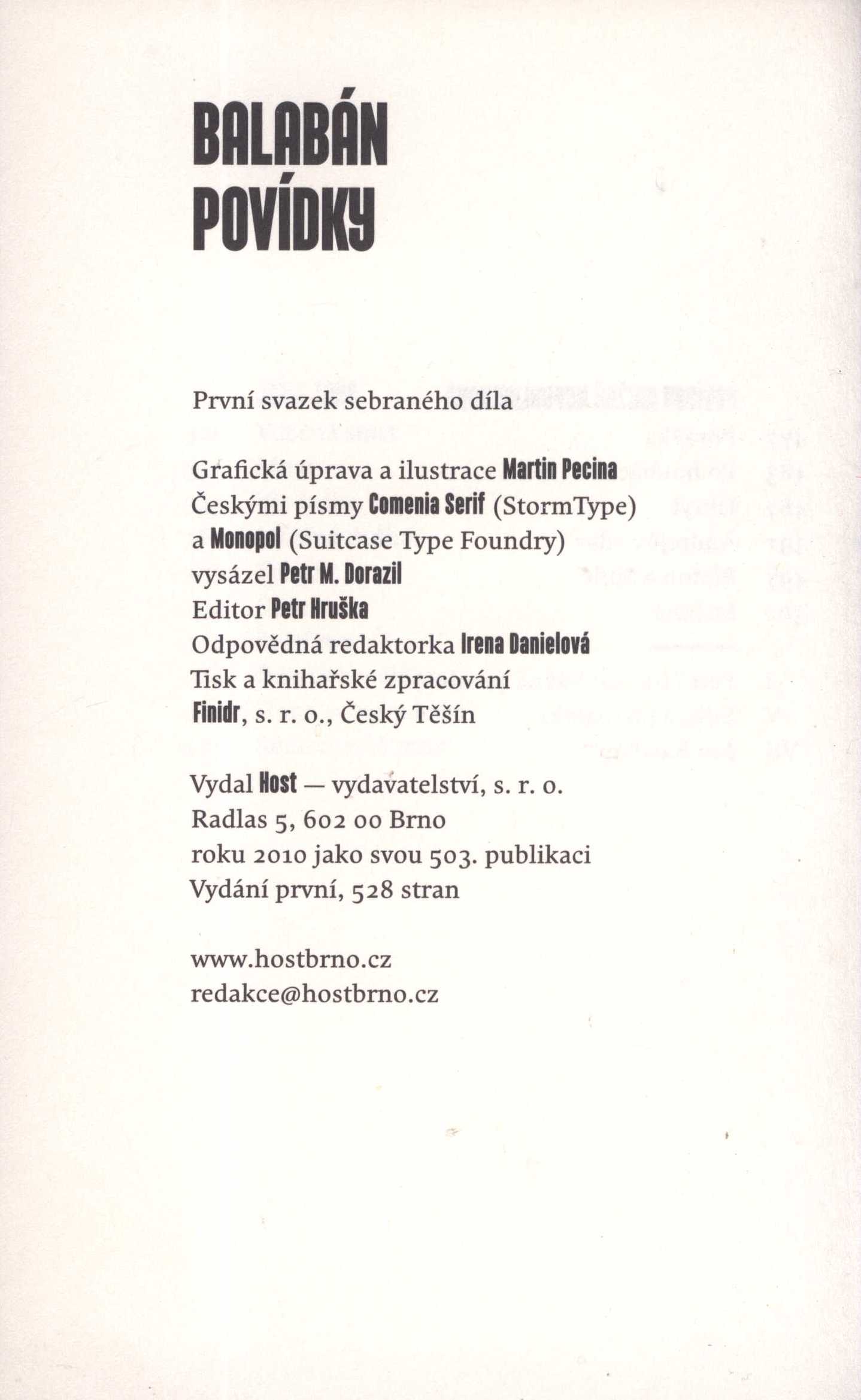 Názvové údaje Listí / Dagmar Voňková ; [k vydání připravil Lubomír Houdek a Jaroslav Riedel ; pořádání, sestavení bloku textů o autorce, diskografie a ediční poznámka Jaroslav Riedel ; ilustrace Dagmar Voňková ; grafická úprava Bedřich Vémola] Osobní jméno Andrtová-Voňková, Dagmar, 1948- (Autor) (Ilustrátor) Další autoři Houdek, Lubomír, 1962- (Editor) Riedel, Jaroslav, 1963- (Editor) (Autor textu doprovodného materiálu) Vémola, Bedřich, 1970- (Knižní grafik) Korp. Galén (nakladatelství) (Nakladatel, vydavatel) Finidr (tiskárna) (Nakladatel, vydavatel) Nakladatel Praha : Galén, 2010 Výrobce Finidr) Rozsah 398 s. : il., portréty Osobní hesla Andrtová-Voňková, Dagmar, 1948- - kytaristka, zpěvačka, hudební skladatelka, textařka Klíčová slova hudební skladatelé * zpěvačky * česká poezie * písňové texty * Česko * stol. 20.-21. * rozhovory * recenze Počet ex. 2, z toho volných 2 Druh dok. monografie Signatura C12b 12824, C12b 15811 Názvové údaje Na krásné modré Dřevnici / Antonín Bajaja ; [obálku a vazbu navrhl Martin Pecina] Osobní jméno Bajaja, Antonín, 1942-2022 (Autor) (Dedikátor) Další autoři Pecina, Martin T., 1982- (Autor obálky) Listopad, František, 1921-2017 (Dedikant) Korp. Host (nakladatelství) (Nakladatel, vydavatel) Finidr (tiskárna) (Tiskař) Nakladatel Brno : Host, 2009 Výrobce Český Těšín : Tiskárna Finidr Rozsah 371 stran ; 21 cm Klíčová slova česká próza * autobiografický román * poválečná doba * nástup komunismu * Zlín (Česko) Počet ex. 2, z toho volných 2 Druh dok. monografie Signatura C12b 12199, Listopad 0003 Názvové údaje Povídky / Jan Balabán ; [grafická úprava a ilustrace Martin Pecina ; vysázel Petr M. Dorazil ; editor Petr Hruška] Osobní jméno Balabán, Jan, 1961-2010 (Autor) Další autoři Pecina, Martin T., 1982- (Knižní grafik) Dorazil, Petr M. (Sazeč) Hruška, Petr, 1964- (Editor) Korp. Host (nakladatelství) (Nakladatel, vydavatel) Finidr (tiskárna) (Tiskař) Nakladatel Brno : Host, 2010 Výrobce Finidr) Rozsah 507, vii s. ; 21 cm Osobní hesla Balabán, Jan, 1961-2010 - překladatel, prozaik Klíčová slova česká literatura * česká próza * povídky * sebrané spisy Počet ex. 1, z toho volných 1 Druh dok. monografie Signatura NK/10 019 Názvové údaje Kronovy děti / Pavel Bareš ; ilustrace Michaela Faktorová (s. 216) a Markéta Maroušková (s. 514) ; obálka ( s použitím ilustrace Karla Jerie) a grafická úprava Alena Gratiasová Osobní jméno Bareš, Pavel, 1994- (Autor) Další autoři Faktorová, Michaela, 1996- (Ilustrátor) Maroušková, Markéta (Ilustrátor) Gratiasová, Alena, 1991- (Autor obálky) (Knižní grafik) Jerie, Karel, 1977- (Umělec) Korp. Host (nakladatelství) (Nakladatel, vydavatel) Finidr (tiskárna) (Tiskař) Nakladatel Brno : Host, 2019 Výrobce Český Těšín : Finidr Rozsah 746 stran ; 21 cm Klíčová slova česká literatura * vědecko-fantastická literatura * próza * fantasy román * lidé * budoucnost Počet ex. 1, z toho volných 1 Druh dok. monografie Signatura C12b 19119 Názvové údaje Evangelium Máří Magdalény / Jan Bauer Osobní jméno Bauer, Jan, 1945-2025 (Autor) Další autoři Palán, Michal, 1987- (Knižní grafik) Bursák, Marcel (Autor obálky) Korp. Moravská Bastei MOBA (nakladatelství) (Nakladatel, vydavatel) Finidr (tiskárna) (Tiskař) Nakladatel Brno : MOBA, 2017 Výrobce Český Těšín : Finidr, s. r. o. Rozsah 380 stran ; 22 cm Klíčová slova česká próza * historické romány Počet ex. 1, z toho volných 1 Druh dok. monografie Signatura C12b 17403 Názvové údaje Jsi můj král : v tajných službách Otce vlasti / Jan Bauer ; grafická úprava Ivana Náplavová ; obálka Marcel Bursák Osobní jméno Bauer, Jan, 1945-2025 (Autor) Další autoři Bauer, Jan, 1945-2025 Král zvedá meč Bauer, Jan, 1945-2025 Arcibiskupův noční host Náplavová, Ivana (Knižní grafik) Bursák, Marcel (Autor obálky) Korp. Moravská Bastei MOBA (nakladatelství) (Nakladatel, vydavatel) Finidr (tiskárna) (Tiskař) Nakladatel Brno : MOBA, 2018 Výrobce Český Těšín : FINIDR, s. r. o. Rozsah 398 stran ; 21 cm Osobní hesla Karel IV., český král a římský císař, 1316-1378 Předmětová hesla kings and rulers - Czechia - 14th century Geografické heslo Czechia - history - 14th century Klíčová slova česká literatura * próza * historický román * Jan Lucemburský český král a lucemburský hrabě * dominikánský mnich * osobní strážce * Karel IV. český král a římský císař * životní osudy * Česko * stol. 14. Počet ex. 1, z toho volných 1 Druh dok. monografie Signatura C12b 18555 Názvové údaje Smrt na Karlštejně : detektivní román z doby vlády Václava IV. / Jan Bauer ; grafická úprava Zdenka Gelnarová ; obálka Marcel Bursák/PT MOBA Osobní jméno Bauer, Jan, 1945-2025 (Autor) Další autoři Gelnarová, Zdenka (Knižní grafik) Bursák, Marcel (Autor obálky) Korp. Moravská Bastei MOBA (nakladatelství) (Nakladatel, vydavatel) Finidr (tiskárna) (Tiskař) Nakladatel Brno : MOBA, 2017 Výrobce Český Těšín : Finidr, s. r. o. Rozsah 222 stran ; 21 cm Klíčová slova česká literatura * próza * detektivky * historické náměty * středověk * Česko Počet ex. 1, z toho volných 1 Druh dok. monografie Signatura C12b 17693 Názvové údaje Smrt podle hvězd : mordy v časech císaře Rudolfa II. / Jan Bauer ; grafická úprava Petr Gabzdyl ; obálka Marcel Bursák/PT MOBA Osobní jméno Bauer, Jan, 1945-2025 (Autor) Další autoři Gabzdyl, Petr, 1978- (Knižní grafik) Bursák, Marcel (Autor obálky) Korp. Moravská Bastei MOBA (nakladatelství) (Nakladatel, vydavatel) Finidr (tiskárna) (Tiskař) Nakladatel Brno : MOBA, 2018 Výrobce Český Těšín : Finidr, s. r. o. Rozsah 229 stran ; 21 cm Klíčová slova česká literatura * próza * historický román * detektivní příběh * rudolfínská doba Počet ex. 1