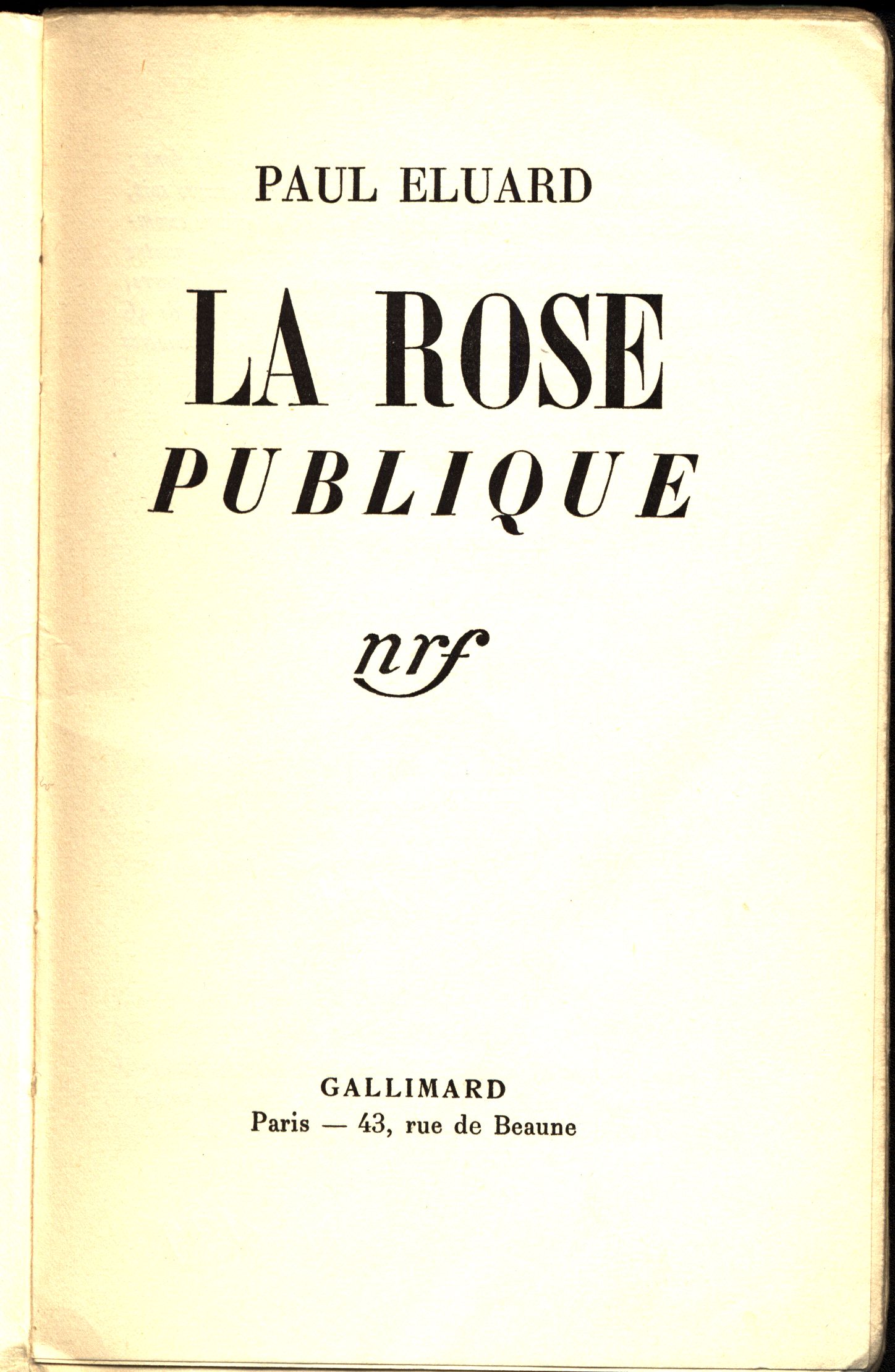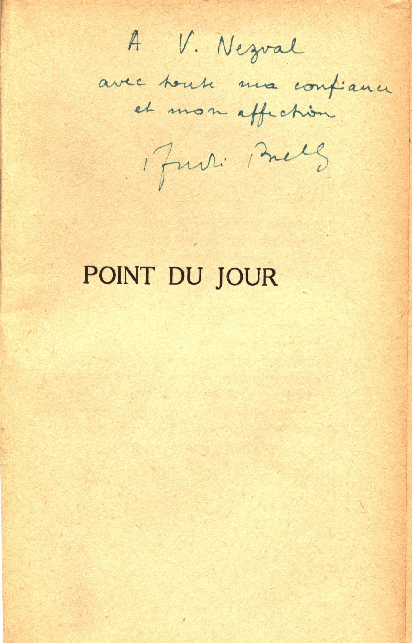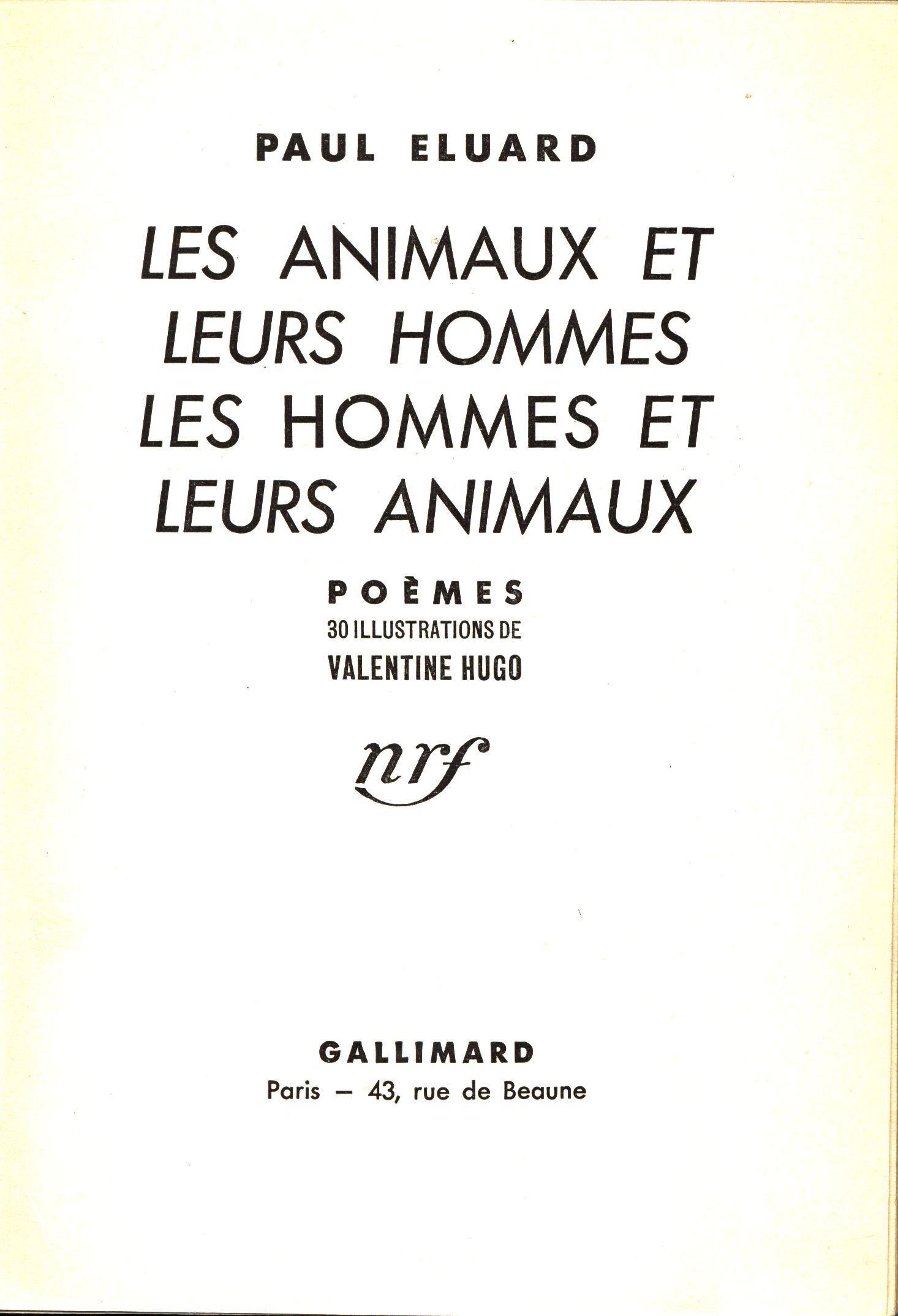 Názvové údaje Point du jour / André Breton Osobní jméno Breton, André, 1896-1966 (Autor) Další autoři Gallimard (firma) (Nakladatel, vydavatel) Výrobce Paris : Gallimard, 1934 Rozsah 251 stran ; 19 cm Klíčová slova francouzská literatura * francouzská próza * surrealismus * stol. 20., léta 30.-40. Počet ex. 1, z toho volných 1 Druh dok. monografie Signatura Nezval 0039 Názvové údaje L'Existence / essais par Albert Camus, Benjamin Fondane, M. de Gandillac, Étienne Gilson, J. Grenier, Louis Lavelle, René le Senne, Brice Parain, A. de Waelhens Osobní jméno Camus, Albert, 1913-1960 (Autor) Další autoři Fondane, Benjamin, 1898-1944 (Autor) Gandillac, Maurice de, 1906-2006 (Autor) Gilson, Étienne, 1884-1978 (Autor) Grenier, Jean, 1898-1971 (Autor) (Autor úvodu atd.) Lavelle, Louis, 1883-1951 (Autor) Le Senne, René, 1882-1954 (Autor) Parain, Brice, 1897-1971 (Autor) De Waelhens, Alphonse, 1911-1981 (Autor) Korp. Gallimard (firma) (Nakladatel, vydavatel) Nakladatel Paris : Gallimard, 1945 Výrobce Dijon : L'imprimerie Darantiere Rozsah 185 stran ; 22,5 cm Klíčová slova filozofie * metafyzika * francouzsky psaná literatura * francouzští filozofové * francouzští spisovatelé * stol. 19.-20. * filozofické eseje Počet ex. 1, z toho volných 1 Druh dok. monografie Signatura Patočka 0148 Názvové údaje Les animaux et leurs hommes les hommes et leurs animaux : poèmes / Paul Eluard ; 30 illustrations de Valentine Hugo Osobní jméno Éluard, Paul, 1895-1952 (Autor) Další autoři Hugo, Valentine, 1887-1968 (Ilustrátor) Korp. Gallimard (firma) (Nakladatel, vydavatel) Nakladatel Paris : Gallimard, [1937] Rozsah 60 nečíslovaných stran : ilustrace ; 18,5 cm Klíčová slova francouzská literatura * francouzská poezie * francouzská přátelství * Eluard P. * surrealismus Počet ex. 1, z toho volných 1 Druh dok. monografie Signatura Nezval 0597 Názvové údaje La rose publique / Paul Eluard Osobní jméno Éluard, Paul, 1895-1952 (Autor) Další autoři Gallimard (firma) (Nakladatel, vydavatel) Nakladatel Paris : Gallimard, 1934 Výrobce Dijon : L´imprimerie Darantiere Rozsah 86 stran ; 19 cm Klíčová slova francouzská literatura * francouzská poezie * francouzská přátelství * surrealismus * stol. 20., léta 30.-40. Počet ex. 1, z toho volných 1 Druh dok. monografie Signatura Nezval 0171 Názvové údaje Kant et le problème du temps / Jacques Havet Osobní jméno Havet, Jacques, 1919-2002 (Autor) Další autoři Patočka, Jan, 1907-1977 (Dedikant) Korp. Gallimard (firma) (Nakladatel, vydavatel) Nakladatel [Paris] : Gallimard, ©1946 Rozsah 230 stran ; 19 cm Osobní hesla Kant, Immanuel, 1724-1804 - německý filozof a vědec Klíčová slova čas * filozofické pojetí * německá filozofie * stol. 18.-19. * metafyzika * teorie poznání * estetika * studie Počet ex. 1, z toho volných 1 Druh dok. monografie Signatura Patočka 0051 Názvové údaje 1939-1945 : poemes / Jules Supervielle Osobní jméno Supervielle, Jules, 1884-1960 (Autor) Další autoři Gallimard (firma) (Nakladatel, vydavatel) F. Paillart (tiskárna, Abbeville, Francie) (Tiskař) Nakladatel Paris : Gallimard, 1945 Výrobce Abbeville : F. Paillart Rozsah 166 stran ; 19 cm Klíčová slova francouzská literatura * francouzská poezie * básníci * poezie * r. 1939-1945 Počet ex. 1, z toho volných 1 Druh dok. monografie Signatura JVladislav 1906 Názvové údaje 1984 / George Orwell ; traduit de l'anglais par Amélie Audiberti Osobní jméno Orwell, George, 1903-1950 (Autor) Další autoři Audiberti, Amélie (Překladatel) Mercier, Philippe (Ilustrátor) Korp. Gallimard (firma) (Nakladatel, vydavatel) Bussière (firma) (Tiskař) Nakladatel Paris : Gallimard, [1984] Výrobce Saint-Amand : Imprimerie Bussière Copyright ©1950 Rozsah 438 stran ; 18 cm Klíčová slova utopie * utopický román * světová literatura Počet ex. 1, z toho volných 1 Druh dok. monografie Signatura JVladislav 1325 Názvové údaje L'affaire Calas et autres affaires / Voltaire ; édition présentée, établie et annotée par Jacques Van den Heuvel Osobní jméno Voltaire, 1694-1778 (Autor) Další autoři van den Heuvel, Jacques, 1921-2000 (Editor) (Autor úvodu atd.) Korp. Gallimard (firma) (Nakladatel, vydavatel) Bussière (firma) (Tiskař) Nakladatel [Paris] : Gallimard, 1982 Výrobce Saint-Amand : Imprimerie Bussière Rozsah 407 stran ; 18 cm Klíčová slova francouzská literatura * francouzská próza * romantismus * literární romantismus Počet ex. 1, z toho volných 1 Druh dok. monografie Signatura JVladislav 2032 Názvové údaje L'Affaire Galilée / présentée par Émile Namer ; maquette et mise en couleurs Françoise Borin Osobní jméno Namer, Émile, 1899-1979 (Autor) Další autoři Borin, Françoise (Knižní grafik) Korp. Gallimard (firma) (Nakladatel, vydavatel) Firmin-Didot (firma) (Tiskař) Nakladatel [Paris] : Éditions Gallimard, 1975 Výrobce Mesnil-sur-l'Estrée : Firmin-Didot S. A. Rozsah 265 stran, 16 nečíslovaných listů obrazové přílohy : černobílé fotografie, faksimile ; 18 cm Osobní hesla Galilei, Galileo, 1564-1642 - italský fyzik, matematik a astronom Klíčová slova věda * vědci * vesmír * myšlení * rekonstrukce * populárně naučná literatura Počet ex. 1, z toho volných 1 Druh dok. monografie Signatura JVladislav 1750 Názvové údaje Acheminement vers la parole / Martin Heidegger ; traduit de l'allemand par Jean Beaufret, Wolfgang Brokmeier et François Fédier Osobní jméno Heidegger, Martin, 1889-1976 (Autor) Další autoři Beaufret, Jean, 1907-1982 (Překladatel) Brokmeier, Wolfgang (Překladatel) Fédier, François, 1935-2021 (Překladatel) Korp. Gallimard (firma) (Nakladatel, vydavatel) Firmin-Didot (firma) (Tiskař) Nakladatel Paris : Gallimard, 1976 Výrobce Mesnil : Firmin-Didot S. A. Rozsah 260 stran ; 23 cm Klíčová slova německá literatura * překlady do francouzštiny * filozofie * filologie * řeč * jazyk Počet ex