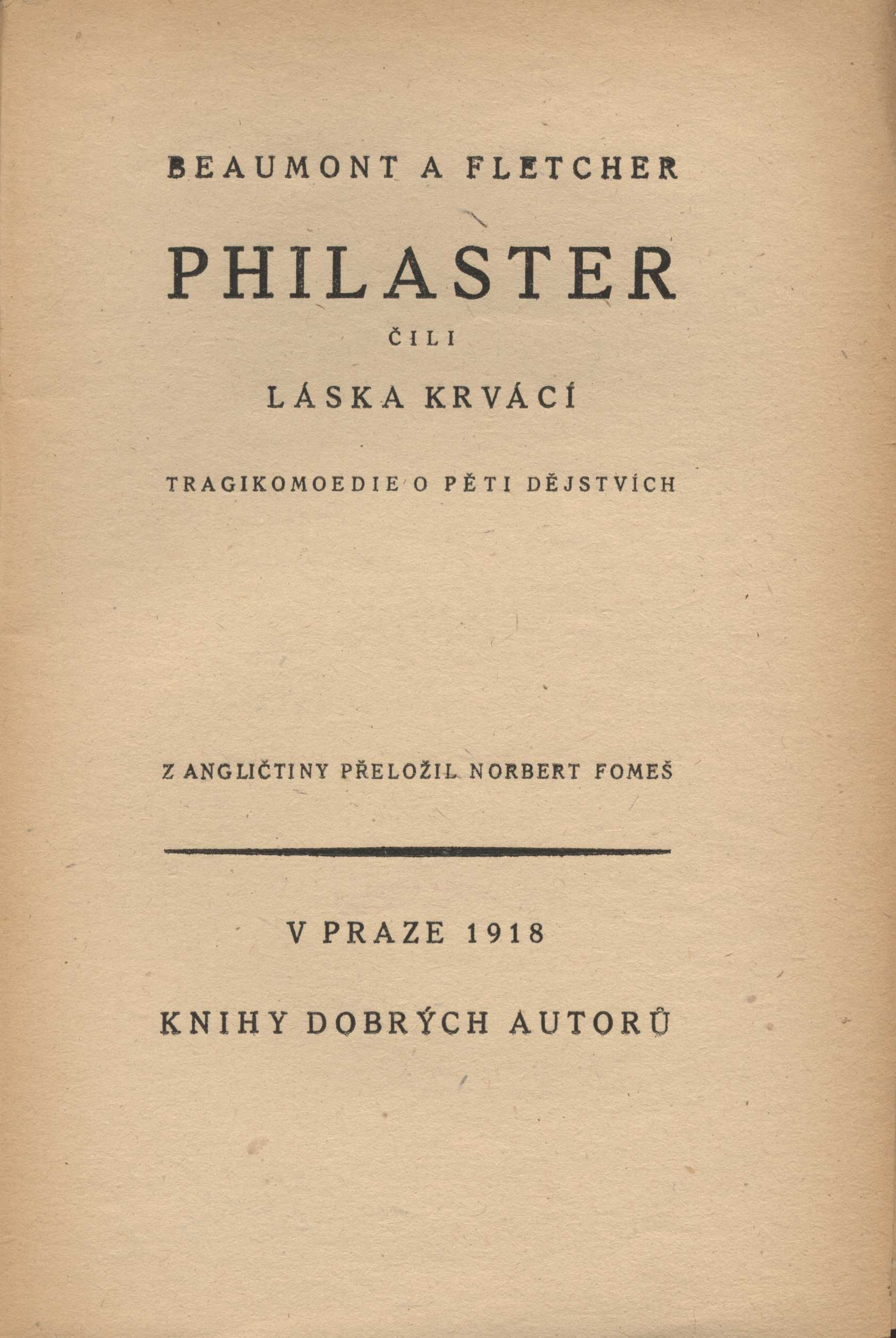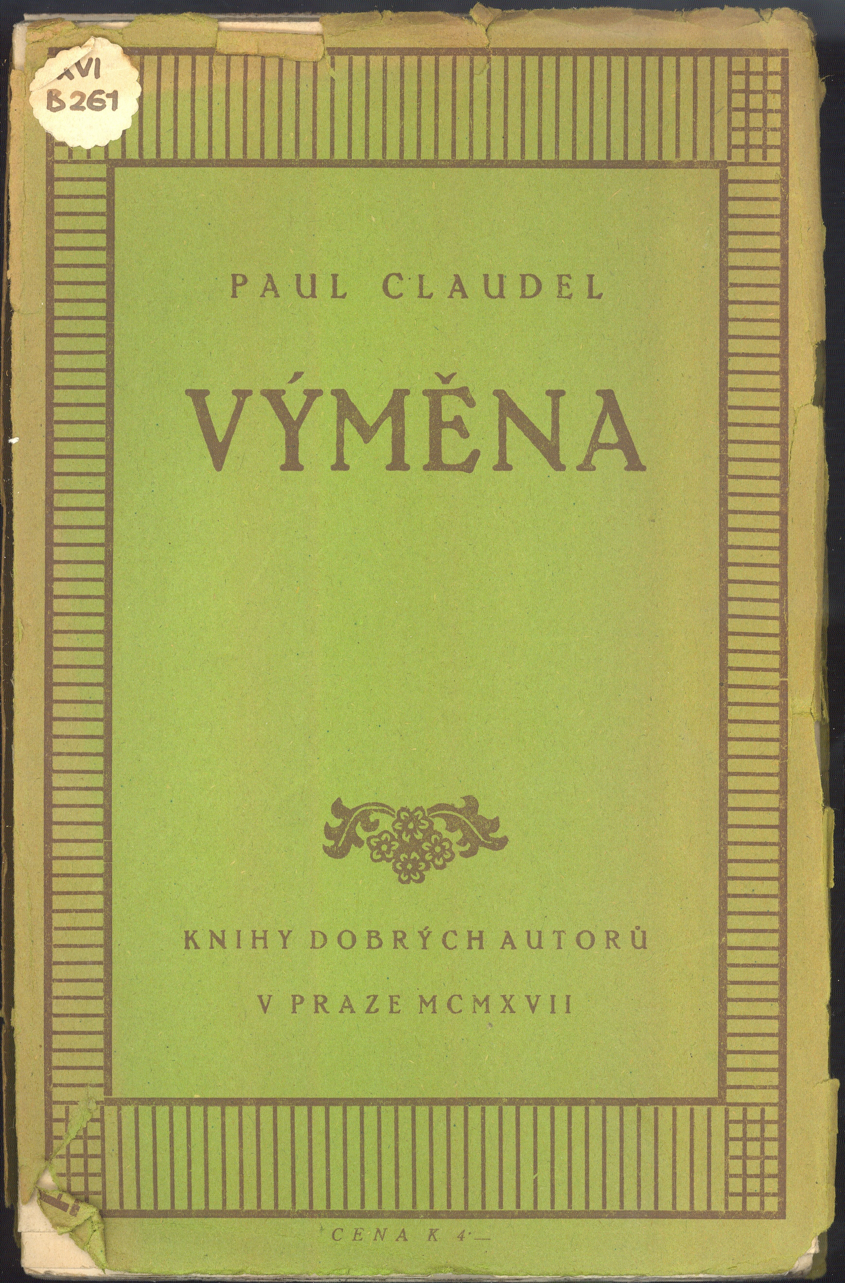 Názvové údaje Philaster, čili, Láska krvácí : tragikomedie o pěti dějstvích / Beaumont a Fletcher ; z angličtiny přeložil Norbert Fomeš Osobní jméno Beaumont, Francis, asi 1584-1616 (Autor) Další autoři Fletcher, John, 1579-1625 (Autor) Fomeš, Norbert, 1869-1925 (Překladatel) Korp. Nakladatelství Kamilla Neumannová (Nakladatel, vydavatel) J. Skalák a spol. (Praha) (Tiskař) Nakladatel Praha : Kamila Neumannová, 1918 Výrobce (V knihtiskárně J. Skaláka) Rozsah 143 s. ; 22 cm Klíčová slova anglická literatura * dramata * tragikomedie Počet ex. 2, z toho volných 2 Druh dok. monografie Signatura Holan 1370, Hoffmeister 0219 Názvové údaje Práchnivina : román / Waclaw Berent ; [tuto knihu přeložil Jaroslav Rypáček ; titulní list a obálku vyzdobil Miroslav Kett] Osobní jméno Berent, Waclaw, 1873-1940 (Autor) Další autoři Radimský, Jaroslav, 1889-1946 (Překladatel) Kett, Miroslav (Grafický technik) Korp. Nakladatelství Kamilla Neumannová (Nakladatel, vydavatel) J. Skalák a spol. (Praha) (Tiskař) Nakladatel V Praze : Vydala ... Kamilla Neumannová, 1920 Výrobce Tiskem J. Skaláka a spol.) Rozsah 314 s. : il. Klíčová slova polská literatura * prózy * romány Počet ex. 1, z toho volných 1 Druh dok. monografie Signatura Hoffmeister 0379 Názvové údaje Muka a jiné povídky / Luigi Capuana ; přeložil A. Muťovský ; [vyzdobil původními dřevoryty a vypravil Pravoslav Kotík] Osobní jméno Capuana, Luigi, 1839-1915 (Autor) Další autoři Muťovský, Adolf, 1864-1944 (Překladatel) Kotík, Pravoslav, 1889-1970 (Grafický technik) Hamerník, J. (Dřívější majitel) (Autor podpisu) Šindlerová, Anna (Dřívější majitel) (Autor podpisu) Korp. Nakladatelství Kamilla Neumannová (Nakladatel, vydavatel) J. Skalák a spol. (Praha) (Tiskař) Nakladatel Praha : Nákladem Kamilly Neumannové, 1918 Výrobce (V knihtiskárně J. Skaláka a spol.) Rozsah 80 s. Klíčová slova italská literatura * prózy * povídky Počet ex. 4, z toho volných 4 Druh dok. monografie Signatura Hoffmeister 0325, KaG XVI B2 281, KaG XLI B 28, VMartínek 0750 Názvové údaje Proteus : satyrské drama o dvou dějstvích / Paul Claudel ; přeložil A. P. Osobní jméno Claudel, Paul, 1868-1955 (Autor) Další autoři Procházka, Arnošt, 1869-1925 (Překladatel) (Dedikátor) Karásek ze Lvovic, Jiří, 1871-1951 (Dedikant) Korp. Nakladatelství Kamilla Neumannová (Nakladatel, vydavatel) J. Skalák a spol. (Praha) (Tiskař) Nakladatel Praha : Kamilla Neumannová, 1920 Výrobce V Praze : V Tiskárně Josefa Skaláka a spol., 1920 Rozsah 59 stran ; 22 cm Klíčová slova francouzská literatura * francouzské divadlo * divadelní hra * symbolismus * stol. 20., léta 20. Počet ex. 5, z toho volných 5 Druh dok. monografie Signatura Holan 1850, KaG XVI B 260, Hoffmeister 0218, VMartínek 0745, VHB 4558 Názvové údaje Výměna : drama o třech dějstvích / Paul Claudel ; přeložil A. P. Osobní jméno Claudel, Paul, 1868-1955 (Autor) Další autoři Procházka, Arnošt, 1869-1925 (Překladatel) (Dedikátor) Neumannová, Kamila, 1874-1956 (Nakladatel, vydavatel) Karásek ze Lvovic, Jiří, 1871-1951 (Dedikant) Korp. J. Skalák a spol. (Praha) (Tiskař) Nakladatel V Praze : Nákladem Kamilly Neumannové, 1917 Výrobce (V Knihtiskárně J. Skaláka a spol.) Rozsah 80 s. Klíčová slova francouzská literatura * francouzské divadlo * divadelní hra * stol. 20., léta 10. Počet ex. 1, z toho volných 1 Druh dok. monografie Signatura KaG XVI B 261 Názvové údaje Lelio / Josef Čapek Osobní jméno Čapek, Josef, 1887-1945 (Autor) Další autoři Neumannová, Kamila, 1874-1956 (Nakladatel, vydavatel) Korp. J. Skalák a spol. (Praha) (Tiskař) Nakladatel V Praze : Nákladem Kamilly Neumanové, 1917 Výrobce (Tiskárna J. Skaláka a spol.) Rozsah 74 s. Klíčová slova česká literatura * česká próza * drobná próza * expresionismus * moderní próza Počet ex. 1, z toho volných 1 Druh dok. monografie Signatura KaG XVI B 258 Názvové údaje Animal triste / Gabriele D'Annunzio Osobní jméno D'Annunzio, Gabriele, 1863-1938 (Autor) Další autoři Procházka, Arnošt, 1869-1925 (Překladatel) Dyk, Viktor, 1877-1931 (Překladatel) Korp. J. Skalák a spol. (Praha) (Tiskař) Moderní revue (nakladatelství) (Nakladatel, vydavatel) Nakladatel V Praze : Moderní revue, 1912 Výrobce Tiskem J. Skaláka a spol. Rozsah 18 nečíslovaných stran ; 25 cm Klíčová slova italská literatura * poezie * lyrika * dekadence Počet ex. 5, z toho volných 5 Druh dok. monografie Signatura KaG XVI C 215, Sáňka 3829, P 86 a 31, Knytl 1490, Sáňka 1566 Názvové údaje Miriam : kniha lyriky / Jakub Deml ; [František Bílek vytvořil dřevoryty ; František Kobliha upravil stránku titulní a navrhl vazbu] Osobní jméno Deml, Jakub, 1878-1961 (Autor) (Nakladatel, vydavatel) Další autoři Bílek, František, 1872-1941 (Ilustrátor) Kobliha, František, 1877-1962 (Knižní grafik) Korp. J. Skalák a spol. (Praha) (Tiskař) Nakladatel V Jinošově na Moravě : J. Deml, 1916 Výrobce J. Skalák a spol) Rozsah 211 s. : il. ; 8° Klíčová slova česká próza * lyrická próza * básnická próza Počet ex. 1, z toho volných 1 Druh dok. monografie Signatura VMartínek 1216 Názvové údaje Šlépěje. [Třetí svazek] / Jakub Deml Osobní jméno Deml, Jakub, 1878-1961 (Autor) (Nakladatel, vydavatel) Další autoři J. Skalák a spol. (Praha) (Tiskař) Nakladatel V Tasově na Moravě : [J. Deml], 1919 Výrobce J. Skalák a spol.) Rozsah 107 s., [7] obr. příl. : il. Klíčová slova česká literatura * křesťanská literatura * prózy * úvahy * dopisy * r. 1919 Počet ex. 2, z toho volných 2 Druh dok. monografie Signatura VMartínek 1215, P 49 G 136 Názvové údaje Karlštejn : libretto o třech dějstvích : podle Jaroslava Vrchlického Noci na Karlštejně / Otokar Fischer ; [úprava a kresby V. H. Brunnera] Osobní jméno Fischer, Otokar, 1883-1938 (Autor) Dalš