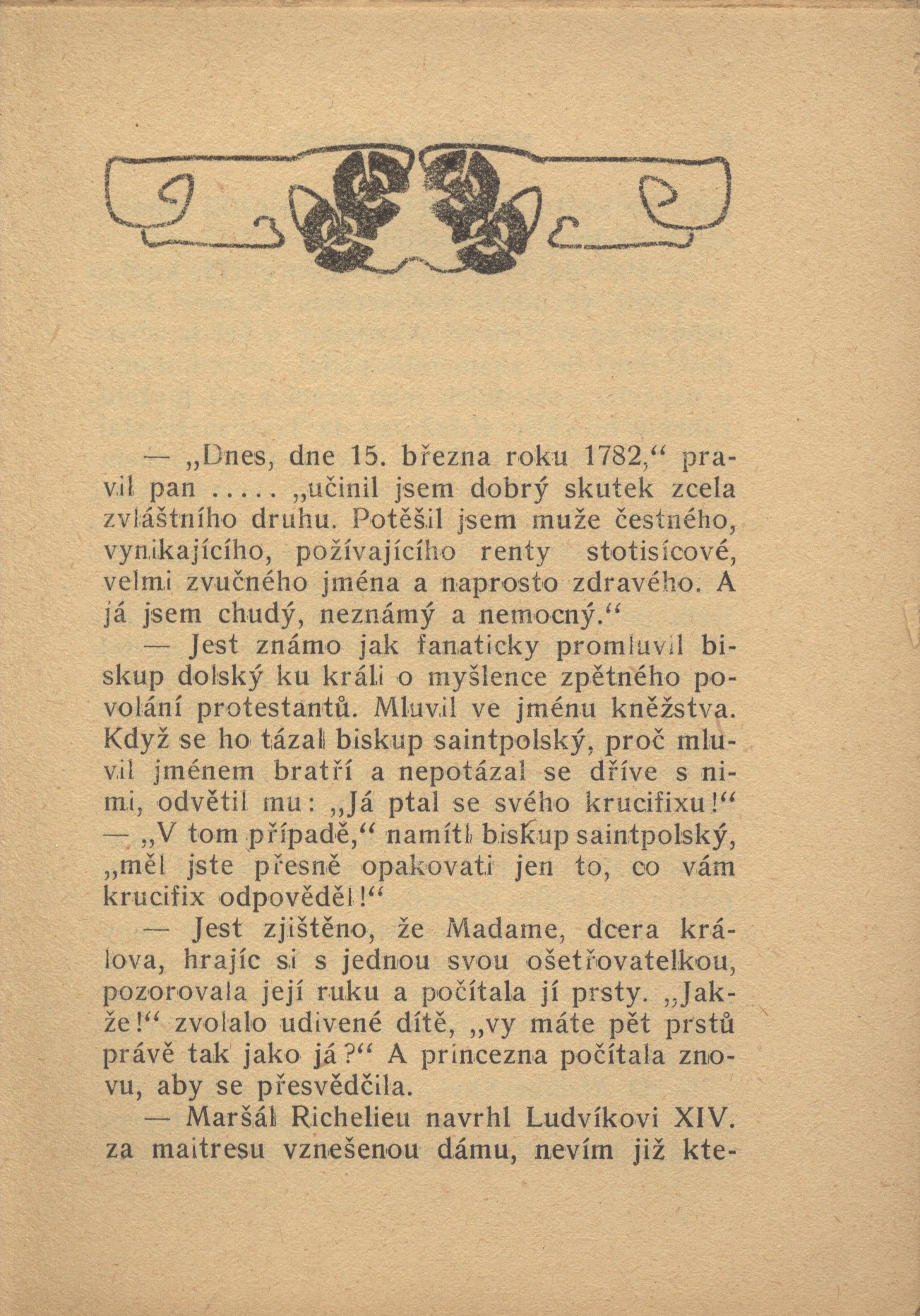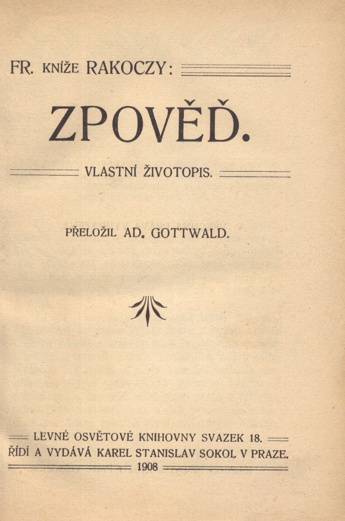 Názvové údaje Hrdinové a ctění hrdin v dějinách / Thomas Carlyle ; z angličtiny dle 18. vydání přeložil František Vahalík Osobní jméno Carlyle, Thomas, 1795-1881 (Autor) Další autoři Vahalík, František, 1866-1901 (Překladatel) Korp. Karel Stan. Sokol (nakladatelství a vydavatelství) (Nakladatel, vydavatel) Josef Nohavec (Terezín, Česko) (Tiskař) Tělocvičná jednota Sokol Královské Vinohrady (Dřívější majitel) Nakladatel V Praze : Nákladem vydavatelstva Vzdělávací bibliotéky, [189-] Výrobce Tiskem Josefa Nohavce) Rozsah 377 s. ; 15 cm Klíčová slova britská literatura * studie * úvahy * společnost Počet ex. 2, z toho volných 2 Druh dok. monografie Signatura Holan 394, KaG XXVIII B 10 Názvové údaje Vlastní životopis Benvenuta Celliniho florentského zlatníka a sochaře. díl 1 / Benvenuto Cellini ; podle rukopisného vydání Tassim z italštiny přeložil Adolf Gottwald Osobní jméno Cellini, Benvenuto, 1500-1571 (Autor) Další autoři Gottwald, Adolf, 1878-1920 (Překladatel) Korp. Dyk a Ryba (Praha) (Tiskař) Karel Stan. Sokol (nakladatelství a vydavatelství) (Nakladatel, vydavatel) Tělocvičná jednota Sokol Královské Vinohrady (Dřívější majitel) Nakladatel V Praze : Karel Stan. Sokol, 1909 Výrobce (Knihtiskárna Dyk a Ryba) Rozsah 305 s., [5] l. obr. příl. : il. Osobní hesla Cellini, Benvenuto, 1500-1571 - italský sochař, klenotník a spisovatel Klíčová slova italská literatura * překlad * životopis * italští umělci * paměti * autobiografické paměti * vzpomínky * autobiografie * dějiny umění * italští spisovatelé * stol. 16. Počet ex. 3, z toho volných 3 Druh dok. monografie Signatura Holan 2058, AVrbova 375, KaG XXVIII D 20 Názvové údaje Vlastní životopis Benvenuta Celliniho florentského zlatníka a sochaře / Benvenuto Cellini ; podle rukopisu vydaného Tassim z italštiny přeložil Adolf Gottwald. díl 2 Osobní jméno Cellini, Benvenuto, 1500-1571 (Autor) Další autoři Gottwald, Adolf, 1878-1920 (Překladatel) Korp. Karel Stan. Sokol (nakladatelství a vydavatelství) (Nakladatel, vydavatel) Dyk a Ryba (Praha) (Tiskař) Tělocvičná jednota Sokol Královské Vinohrady (Dřívější majitel) Nakladatel V Praze : Karel Stan. Sokol, 1909 Výrobce (Knihtiskárna Dyk a Ryba) Rozsah s. 313-476, [2] l. obr. příl. : il. Osobní hesla Cellini, Benvenuto, 1500-1571 - italský sochař, klenotník a spisovatel Klíčová slova italská literatura * překlad * životopis * italští umělci * paměti * dějiny umění * vzpomínky * autobiografie * autobiografické paměti * italští spisovatelé * stol. 16. Počet ex. 2, z toho volných 2 Druh dok. monografie Signatura Holan 915, AVrbova 376 Názvové údaje Román učitele / Edmondo De Amicis ; autorisovaný překlad z 29. vydání Elišky Řehákové. První díl, Trampoty a milování Osobní jméno De Amicis, Edmondo, 1846-1908 (Autor) Další autoři Řeháková, Eliška, 1846-1916 (Překladatel) Korp. Karel Stan. Sokol (nakladatelství a vydavatelství) (Nakladatel, vydavatel) Dyk a Ryba (Praha) (Tiskař) Nakladatel [Praha] : Vydává Karel Stan. Sokol Výrobce Knihtiskárna Dyk a Ryba) Rozsah 388 s. Klíčová slova italská literatura * překlad * próza * beletrie * realistický román * r. 1910 Počet ex. 1, z toho volných 1 Druh dok. monografie Signatura AVrbova 453 Názvové údaje Malé romány a povídky : výběr / Denis Diderot ; přeložil Adolf Gottwald Osobní jméno Diderot, Denis, 1713-1784 (Autor) Další autoři Gottwald, Adolf, 1878-1920 (Překladatel) Korp. Karel Stan. Sokol (nakladatelství a vydavatelství) (Nakladatel, vydavatel) Nakladatel Praha : K.S. Sokol, 1911 Rozsah 420 s. ; 8° Klíčová slova francouzská literatura * francouzská próza Počet ex. 1, z toho volných 1 Druh dok. monografie Signatura K O VI 17 Názvové údaje Malé romány a povídky : výběr / Denis Diderot ; přeložil Adolf Gottwald Osobní jméno Diderot, Denis, 1713-1784 (Autor) Další autoři Gottwald, Adolf, 1878-1920 (Překladatel) Korp. Karel Stan. Sokol (nakladatelství a vydavatelství) (Nakladatel, vydavatel) Nakladatel Praha : K. S. Sokol, 1911 Rozsah 420 s. ; 8° Klíčová slova francouzská literatura * francouzská próza Počet ex. 1, z toho volných 1 Druh dok. monografie Signatura P 140 f 11 Názvové údaje Dějiny konfliktů mezi náboženstvím a vědou / John William Draper ; z angličtiny přeložil dle XXI. vydání S. Mokrý Osobní jméno Draper, John William, 1811-1882 (Autor) Další autoři Mokrý, S., 1869-1927 (Překladatel) Korp. Karel Stan. Sokol (nakladatelství a vydavatelství) (Nakladatel, vydavatel) Nakladatel V Praze : K. Stan. Sokol, [1892] Výrobce (Ed. Beaufort) Rozsah 446-[XIII] s. ; 8° Klíčová slova teologie * náboženství * dějiny náboženství * víra * věda * vědecké poznatky Počet ex. 2, z toho volných 2 Druh dok. monografie Signatura Kratochvíl 296, M 11 g 39 Názvové údaje Vypravování o dobrodružstvích Josefa Andrewse a jeho přítele pana Abrahama Adamse. Díl I. / H. Fielding ; přeložil V. Čeněk Osobní jméno Fielding, Henry, 1707-1754 (Autor) Další autoři Šuranová, Klementa, 1866-1929 (Překladatel) Korp. Karel Stan. Sokol (nakladatelství a vydavatelství) (Nakladatel, vydavatel) Dyk a Ryba (Praha) (Tiskař) Nakladatel V Praze : Vydává Karel Stan. Sokol, 1910 Výrobce Knihtiskárna Dyk a Ryba) Rozsah 535 s., 8 l. obr. příl. : il. Klíčová slova anglická literatura * překlad * anglická próza * anglický román * r. 1910 Počet ex. 1, z toho volných 1 Druh dok. monografie Signatura AVrbova 439 Názvové údaje Zpověď : vlastní životopis / Fr. kníže Rakoczy ; přeložil Ad. Gottwald Autor František II., Rákóczi, sedmihradský kníže, 1676-1735 (Autor) Další autoři Gottwald, Adolf, 1878-1920 (Překladatel) Korp. Karel Stan. Sokol (nakladatelství a vydavatelství) (Nakladatel, vydavatel) Dyk a Ryba (Praha) (Tiskař) Nakladate