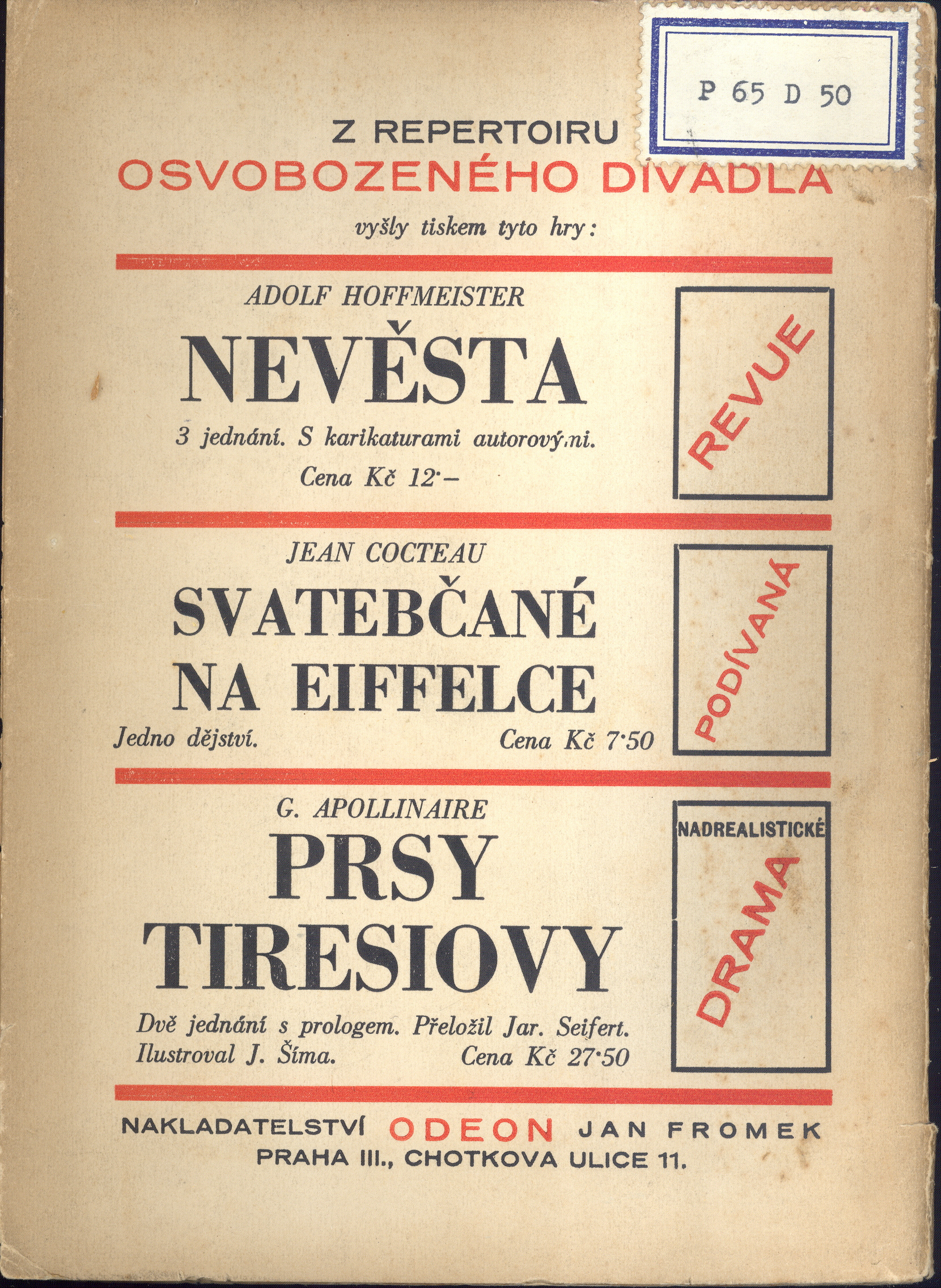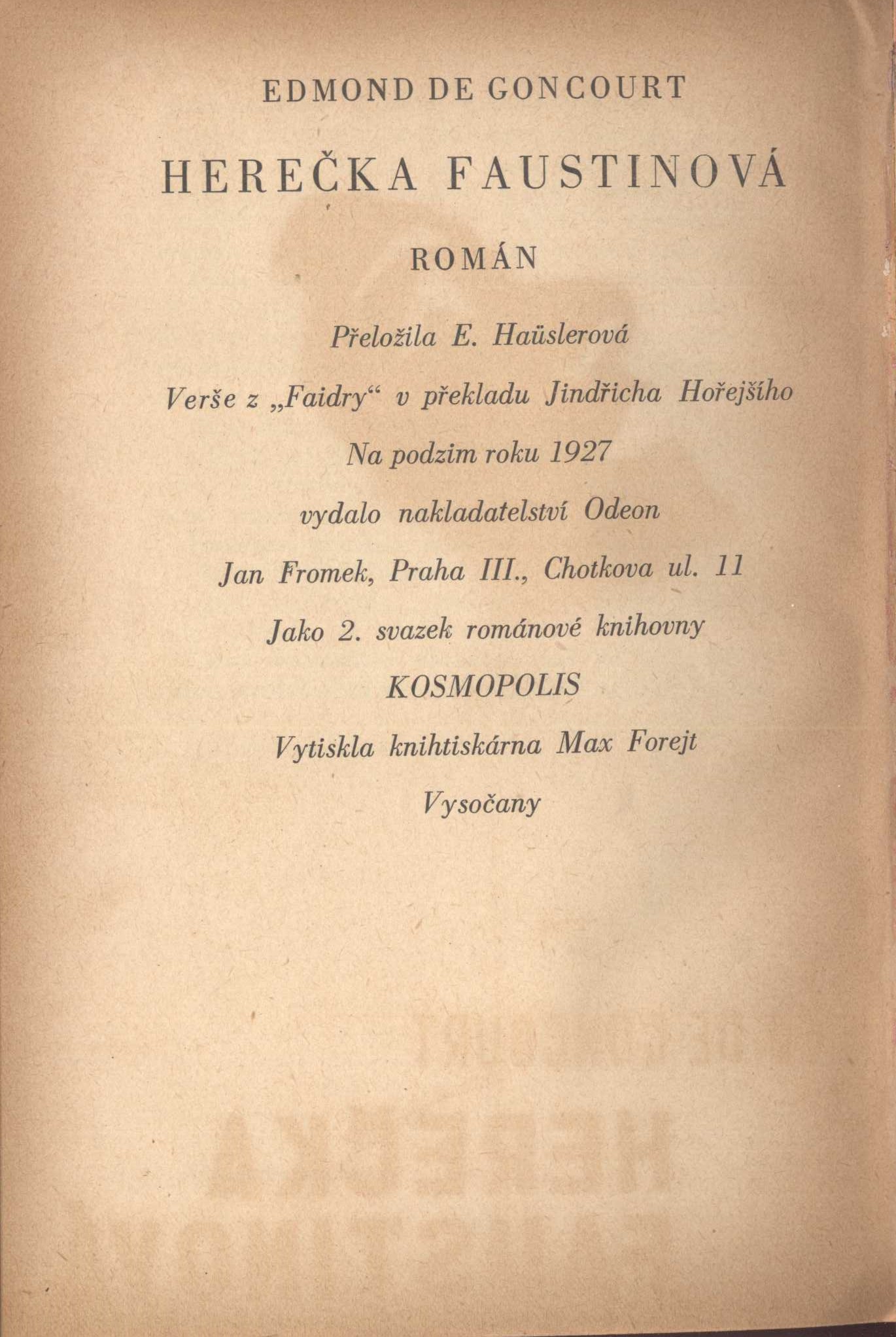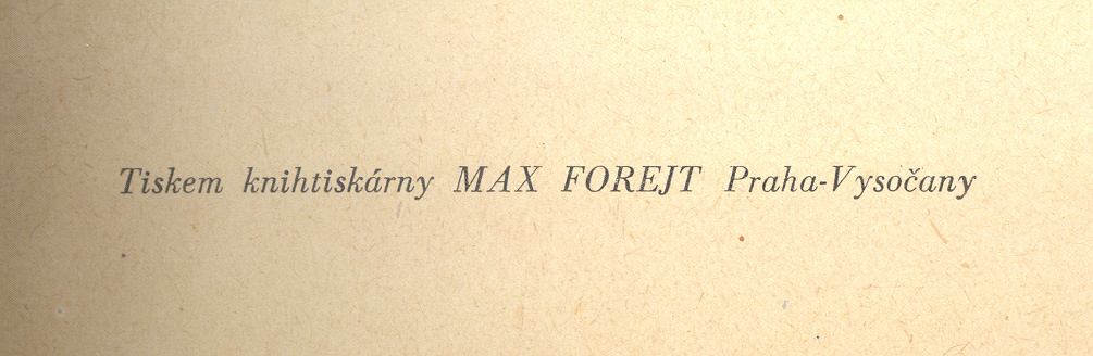 Názvové údaje Herečka Faustinová : román / Edmond de Goncourt ; přeložila E. Haüslerová Osobní jméno Goncourt, Edmond de, 1822-1896 (Autor) Další autoři Haüslerová, E. (Překladatel) Hořejší, Jindřich, 1886-1941 (Překladatel) Korp. Odeon, Jan Fromek (Praha) (Nakladatel, vydavatel) Knihtiskárna Max Forejt (Praha-Vysočany) (Tiskař) Nakladatel Praha : knihovna Kosmopolis, Odeon Jan Fromek, 1927 Výrobce Vysočany : knihtiskárna Max Forejt Rozsah 198 stran, 1 nečíslovaný list obrazové přílohy : 1 ilustrace ; 19 cm Klíčová slova francouzská literatura * próza * Goncourt E. de * román * český překlad * r. 1927 Počet ex. 1, z toho volných 1 Druh dok. monografie Signatura VZinková 0680 Názvové údaje Kudrlinky : kniha českého humoru / Jos. Št. Kubín ; ilustrace a obálka mistra J. Čapka Osobní jméno Kubín, Josef Štefan, 1864-1965 (Autor) Další autoři Čapek, Josef, 1887-1945 (Ilustrátor) Korp. Knihtiskárna Max Forejt (Praha-Vysočany) (Nakladatel, vydavatel) Nakladatelství Max Forejt (Nakladatel, vydavatel) Nakladatel Praha-Vysočany : Nakladatelství Max Forejt, 1928 Výrobce (Knihtiskárna Max Forejt) Rozsah 212 s. : il. Klíčová slova česká próza * humoristická próza * český literární humor * humorné povídky * črty Počet ex. 1, z toho volných 1 Druh dok. monografie Signatura VMartínek 0918 Názvové údaje Generál Gajda před kárným výborem / Frant. Paulus Osobní jméno Paulus, František, 1885-1945 (Autor) Další autoři Knihtiskárna Max Forejt (Praha-Vysočany) (Nakladatel, vydavatel) Nakladatel Praha : Max Forejt, 1928 Rozsah 166 s. : il. Osobní hesla Gajda, Radola, 1892-1948 - generál legií, fašistický politik, politická a memoárová literatura Klíčová slova česká literatura * československé dějiny * osobnosti * memoárová literatura * monografické publikace Počet ex. 1, z toho volných 1 Druh dok. monografie Signatura Teige 081 Názvové údaje Vest pocket revue : tu i cizozemské radovánky o 19 obrazech / Jiří Voskovec & Jan Werich Osobní jméno Voskovec, Jiří, 1905-1981 (Autor) (Autor úvodu atd.) (Autor obálky) Další autoři Werich, Jan, 1905-1980 (Autor) (Autor úvodu atd.) (Autor obálky) Korp. Odeon, Jan Fromek (Praha) (Nakladatel, vydavatel) Knihtiskárna Max Forejt (Praha-Vysočany) (Tiskař) Nakladatel Praha : Jan Fromek, [1927] Výrobce tiskem knihtiskárny Max Forejt) Rozsah 69, [3] s. ; 19,2 cm Klíčová slova česká literatura * drama * divadelní hra * Osvobozené divadlo * r. 1927 Počet ex. 1, z toho volných 1 Druh dok. monografie Signatura P 65 d 50 Názvové údaje Bibliografie E. A. Hrušky Další autoři Hruška, Emmerich Alois, 1895-1957 (Ilustrátor) (Autor podpisu) Krecar z Růžokvětu, Jarmil, 1884-1959 (Autor úvodu atd.) (Autor podpisu) Korp. Knihtiskárna Max Forejt (Praha-Vysočany) (Nakladatel, vydavatel) Nakladatel Praha : Max Forejt, 1930 Rozsah 7 s., [18] s. obr. příl. : il. Osobní hesla Hruška, Emmerich Alois, 1895-1957 - malíř, grafik, básník, dramatik, autor pohádek pro děti a vlastivědných prací o olšanských hřbitovech, kulturní redaktor, novinář, překladatel Klíčová slova česká literatura * bibliografie * české umění * české výtvarné umění * česká grafika * soupis * soupis díla * bibliofilie * bibliofilské tisky * bibliofilský tisk Počet ex. 1, z toho volných 1 Druh dok. monografie Signatura KaG V C 15 Názvové údaje Z tajných archivů : kokoty - vladaři - šlechta Další autoři Světová literatura (nakladatelství) (Nakladatel, vydavatel) Knihtiskárna Max Forejt (Praha-Vysočany) (Tiskař) (Knižní grafik) Nakladatel Praha : Světová literatura, 1930 Výrobce Ve Vysočanech : tisk a úprava knihtiskárny Max Forejt Rozsah 620 stran : ilustrace, fotografie, podobizny ; 17 cm Osobní hesla Habsburkové (rod) Klíčová slova česká literatura * Habsburkové * rod Habsburků * skandály * fotografie * fotografické reprodukce * archivy * tajné archivy * r. 1930 Počet ex. 1, z toho volných 1 Druh dok. monografie Signatura VZinková 0705