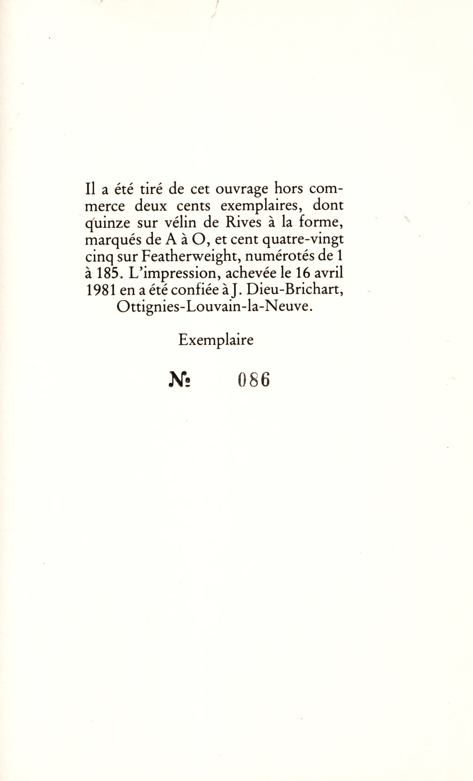 Názvové údaje L'Archée / Fernand Verhesen Osobní jméno Verhesen, Fernand, 1913-2009 (Autor) (Dedikátor) Další autoři Vladislav, Jan, 1923-2009 (Dedikant) Korp. Le Cormier (nakladatelství) (Nakladatel, vydavatel) Nakladatel [místo vydání není známé] : Le Cormier, 1981 Rozsah 43 stran ; 22 cm Klíčová slova poezie * belgická literatura * belgická poezie * stol. 20. Počet ex. 1, z toho volných 1 Druh dok. monografie Signatura JVladislav 2620 Názvové údaje Paroles données / Philippe Jones Osobní jméno Roberts-Jones, Philippe, 1924-2016 (Autor) (Dedikátor) Další autoři Vladislav, Jan, 1923-2009 (Dedikant) Korp. Le Cormier (nakladatelství) (Nakladatel, vydavatel) Nakladatel [místo vydání není známé] : Le Cormier, 1981 Výrobce Imprime en Belgique Rozsah 79 stran ; 23 cm Klíčová slova poezie * belgická literatura * belgická poezie * sbírka básní * stol. 20. Počet ex. 1, z toho volných 1 Druh dok. monografie Signatura JVladislav 2520 Názvové údaje Poèmes / Cesar Vallejo ; Traduction de Fernand Verhesen Osobní jméno Vallejo, César, 1892-1938 (Autor) (Dedikátor) Další autoři Verhesen, Fernand, 1913-2009 (Překladatel) Vladislav, Jan, 1923-2009 (Dedikátor) Korp. Le Cormier (nakladatelství) (Nakladatel, vydavatel) Nakladatel [místo vydání není známé] : Le Cormier, 1981 Rozsah 42 stran ; 22 cm Klíčová slova poezie * Peru * peruánská literatura * překlady do francouzštiny Počet ex. 1, z toho volných 1 Druh dok. monografie Signatura JVladislav 2655 Názvové údaje Suites / Pierre-Yves Soucy Osobní jméno Soucy, Pierre-Yves, (Autor) 1948- Další autoři Le Cormier (nakladatelství) (Nakladatel, vydavatel) Nakladatel Bruxelles : Le Cormier, 1998 Rozsah 70 stran ; 21 cm Klíčová slova francouzská poezie * belgická literatura * belgická poezie Počet ex. 1, z toho volných 1 Druh dok. monografie Signatura JVladislav 1973 Názvové údaje Trente fragments / Pierre-Yves Soucy Osobní jméno Soucy, Pierre-Yves, (Autor) 1948- Další autoři Vladislav, Jan, 1923-2009 (Dedikant) Korp. Le Cormier (nakladatelství) (Nakladatel, vydavatel) Nakladatel [Bruxelles] : Cormier, [1994] Výrobce Courtrai : Groeninghe Rozsah 67 stran ; 22 cm Klíčová slova poezie * sbírka básní * francouzsky psaná literatura * belgická poezie * stol. 20., 2. pol. Počet ex. 1, z toho volných 1 Druh dok. monografie Signatura JVladislav 2193