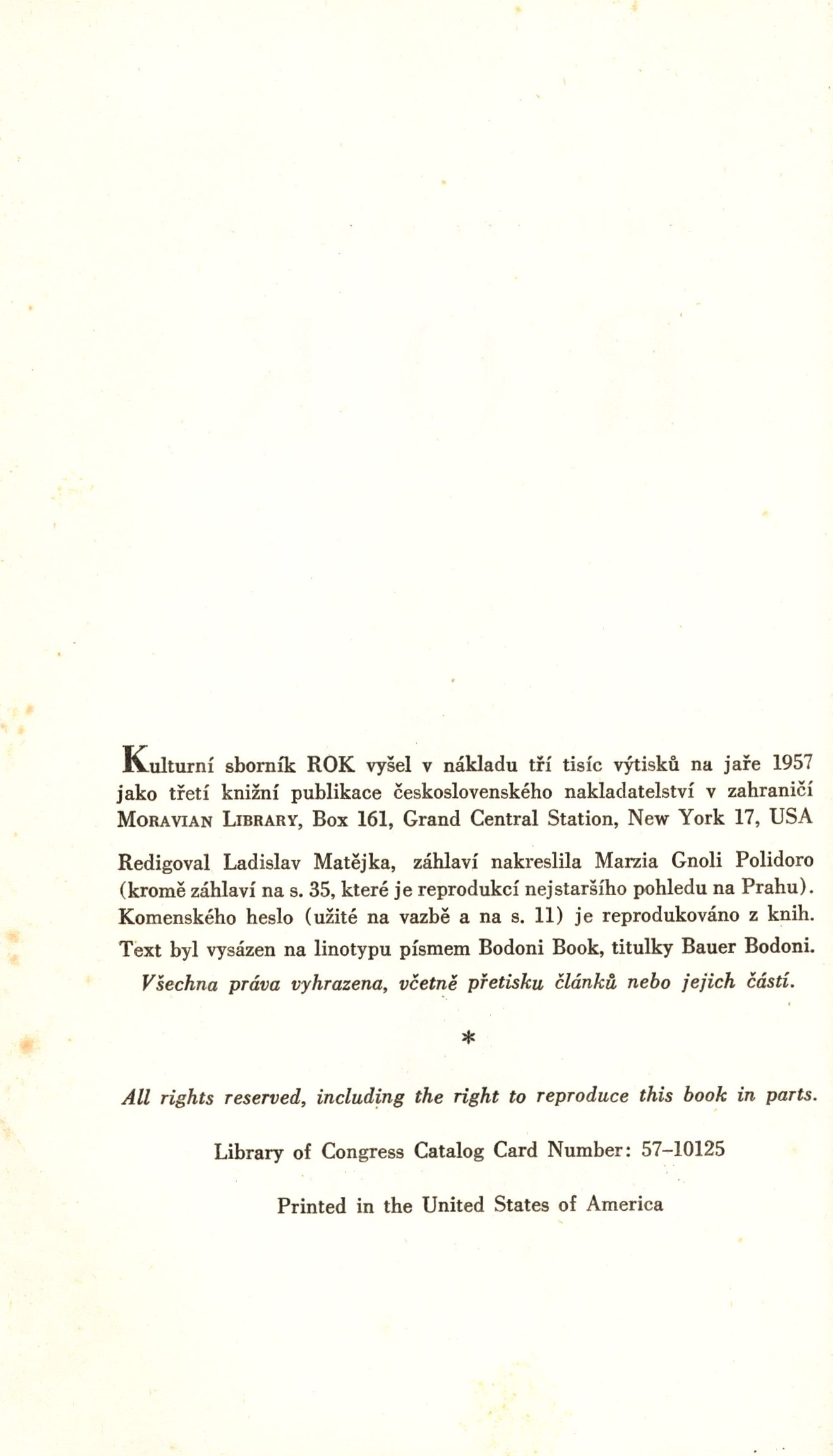 Názvové údaje Rok : kulturní sborník / Redigoval Ladislav Matějka ; záhlaví nakreslila Marzia Gnoli Polidoro (kromě záhlaví na s. 35, které je reprodukcí nejstaršího pohledu na Prahu) Osobní jméno Matějka, Ladislav, 1919-2012 (Editor) Další autoři Gnoli Polidoro, Marzia, činná ve 20. století (Ilustrátor) Korp. Moravian Library (New York, New York) (Nakladatel, vydavatel) Nakladatel New York : Moravian Library, 1957 Rozsah 159 stran : čb. ilustrace a reprodukce ; 21 cm Klíčová slova česká literatura * exilová literatura * sborník * příspěvky * kultura Počet ex. 1, z toho volných 1 Druh dok. monografie Signatura Listopad 0453