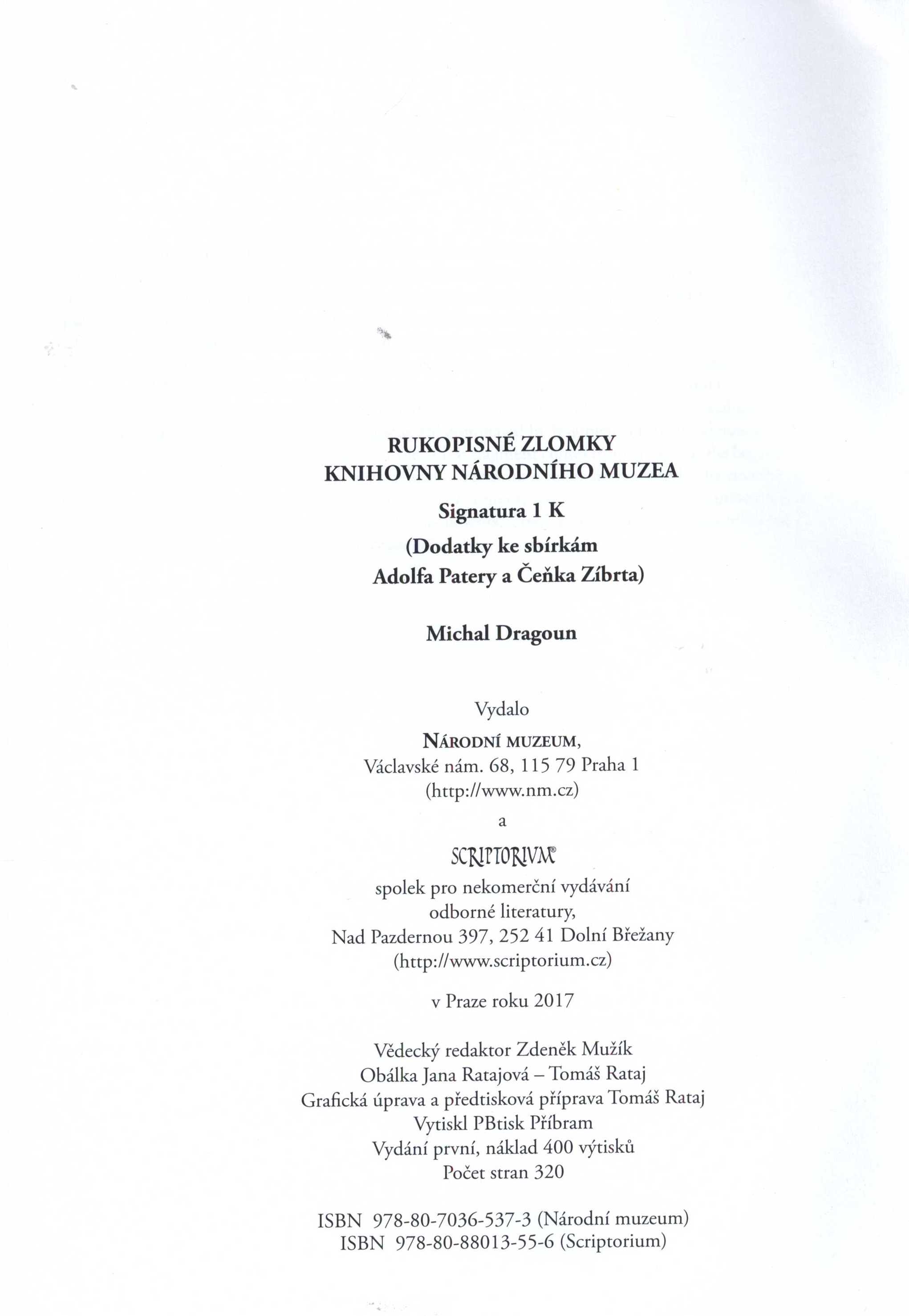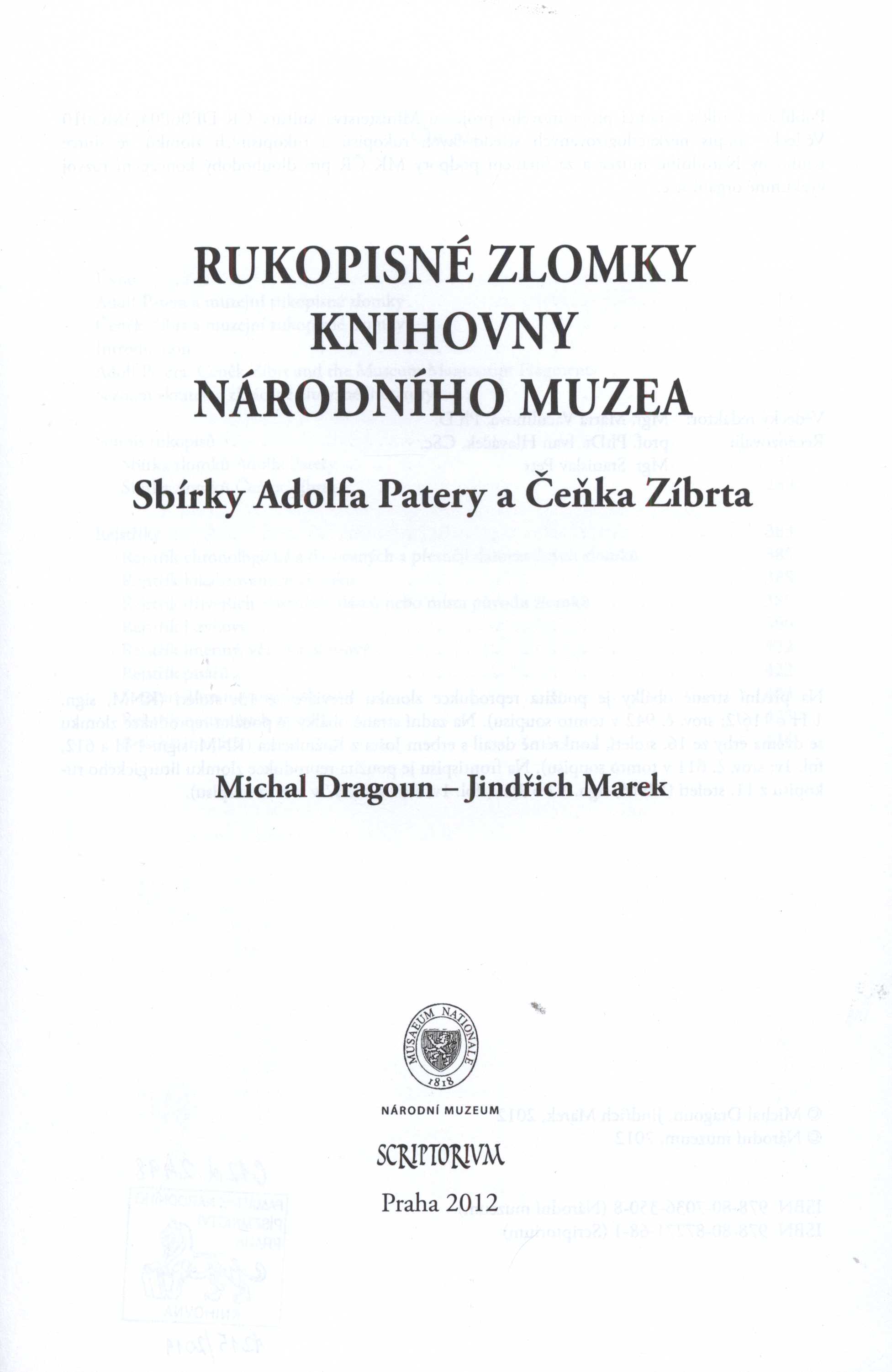 Názvové údaje Dörfl Gustav, 1854-1902 : literární pozůstalost (fragment) č. 110 / zpracoval František Baťha Osobní jméno Baťha, František (Autor) Další autoři Baťha, František, 1909-1985 (Editor) Korp. Památník národního písemnictví. Literární archiv (Nakladatel, vydavatel) Národní muzeum (Praha, Česko). Literární archiv (Nakladatel, vydavatel) Nakladatel Praha : Literární archiv PNP : Literární archiv Národního muzea muzea, 1963 Rozsah 7 s. Osobní hesla Dörfl, Gustav, 1855-1902 - pedagog, básník, dramatik, redaktor, překladatel Klíčová slova česká literatura * čeští spisovatelé * literární pozůstalost * soupis Počet ex. 1, z toho volných 1 Druh dok. monografie Signatura P S 2 a Názvové údaje Rukopisné zlomky Knihovny Národního muzea : signatura 1 A / Marek Brčák, Dalibor Dobiáš, Michal Dragoun, Martina Jamborová, Matěj Měřička, Kateřina Voleková ; obálka Jana Ratajová, Tomáš Rataj ; grafická úprava a předtisková příprava Tomáš Rataj Osobní jméno Brčák, Marek, 1988- (Autor) Další autoři Dobiáš, Dalibor, 1977- (Autor) Dragoun, Michal, 1974- (Autor) Jamborová, Martina, 1973- (Autor) Měřička, Matěj (Autor) Voleková, Kateřina, 1983- (Autor) Ratajová, Jana, 1972- (Autor obálky) Rataj, Tomáš, 1973- (Autor obálky) (Knižní grafik) Korp. Scriptorium, Spolek pro nekomerční vydávání odborné literatury (Nakladatel, vydavatel) Národní muzeum (Praha, Česko) (Nakladatel, vydavatel) PBtisk (tiskárna) (Tiskař) Nakladatel V Praze : Národní muzeum : Scriptorium, 2014 Výrobce Příbram : PBtisk Rozsah 211 stran ; 28 cm Heslo korporace (zkrác. heslo korp.) : Národní muzeum (Praha, Česko). Knihovna Geografické heslo Praha (Česko) Klíčová slova fragmenty rukopisů * Česko * stol. 9.-20. * historické knihovní fondy * katalogy * kolektivní monografie Počet ex. 1, z toho volných 1 Druh dok. monografie Signatura C12d 2496 Názvové údaje Rukopisné zlomky Knihovny Národního muzea : signatury 1 D, 1 E a 1 G / Vlastimil Brom, Václav Čermák, Michal Dragoun, Adéla Ebersonová, Ota Halama, Jindřich Marek, Olga Sixtová, Kateřina Spurná, Dmitrij Timofejev, Tamás Visi ; obálka Jana Ratajová, Tomáš Rataj ; grafická úprava a předtisková příprava Tomáš Rataj Osobní jméno Brom, Vlastimil, 1977- (Autor) Další autoři Čermák, Václav, 1974- (Autor) Dragoun, Michal, 1974- (Autor) Ebersonová, Adéla, 1987- (Autor) Halama, Ota, 1974- (Autor) Marek, Jindřich, 1978- (Autor) Sixtová, Olga, 1968- (Autor) Spurná, Kateřina, 1985- (Autor) Timofejev, Dmitrij, 1987- (Autor) Visi, Tamás, 1974- (Autor) Ratajová, Jana, 1972- (Autor obálky) Rataj, Tomáš, 1973- (Autor obálky) (Knižní grafik) Korp. Národní muzeum (Praha, Česko) (Nakladatel, vydavatel) Scriptorium, Spolek pro nekomerční vydávání odborné literatury (Nakladatel, vydavatel) PBtisk (tiskárna) (Tiskař) Nakladatel Praha : Národní muzeum : Scriptorium, 2016 Výrobce Příbram : PBtisk Rozsah 373 stran ; 28 cm Heslo korporace (zkrác. heslo korp.) : Národní muzeum (Praha, Česko). Knihovna Geografické heslo Praha (Česko) Klíčová slova fragmenty rukopisů * evropské rukopisy * datování * Česko * stol. 9.-20. * historické knihovní fondy * katalogy * rejstříky * kolektivní monografie Počet ex. 1, z toho volných 1 Druh dok. monografie Signatura C12d 2497 Názvové údaje Památky národní minulosti : průvodce historickou expozicí Národního muzea v Lobkovickém paláci / Jiří Burian, Vlastimil Vondruška ; fotografie J. Jeřábek (barevné), V. Dvořáková, J. Chlumská (černobílé) ; grafická úprava P. Foltera Osobní jméno Burian, Jiří, 1935-1999 (Autor) Další autoři Vondruška, Vlastimil, 1955- (Autor) Jeřábek, Jaroslav (Fotograf) Chlumská, J. (Fotograf) Dvořáková, Vlasta (Fotograf) Foltera, Petr, 1944- (Knižní grafik) Korp. Národní muzeum (Praha, Česko) (Nakladatel, vydavatel) Mír, novinářské závody (tiskárna) (Tiskař) Nakladatel V Praze : Národní muzeum : ve spolupráci s Propagační tvorbou, 1989 Výrobce Mír, n. p., závod 1 Rozsah 165 stran, 16 nečíslovaných stran obrazových příloh : ilustrace ; 21 cm Heslo korporace (zkrác. heslo korp.) : Národní muzeum (Praha, Česko) * Lobkovický palác (Hradčany, Praha, Česko) Klíčová slova muzejní sbírky * česká historie * český národ * historický vývoj * kulturní památky * stol. 9.-19. * katalogy výstav Počet ex. 1, z toho volných 1 Druh dok. monografie Signatura C12b 18847 Názvové údaje Rukopisné zlomky Knihovny Národního muzea : sbírky Adolfa Patery a Čeňka Zíbrta / Michal Dragoun, Jindřich Marek ; obálka Jana Ratajová, Tomáš Rataj ; grafická úprava a předtisková příprava Tomáš Rataj Osobní jméno Dragoun, Michal, 1974- (Autor) Další autoři Marek, Jindřich, 1978- (Autor) Ratajová, Jana, 1972- (Autor obálky) Rataj, Tomáš, 1973- (Autor obálky) (Knižní grafik) Korp. Národní muzeum (Praha, Česko) (Nakladatel, vydavatel) Scriptorium, Spolek pro nekomerční vydávání odborné literatury (Nakladatel, vydavatel) PBtisk (tiskárna) (Tiskař) Nakladatel Praha : Národní muzeum : Scriptorium, 2012 Výrobce Příbram : PBtisk Rozsah 438 stran ; 28 cm Osobní hesla Patera, Adolf, 1836-1912 - český filolog a knihovník * Zíbrt, Čeněk, 1864-1932 - profesor kulturní historie, folklorista, etnograf Heslo korporace (zkrác. heslo korp.) : Národní muzeum (Praha, Česko). Knihovna Geografické heslo Praha (Česko) Klíčová slova fragmenty rukopisů * stol. 9.-19. * evropské rukopisy * Česko * stol. 14.-19. * historické knihovní fondy * katalogizace * historici * knihovníci * Česko * stol. 19.-20. * katalogy * rejstříky * kolektivní monografie Počet ex. 1, z toho volných 1 Druh dok. monografie Signatura C12d 2498 Názvové údaje Rukopisné zlomky Knihovny Národního muzea : signatura 1 K : (dodatky ke sbírkám Adolfa Patery