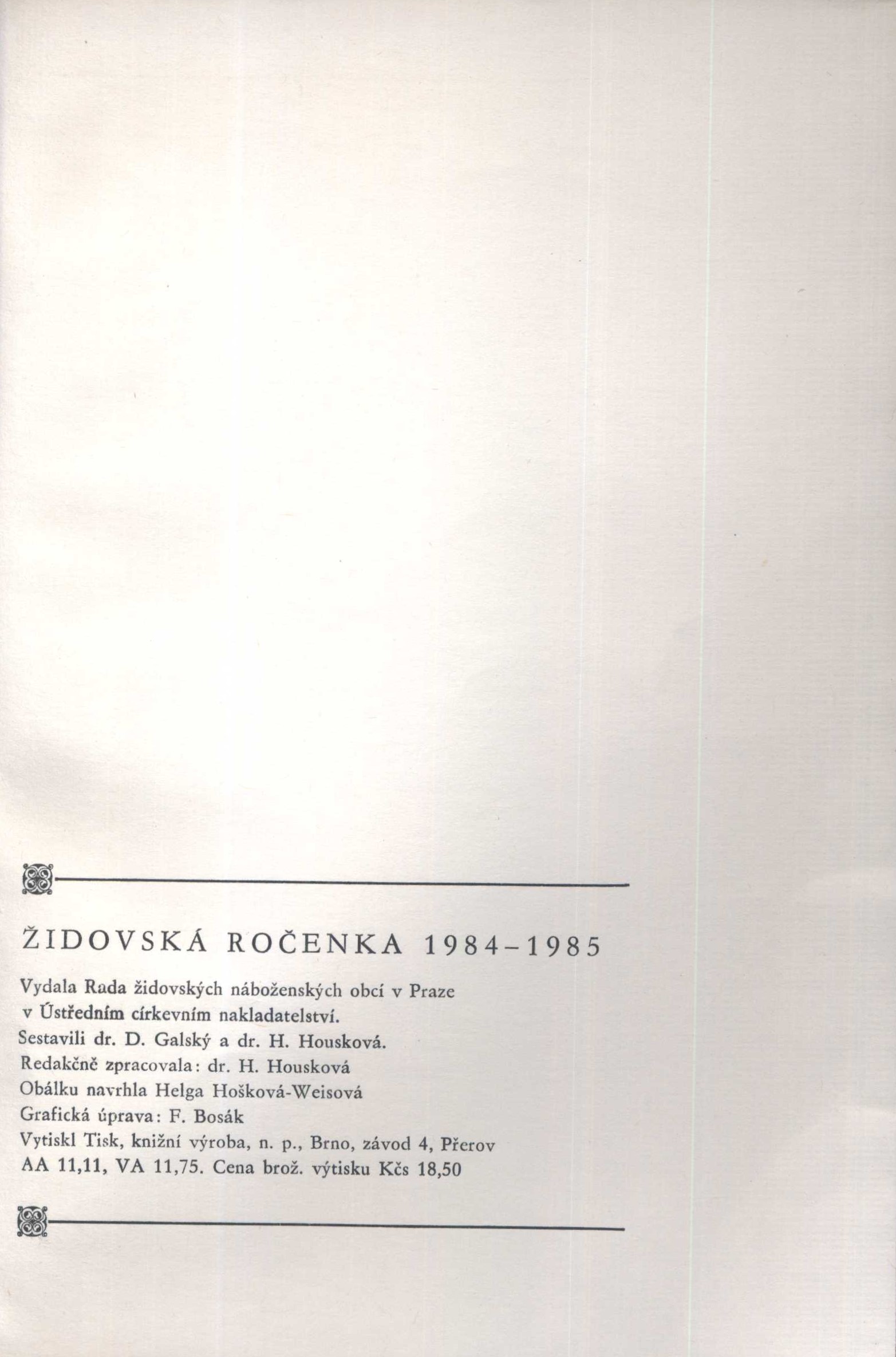 Názvové údaje Jewish studies : essays in honour of very reverend Dr. Gustav Sicher Chief Rabbi of Prague / Gustav Sicher, Miloš Bič, Eliáš Katz, Pavel Eisner, Hana Volavková, Stanislav Segert, Otto Muneles a další Osobní jméno Sicher, Gustav, 1880-1960 (Autor) Další autoři Bič, Miloš, 1910-2004 (Autor) Katz, Eliáš, 1916-2004 Eisner, Pavel, 1889-1958 (Autor) Volavková, Hana, 1904-1985 (Autor) Muneles, Otto, 1894-1967 Segert, Stanislav, 1921-2005 (Autor) Korp. Rada židovských náboženských obcí (Československo) (Nakladatel, vydavatel) Nakladatel Prague : Council of Jewish religious communities, 1955 Rozsah 111 stran Osobní hesla Sicher, Gustav, 1880-1960 - pražský a zemský vrchní rabín Heslo korporace (zkrác. heslo korp.) : Státní židovské muzeum (Praha, Česko) Klíčová slova Židé * náboženství * rabíni * synagogy * literatura * studie Počet ex. 1, z toho volných 1 Druh dok. monografie Signatura Eisner 3589 Názvové údaje Židovská ročenka Další autoři Galský, Desider, 1921-1990 (Sestavovatel, kompilátor) Housková, Hana, 1941-1998 (Sestavovatel, kompilátor) Ornest, Ota, 1913-2002 (Sestavovatel, kompilátor) Weissová, Helga, 1929- (Autor obálky) Korp. Rada židovských náboženských obcí (Československo) (Nakladatel, vydavatel) Ústřední církevní nakladatelství (Nakladatel, vydavatel) Tisk Brno (tiskárna) (Tiskař) Roč., číslo 5746, 1985-1986 Nakladatel Praha : Ústřední církevní nakladatelství, [1986] Výrobce Přerov : Tisk, knižní výroba, n. p. Brno, závod 4 Rozsah 143 stran : 20,5 cm Klíčová slova judaismus * Židé * židovská tematika * židovská literatura * židovská próza * r. 1985-1986 * ročenka Nadřízená jednotka Židovská ročenka Počet ex. 1, z toho volných 1 Druh dok. PERIODIKA - Svázaný ročník periodika Signatura BVolkova 2115 Názvové údaje Židovská ročenka Další autoři Galský, Desider, 1921-1990 (Sestavovatel, kompilátor) Housková, Hana, 1941-1998 (Sestavovatel, kompilátor) Weissová, Helga, 1929- (Autor obálky) Korp. Rada židovských náboženských obcí (Československo) (Nakladatel, vydavatel) Ústřední církevní nakladatelství (Nakladatel, vydavatel) Tisk Brno (tiskárna) (Tiskař) Roč., číslo 5745, 1984-1985 Nakladatel Praha : Ústřední církevní nakladatelství, [1984] Výrobce Přerov : Tisk, knižní výroba, n. p. Brno, závod 4 Rozsah 133 stran : 20,5 cm Klíčová slova judaismus * Židé * židovská tematika * židovská literatura * židovská próza * r. 1984-1985 * ročenka Nadřízená jednotka Židovská ročenka Počet ex. 1, z toho volných 1 Druh dok. PERIODIKA - Svázaný ročník periodika Signatura BVolkova 2114 Názvové údaje Židovská ročenka Další autoři Galský, Desider, 1921-1990 (Sestavovatel, kompilátor) Housková, Hana, 1941-1998 (Sestavovatel, kompilátor) Weissová, Helga, 1929- (Autor obálky) Korp. Rada židovských náboženských obcí (Československo) (Nakladatel, vydavatel) Ústřední církevní nakladatelství (Nakladatel, vydavatel) Tisk Brno (tiskárna) (Tiskař) Roč., číslo 5744, 1983-1984 Nakladatel Praha : Ústřední církevní nakladatelství, [1984] Výrobce Přerov : Tisk, knižní výroba, n. p. Brno, závod 4 Rozsah 144 stran : 20,5 cm Klíčová slova judaismus * Židé * židovská tematika * židovská literatura * židovská próza * r. 1983-1984 * ročenka Nadřízená jednotka Židovská ročenka Počet ex. 1, z toho volných 1 Druh dok. PERIODIKA - Svázaný ročník periodika Signatura BVolkova 2113 Názvové údaje Židovská ročenka Záhlaví-korpor. Rada židovských náboženských obcí (Československo) (Nakladatel, vydavatel) Další autoři Iltis, Rudolf, 1899-1978 (Editor) Weissová, Helga, 1929- (Autor obálky) Housa, Karel, 1911- (Knižní grafik) Korp. Ústřední církevní nakladatelství (Nakladatel, vydavatel) Tisk Brno (tiskárna) (Tiskař) Roč., číslo 5738, 1977-1978 Nakladatel Praha : Ústřední církevní nakladatelství, 1977 Výrobce Brno : Tisk, knižní výroba, n.p. Rozsah 143 stran ; 21 cm Klíčová slova židovství * judaismus * ročenka Nadřízená jednotka Židovská ročenka Počet ex. 1, z toho volných 1 Druh dok. PERIODIKA - Svázaný ročník periodika Signatura JVladislav 1036 Názvové údaje Život a odkaz / Richard Feder ; uspořádal Rudolf Iltis za spolupráce Františka Gottlieba a Josefa Bora ; předmluva Bedřich Bass ; obálku, vazbu a grafickou úpravu navrhl Karel Housa Osobní jméno Feder, Richard, 1875-1970 (Autor) Další autoři Iltis, Rudolf, 1899-1978 (Editor) Gottlieb, František, 1903-1974 (Editor) Bor, Josef, 1906-1979 (Editor) Bass, Bedřich, 1910-1979 (Autor úvodu atd.) Housa, Karel, 1911- (Knižní grafik) (Autor obálky) Korp. Rada židovských náboženských obcí (Československo) (Nakladatel, vydavatel) Ústřední církevní nakladatelství (Nakladatel, vydavatel) Tisk Brno (tiskárna) (Tiskař) Nakladatel Praha : Ústřední církevní nakladatelství, 1976 Výrobce Přerov : Tisk 4 Rozsah 217 stran ; 25 cm Klíčová slova monografie * životopis * judaismus * židovská kultura * rabíni Počet ex. 1, z toho volných 1 Druh dok. monografie Signatura JVladislav 303
