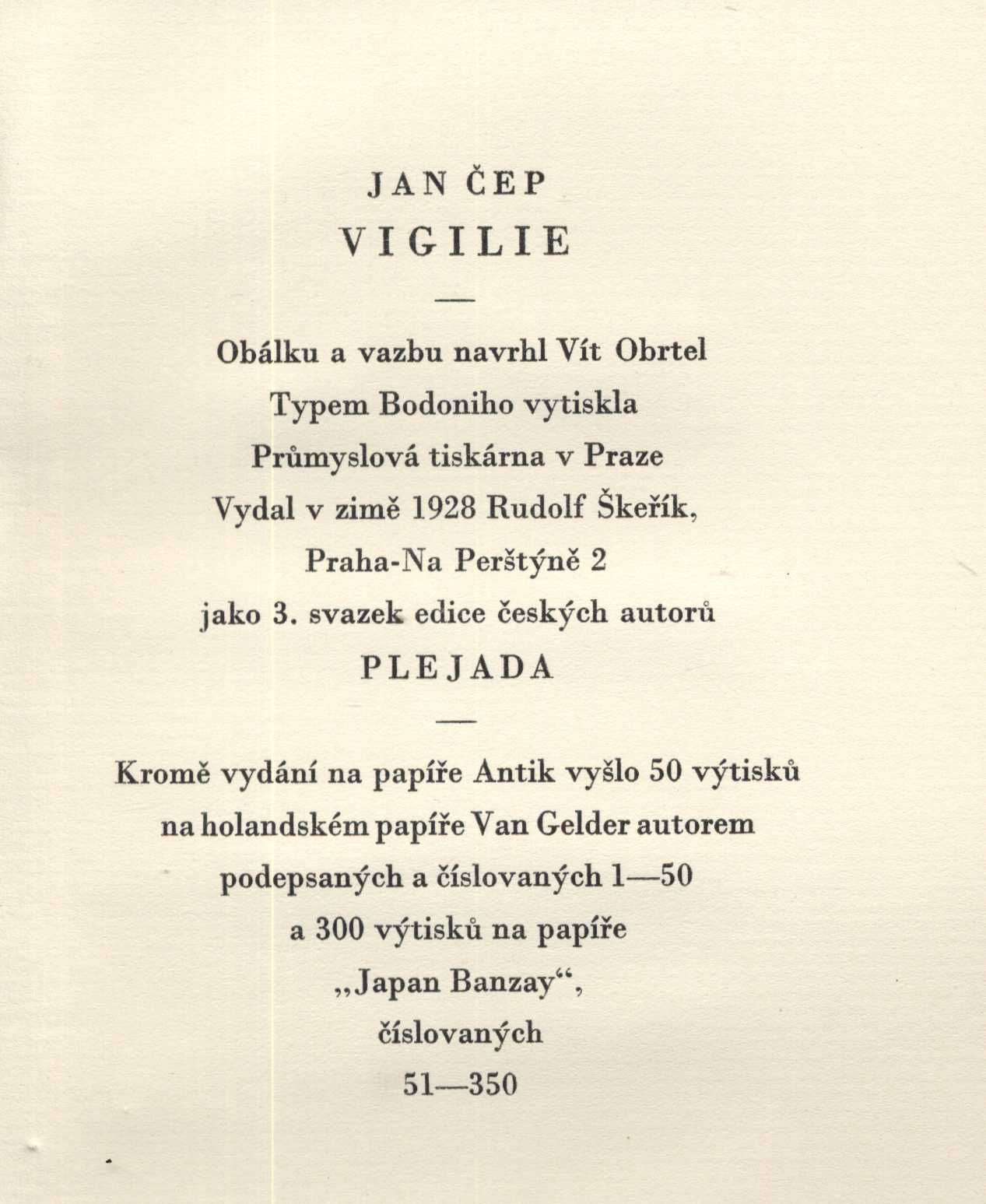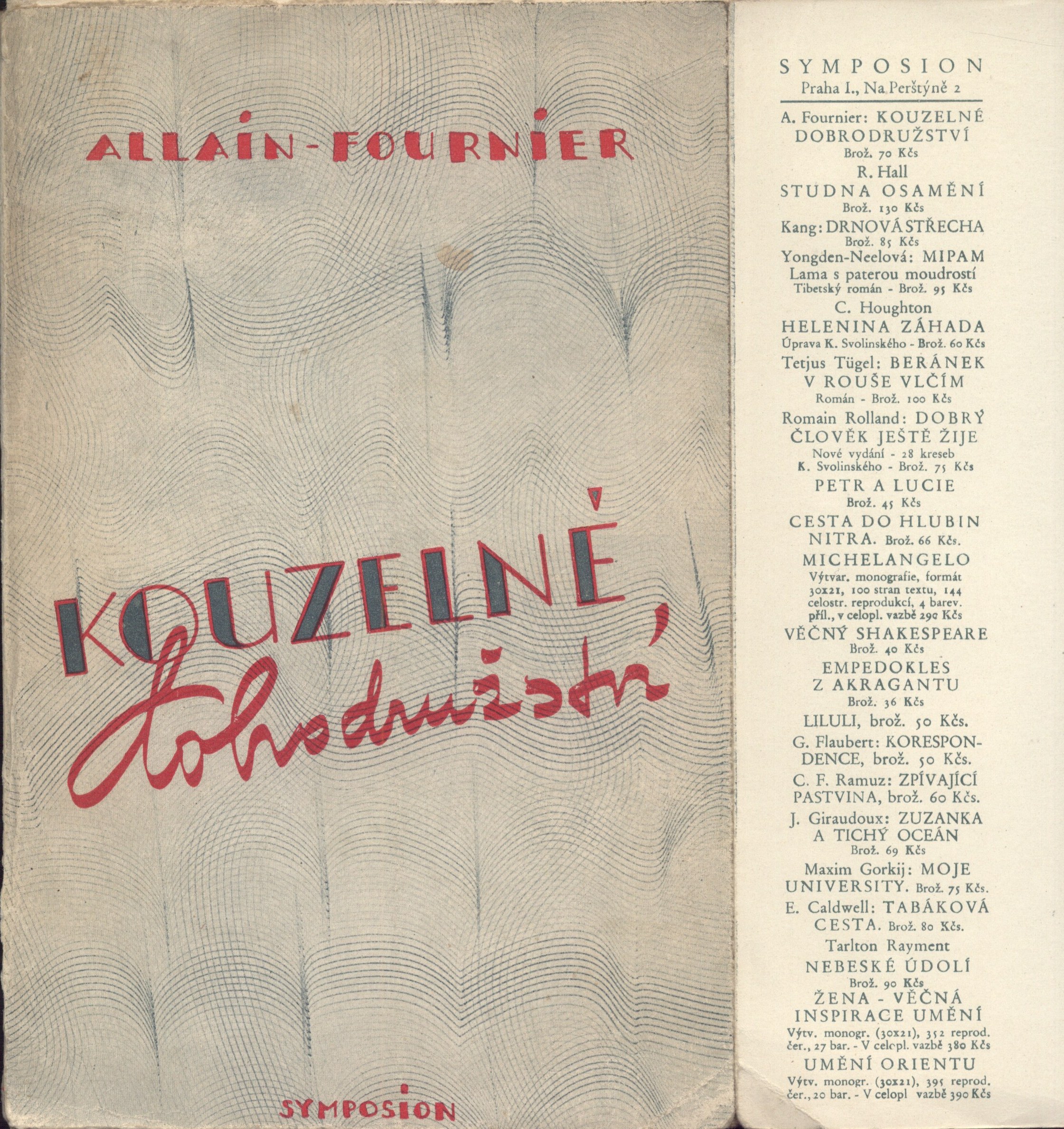 Názvové údaje Kouzelné dobrodružství : (Veliký Meaulnes) : román / Alain-Fournier ; z francouzštiny přeložil Jaroslav Zaorálek Autor Alain-Fournier, 1886-1914 (Autor) Další autoři Zaorálek, Jaroslav, 1896-1947 (Překladatel) Martin, Ivan (Autor obálky) (Výtvarník vazby) Korp. Rudolf Škeřík (nakladatelství) (Nakladatel, vydavatel) Státní tiskárna v Praze (Tiskař) Nakladatel Praha : Symposion, Rudolf Škeřík, 1948 Výrobce Státní tiskárna Rozsah 234 stran ; 21 cm Klíčová slova francouzská literatura * próza * Alain-Fournier * překlad * Zaorálek J. * román * r. 1948 Počet ex. 2, z toho volných 2 Druh dok. monografie Signatura VZinková 0147, M 153 c 36 Názvové údaje Veliký Meaulnes : román / Alain Fournier ; přeložil Jaroslav Zaorálek Autor Alain-Fournier, 1886-1914 (Autor) Další autoři Zaorálek, Jaroslav, 1896-1947 (Překladatel) Korp. Rudolf Škeřík (nakladatelství) (Nakladatel, vydavatel) Nakladatel Praha : R. Škeřík, 1928 Rozsah 214 stran Klíčová slova francouzský román Počet ex. 1, z toho volných 1 Druh dok. monografie Signatura M 151 h 38 Názvové údaje Hetéry a jejich svět / Alkifron ; přeložil František Stiebitz Autor Alkifrón, činný 2. století (Autor) Další autoři Stiebitz, Ferdinand, 1894-1961 (Překladatel) Korp. Rudolf Škeřík (nakladatelství) (Nakladatel, vydavatel) Nakladatel Praha : Rudolf Škeřík, 1931 Rozsah 101 stran : ilustrace ; 18 cm Klíčová slova antická literatura * klasická řecká literatura * korespondence Počet ex. 2, z toho volných 2 Druh dok. monografie Signatura Knytl 356, Janeček 288 Názvové údaje Kacíř a spol : výbor povídek / Guillaume Apollinaire ; přeložil Jaroslav Starý ; ilustroval Jos. Čapek Osobní jméno Apollinaire, Guillaume, 1880-1918 (Autor) Další autoři Starý, Jaroslav, 1896-1947 (Překladatel) Čapek, Josef, 1887-1945 (Ilustrátor) Korp. Rudolf Škeřík (nakladatelství) (Nakladatel, vydavatel) Průmyslová tiskárna v Praze (Tiskař) Nakladatel Praha : Rud. Škeřík, 1926 Výrobce Průmyslová tiskárna Rozsah 137 stran, 2 listy : ilustrace Klíčová slova francouzská próza * povídky * výbor povídek Počet ex. 3, z toho volných 3 Druh dok. monografie Signatura Nezval 1371, P 83 d 42, Knytl 934 Názvové údaje Ptáci : komedie / Aristofanes ; přeložil Ferdinand Stiebitz Autor Aristofanés, asi 445-asi 386 př. Kr. (Autor) Další autoři Stiebitz, Ferdinand, 1894-1961 (Překladatel) (Autor doslovu, tiráže atd.) Zink, Karel, 1889-1975 (Dedikátor) Zinková, Viola, 1925-2017 (Dedikant) Korp. Rudolf Škeřík (nakladatelství) (Nakladatel, vydavatel) Grafické závody V. a A. Janata (Tiskař) Nakladatel Praha : Antická knihovna, Rudolf Škeřík, 1934 Výrobce V Novém Bydžově : V. & A. Janata Rozsah 125 stran ; 20 cm Klíčová slova řecká literatura * řecká dramata * Aristofanes * komedie * překlad * Stiebitz F. * číslovaný výtisk * r. 1934 Počet ex. 2, z toho volných 2 Druh dok. monografie Signatura VZinková 0585, P 134 g 100 Názvové údaje Šálení času : Daphne Adeane : román / Maurice Baring ; [přeložil Jan Čep ; knihu upravil K. Svolinský ; vazbu navrhl Fr. Muzika] Osobní jméno Baring, Maurice, 1874-1945 (Autor) Další autoři Čep, Jan, 1902-1974 (Překladatel) Svolinský, Karel, 1896-1986 (Knižní grafik) Muzika, František, 1900-1974 (Autor obálky) Korp. Rudolf Škeřík (nakladatelství) (Nakladatel, vydavatel) Průmyslová tiskárna v Praze (Tiskař) Nakladatel Praha : Rudolf Škeřík, 1929 Výrobce (Průmyslová tiskárna) Rozsah 377 s. ; 8° Klíčová slova anglická próza * romány Počet ex. 1, z toho volných 1 Druh dok. monografie Signatura VMartínek 1514 Názvové údaje Mississippi = Blow for a landing : velebná matka řek : román / Ben Lucien Burman ; [přeložil Karel Novotný ; barevná linolea, grafická úprava a vazba od Michaela Floriana] Osobní jméno Burman, Ben Lucien, 1896-1984 (Autor) Další autoři Novotný, Karel N., 1907-1970 (Překladatel) Florian, Michael, 1911-1984 (Ilustrátor) (Grafický technik) Korp. Rudolf Škeřík (nakladatelství) (Nakladatel, vydavatel) Müller a spol. (tiskárna) (Tiskař) Nakladatel Praha : Rudolf Škeřík, 1941 Rozsah 297 s. : il. ; 19 cm Klíčová slova americká literatura * překlad * baladická próza * román * Mississippi * Amerika * stol. 19.-20. Počet ex. 1, z toho volných 1 Druh dok. monografie Signatura Leschinger 131 Názvové údaje Zvířata a lidé v džungli / W.L. Comfort a Zamin Ki Dost ; [přeložil Zdeněk Vančura ; úpravu a vazbu navrhla Toyen] Osobní jméno Comfort, Will Levington, 1878-1932 (Autor) Další autoři Zamin Ki Dost, 1866-1947 (Autor) Vančura, Zdeněk, 1903-1974 (Překladatel) Toyen, 1902-1980 (Knižní grafik) (Výtvarník vazby) Korp. Rudolf Škeřík (nakladatelství) (Nakladatel, vydavatel) Knihtiskárna K. Procházky (Tiskař) Nakladatel Praha : Rudolf Škeřík, 1933 Výrobce K. Procházka) Rozsah 271 s. ; 8° Klíčová slova americká próza * dobrodružné příběhy * Indie Počet ex. 1, z toho volných 1 Druh dok. monografie Signatura VMartínek 1530 Názvové údaje Vigilie : prosy / Jan Čep ; [obálku a vazbu navrhl Vít Obrtel] Osobní jméno Čep, Jan, 1902-1974 (Autor) Další autoři Obrtel, Vít, 1901-1988 (Autor obálky) Korp. Rudolf Škeřík (nakladatelství) (Nakladatel, vydavatel) Průmyslová tiskárna v Praze (Tiskař) Nakladatel Praha : Rudolf Škeřík, 1928 Výrobce (Průmyslová tiskárna) Rozsah 91 s. Klíčová slova česká próza * povídky Počet ex. 1, z toho volných 1 Druh dok. monografie Signatura VMartínek 0665 Názvové údaje Můj očistec / Jakub Deml ; [portrét autorův v litografii provedl František Bílek podle své kresby z roku 1906 ; obálku navrhl Method Kaláb, vazbu Vít Obrtel] Osobní jméno Deml, Jakub, 1878-1961 (Autor) Další autoři Bílek, František, 1872-1941 (Ilustrátor) Kaláb, Method, 1885-1963 (Autor obálky) Vokole