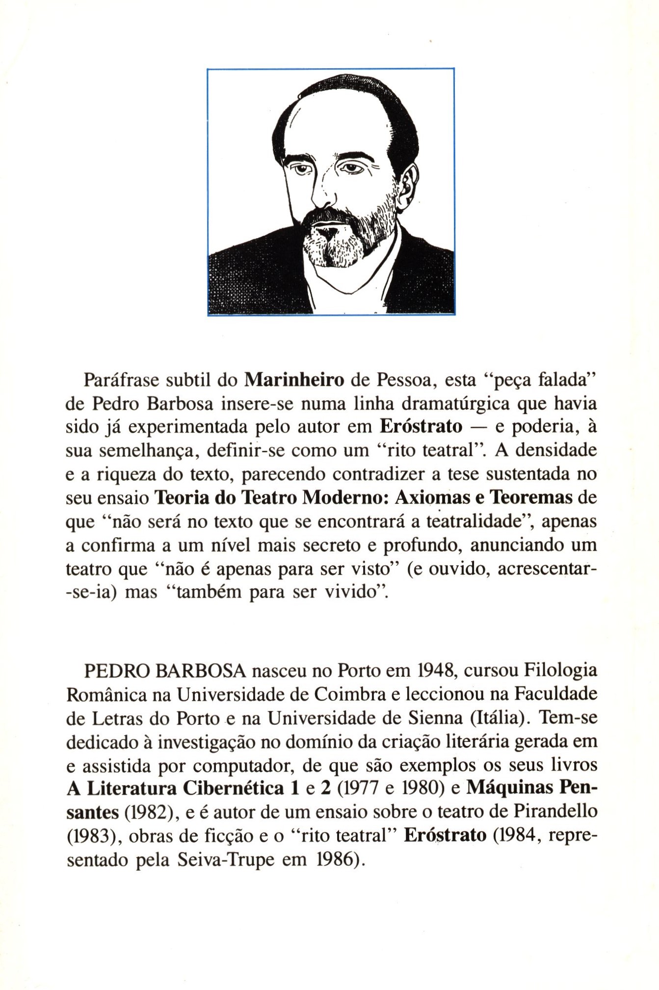 Názvové údaje Anticleia : ou os chapéus-de-chuva do sonho (peça falada) / Pedro Barbosa Osobní jméno Barbosa, Pedro, 1950- Další autoři Sociedade Portuguesa de Autores (Nakladatel, vydavatel) Óptima Tipográfica (Tiskař) Nakladatel Lisboa : Sociedade Portuguesa de Autores, 1992 Výrobce Casais de Serra ; Malveira : Óptima Tipográfica Rozsah 85 stran ; 18 cm Klíčová slova portugalská literatura * portugalsky psaná literatura * drama * divadelní hra * scénář Počet ex. 2, z toho volných 2 Druh dok. monografie Signatura Listopad 0576, Listopad 0584 Názvové údaje Como os Ratos Destruiram Nova Iorque / Miguel Barbosa Osobní jméno Barbosa, Miguel, 1925-2019 (Autor) Další autoři Sociedade Portuguesa de Autores (Nakladatel, vydavatel) Nakladatel Lisabon : Sociedade Portuguesa de Autores, 1983 Rozsah 102 stran: čb. fotografie ; 16 cm Klíčová slova portugalská literatura * portugalsky psaná literatura * drama * divadelní hra * scénář Počet ex. 1, z toho volných 1 Druh dok. monografie Signatura Listopad 0560 Názvové údaje É urgente o amor / Luiz Francisco Rebello Osobní jméno Rebelo, Luís Francisco, 1924-2011 Další autoři Sociedade Portuguesa de Autores (Nakladatel, vydavatel) Óptima Tipográfica (Tiskař) Nakladatel Lisabon : Sociedade Portuguesa de Autores, 1984 Výrobce Óptima Tipográfica Rozsah 96 stran: čb. fotografie ; 16 cm Klíčová slova portugalská literatura * portugalsky psaná literatura * drama * divadelní hra * scénář Počet ex. 1, z toho volných 1 Druh dok. monografie Signatura Listopad 0565 Názvové údaje O construtor : seguido de Quinze minutos de glória e O terceiro andar / Jaime Rocha Osobní jméno Rocha, Jaime, 1949- (Autor) Další autoři Sociedade Portuguesa de Autores (Nakladatel, vydavatel) Publicações Dom Quixote (Nakladatel, vydavatel) Nakladatel Lisboa : Sociedade Portuguesa de Autores/Publicações Dom Quixote, 1998 Výrobce Gráfica Manuel Barbosa & Filhos Rozsah 212 stran ; 21 cm Klíčová slova portugalská literatura * portugalsky psaná literatura * drama * stol. 20. Počet ex. 2, z toho volných 2 Druh dok. monografie Signatura Listopad 0434, Listopad 0435