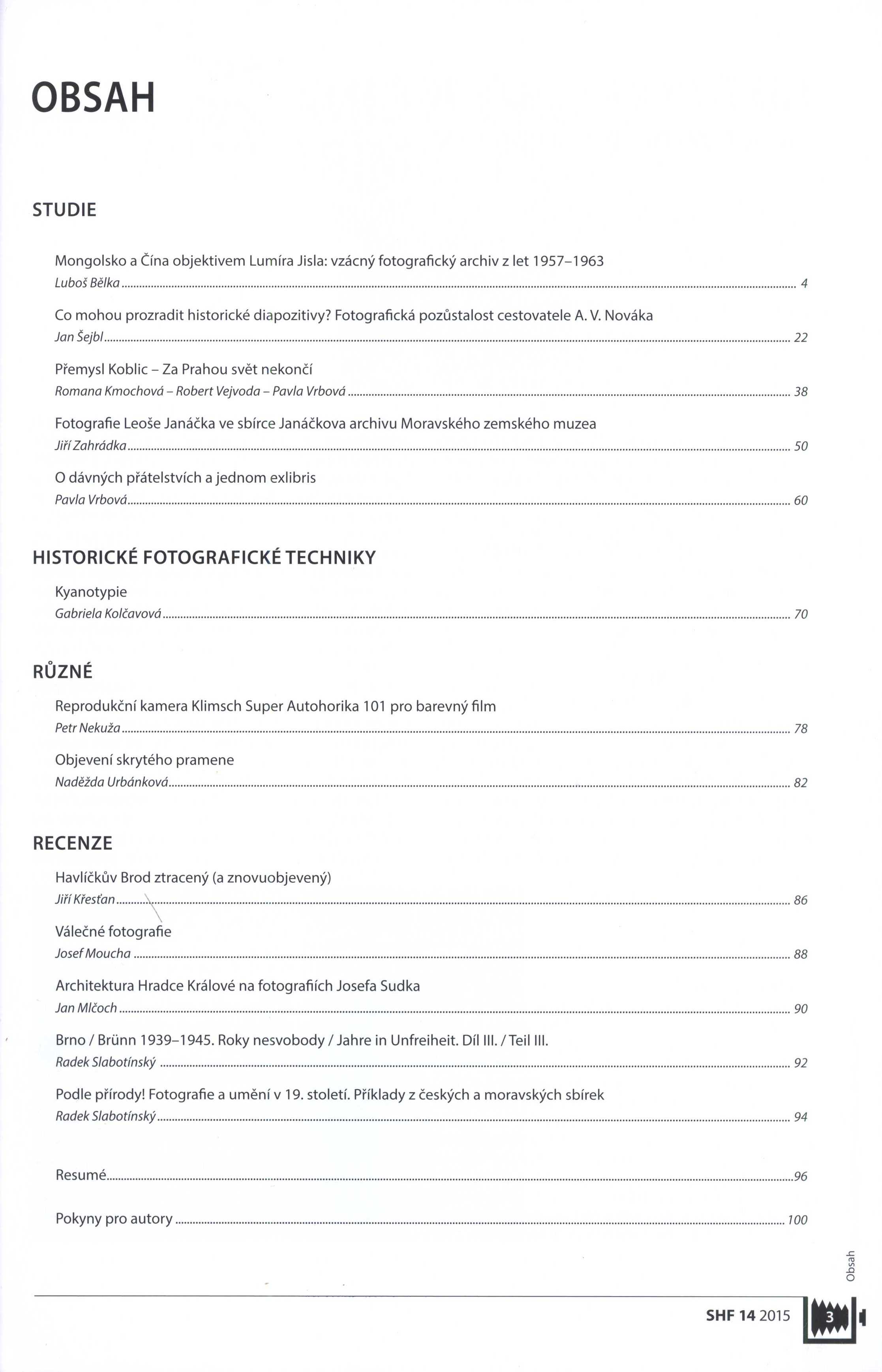Názvové údaje Břetislav Štorm (1907-1960) : výběr z heraldického díla : [Technické muzeum v Brně, leden 1969 / Zdeněk M. Zenger... et al.] Další autoři Zenger, Zdeněk Maria, 1913-1988 (Autor úvodu atd.) Korp. Technické muzeum (Brno, Česko) Nakladatel [Jílové u Prahy : Heraldická sekce při muzeu v Jílovém u Prahy, 1969?] Rozsah [12] s. : il. Osobní hesla Štorm, Břetislav, 1907-1960 - architekt, malíř, heraldik Klíčová slova heraldika * erby * znaky * kresby * výstava * r. 1969 * publikace k výstavě * pozvánka Počet ex. 1, z toho volných 1 Druh dok. monografie Signatura C12b 15355 Názvové údaje Historická fotografie : sborník pro prezentaci historické fotografie Další autoři Urbánková, Naděžda, 1963- (Šéfredaktor, odpovědný redaktor) Benešová, Emilie, 1957- (Šéfredaktor, odpovědný redaktor) Benešová, Anna (Knižní grafik) (Autor obálky) Bláha, Zdeněk, 1933-2022 (Autor obálky) Fišerová, Magda (Knižní grafik) Korp. Technické muzeum (Brno, Česko) (Nakladatel, vydavatel) Národní archiv (Nakladatel, vydavatel) Garamon, s. r. o. (Hradec Králové) (Tiskař) Roč., číslo Ročník 22, 2023 Nakladatel V Praze: Národní archiv ; V Brně: Technické muzeum , 2023 Výrobce Hradec Králové : Garamon, s.r.o. Rozsah 80 stran : fotografie, portréty, faksimile ; 30 cm Osobní hesla Frič, Alberto Vojtěch, 1882-1944 - etnograf, cestovatel, botanik, fotograf a spisovatel Klíčová slova historické fotografie * fotografické sbírky * Česko * sborníky Nadřízená jednotka Historická fotografie Počet ex. 1, z toho volných 0 Druh dok. PERIODIKA - Svázaný ročník periodika Signatura LITd 0219 Názvové údaje Historická fotografie : sborník pro prezentaci historické fotografie Další autoři Urbánková, Naděžda, 1963- (Šéfredaktor, odpovědný redaktor) Baudisch, Pavel (Šéfredaktor, odpovědný redaktor) Benešová, Anna (Knižní grafik) (Autor obálky) Audy, Marek, 1969- (Knižní grafik) Bláha, Zdeněk, 1933-2022 (Autor obálky) Korp. Technické muzeum (Brno, Česko) (Nakladatel, vydavatel) Národní archiv (Nakladatel, vydavatel) POINT CZ, s.r.o. (tiskárna) (Tiskař) Roč., číslo Ročník 21, 2022 Nakladatel V Brně : Technické muzeum ; V Praze : Národní archiv, [2022] Výrobce Brno : Point, s.r.o. Rozsah 85 stran : fotografie, portréty, ilustrace ; 30 cm Osobní hesla Bruner-Dvořák, Rudolf, 1864-1921 - fotožurnalista Klíčová slova historické fotografie * fotografické sbírky * Česko * sborníky Nadřízená jednotka Historická fotografie Počet ex. 1, z toho volných 1 Druh dok. PERIODIKA - Svázaný ročník periodika Signatura LITd 0151 Názvové údaje Historická fotografie : sborník pro prezentaci historické fotografie Další autoři Benešová, Emilie, 1957- (Šéfredaktor, odpovědný redaktor) Urbánková, Naděžda, 1963- (Šéfredaktor, odpovědný redaktor) Benešová, Anna (Knižní grafik) (Autor obálky) Fišerová, Magda (Knižní grafik) Bláha, Zdeněk, 1933-2022 (Autor obálky) Korp. Technické muzeum (Brno, Česko) (Nakladatel, vydavatel) Národní archiv (Nakladatel, vydavatel) Garamon, s. r. o. (Hradec Králové) (Tiskař) Roč., číslo Ročník 20, 2021 Nakladatel V Praze : Národní archiv ; V Brně : Technické muzeum ; [2021] Výrobce Hradec Králové : Garamon, s.r.o. Rozsah 87 stran : fotografie, portréty; 30 cm Klíčová slova historické fotografie * fotografické sbírky * Česko * sborníky Nadřízená jednotka Historická fotografie Počet ex. 1, z toho volných 1 Druh dok. PERIODIKA - Svázaný ročník periodika Signatura LITd 0111 Názvové údaje Historická fotografie : sborník pro prezentaci historické fotografie Další autoři Benešová, Emilie, 1957- (Šéfredaktor, odpovědný redaktor) Urbánková, Naděžda, 1963- (Šéfredaktor, odpovědný redaktor) Benešová, Anna (Knižní grafik) (Autor obálky) Audyová, Světluše (Knižní grafik) Bláha, Zdeněk, 1933-2022 (Autor obálky) Korp. Technické muzeum (Brno, Česko) (Nakladatel, vydavatel) Národní archiv (Nakladatel, vydavatel) POINT CZ, s.r.o. (tiskárna) (Tiskař) Roč., číslo Ročník 19, 2020 Nakladatel V Brně : Technické muzeum ; V Praze : Národní archiv ; [2020] Výrobce Brno : Point, s.r.o. Rozsah 87 stran : fotografie, portréty; 30 cm Klíčová slova historické fotografie * fotografické sbírky * Česko * sborníky Nadřízená jednotka Historická fotografie Počet ex. 1, z toho volných 0 Druh dok. PERIODIKA - Svázaný ročník periodika Signatura LITd 0073 Názvové údaje Historická fotografie : sborník pro prezentaci historické fotografie Další autoři Benešová, Emilie, 1957- (Šéfredaktor, odpovědný redaktor) Urbánková, Naděžda, 1963- (Šéfredaktor, odpovědný redaktor) Benešová, Anna (Knižní grafik) Fišerová, Magda (Knižní grafik) Bláha, Zdeněk, 1933-2022 (Autor obálky) Korp. Technické muzeum (Brno, Česko) (Nakladatel, vydavatel) Národní archiv (Nakladatel, vydavatel) Garamon, s. r. o. (Hradec Králové) (Tiskař) Roč., číslo Ročník 18, 2019 Nakladatel V Praze : Národní archiv ; V Brně : Technické muzeum ; [2019] Výrobce Hradec Králové : Garamon, s.r.o. Rozsah 87 stran : fotografie, portréty; 30 cm Klíčová slova historické fotografie * fotografické sbírky * Česko * sborníky Nadřízená jednotka Historická fotografie Počet ex. 1, z toho volných 1 Druh dok. PERIODIKA - Svázaný ročník periodika Signatura LITd 0072 Názvové údaje Historická fotografie : sborník pro prezentaci historické fotografie Další autoři Benešová, Emilie, 1957- (Šéfredaktor, odpovědný redaktor) Urbánková, Naděžda, 1963- (Šéfredaktor, odpovědný redaktor) Benešová, Anna (Knižní grafik) (Autor obálky) Bláha, Zdeněk, 1933-2022 (Autor obálky) Korp. Technické muzeum (Brno, Česko) (Nakladatel, vydavatel) Národní archiv (Nakladatel, vydavatel) Garamon, s. r. o. (Hradec Králové) (Tiskař) Roč., č