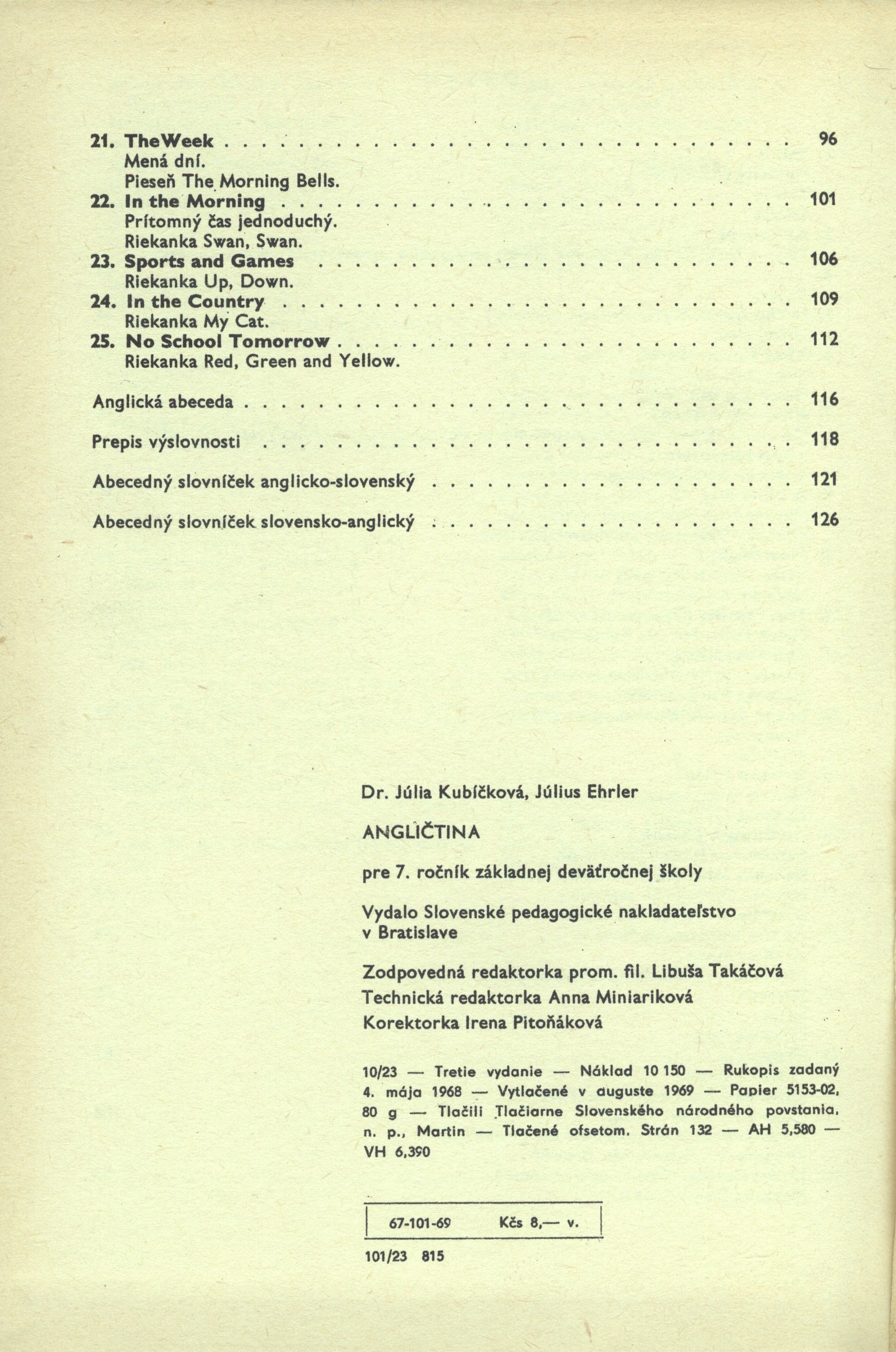 Názvové údaje Obrazovanije predloženij iz propozicij v sovremennom russkom jazyke / P. Adamec Osobní jméno Adamec, Přemysl, 1930- (Autor) Další autoři Univerzita Karlova (Nakladatel, vydavatel) Tlačiarne Slovenského národného povstania (tiskárna) Nakladatel Praha : Univerzita Karlova, 1982 Výrobce Martin : Tlačiarne Slovenského národného povstania Rozsah 160 stran ; 24 cm Klíčová slova ruština * ruský jazyk * syntax * příručky Počet ex. 1, z toho volných 1 Druh dok. monografie Signatura M 140b 7 Názvové údaje Ztracený svět / Josef Augusta ; ilustroval Zdeněk Burian Osobní jméno Augusta, Josef, 1903-1968 (Autor) Další autoři Burian, Zdeněk, 1905-1981 (Ilustrátor) (Autor obálky) Korp. Státní pedagogické nakladatelství (Nakladatel, vydavatel) Tlačiarne Slovenského národného povstania (tiskárna) (Tiskař) Nakladatel Praha : Státní pedagogické nakladatelství, 1968 Výrobce Martin : Tlačiarne SNP, n.p. Rozsah 166, 6 nečíslovaných stran barevných obrazových příloh : ilustrace ; 25 cm Klíčová slova pravěk * pravěká zvířata * pravěké prostředí * populárně naučná literatura * česká próza * povídky * příběhy * literatura pro děti a mládež Počet ex. 2, z toho volných 2 Druh dok. monografie Signatura C12c 5300, ZB 2 g 28 Názvové údaje Slovenské ľudové rozprávky zo zbierok Sama Czambla / výber zostavil a štúdiu napísal Jozef Minárik ; edične pripravila a poznámky napísala Marianna Prídavková ; ilustroval Ernest Zmeták Osobní jméno Cambel, Samuel, 1856-1909 (Autor) Další autoři Minárik, Jozef, 1922- (Sestavovatel, kompilátor) Mináriková, Marianna, 1930-2012 (Editor) Zmeták, Ernest, 1919-2004 (Ilustrátor) Korp. Slovenské vydavateľstvo krásnej literatúry (Nakladatel, vydavatel) Tlačiarne Slovenského národného povstania (tiskárna) (Tiskař) Nakladatel Bratislava : Slovenské vydavateľstvo krásnej literatúry, 1959 Výrobce V Martine : Tlačiarne Slovenského národného povstania Rozsah 395 stran : ilustrace; 20,5 cm Klíčová slova slovenská literatura * lidová slovesnost * sběratelé * pohádky * lidové pohádky * stol. 19. Počet ex. 1, z toho volných 1 Druh dok. monografie Signatura P 63 A 47 Názvové údaje Trojčlenka. Potkany. Popoludnie na pláži. Pacientka / Agatha Christie ; preložil Ján Vilikovský Osobní jméno Christie, Agatha, 1890-1976 (Autor) Další autoři Vilikovský, Ján, (Překladatel) 1937- Škvorecký, Josef, 1924-2012 (Autor doslovu, tiráže atd.) Nemsilová, Emília, 1932- (Překladatel) Dolinská, Dagmar (Autor obálky) (Výtvarník vazby) Korp. Slovenské vydavateľstvo krásnej literatúry (Nakladatel, vydavatel) Tlačiarne Slovenského národného povstania (tiskárna) (Tiskař) Nakladatel Bratislava : Slovenské vydavateľstvo krásnej literatúry, 1965 Výrobce Bánská Bystrica : Tlačiarne SNP, n. p., Martin Rozsah 137 stran ; 18 cm Osobní hesla Christie, Agatha, 1890-1976 - angl. spisovatelka Předmětová hesla detektivky * anglická literatura * anglická dramata Klíčová slova anglická literatura * drama * Christie A. * divadelní hry * detektivka * překlad * slovenština * r. 1965 Počet ex. 1, z toho volných 1 Druh dok. monografie Signatura VZinková 0091 Názvové údaje Bibliografia slovenských a inorečových novín a časopisov z rokov 1919-1938 / zostavili Mária Kipsová a kolektív ; prehľad napísala Elena Jakešová Osobní jméno Kipsová, Mária, (Autor) 1930- Další autoři Matica slovenská (Martin, Slovensko) (Nakladatel, vydavatel) Tlačiarne Slovenského národného povstania (tiskárna) (Tiskař) Nakladatel V Martine : Matica slovenská, 1968 Výrobce Tlačiarne SNP, n.p. Rozsah 1074 stran : tabulky ; 25 cm Klíčová slova slovenská literatura * slovenská periodika * Slovensko * bibliografie * první republika * r. 1919-1938 Počet ex. 3, z toho volných 3 Druh dok. monografie Signatura R XXVII d 27/b, R XXVII d 27/a, R XXVII d 27/c Názvové údaje Literatúra pre deti a mládež / Ján Kopál, Eva Tučná, Eva Preložníková Osobní jméno Kopál, Ján, 1925-2000 (Autor) Další autoři Preložníková, Eva (Autor) Tučná, Eva, 1944- (Autor) Korp. Slovenské pedagogické nakladateľstvo (Nakladatel, vydavatel) Tlačiarne Slovenského národného povstania (tiskárna) (Tiskař) Nakladatel Bratislava : Slovenské pedagogické nakladateľstvo, 1987 Výrobce Tlačiarne Slovenského národného povstania) Rozsah 207 s., + [30] s. obr. příl. Klíčová slova slovenská literatura * literatura pro děti * literatura pro děti a mládež Počet ex. 1, z toho volných 1 Druh dok. monografie Signatura R&AHamanovi 0643 Názvové údaje Angličtina pre 7. ročník základnej deväťročnej školy / Julie Kubíčková, Julius Ehrler ; [ilustroval Miloš Novák ; obálku navrhla Magda Musilová] Osobní jméno Kubíčková, Julie (Autor) Další autoři Ehrler, Julius, 1908- (Autor) Novák, Miloš, 1909-1988 (Ilustrátor) Musilová, Magda (Autor obálky) Korp. Slovenské pedagogické nakladateľstvo (Nakladatel, vydavatel) Tlačiarne Slovenského národného povstania (tiskárna) (Tiskař) (Tiskař obrazu) Nakladatel Bratislava : Slovenské pedagogické nakladateľstvo, 1969 Výrobce Tlačiarne Slovenského národného povstania) Rozsah 130 s. : il. ; 22 cm Předmětová hesla angličtina, učebnice ZŠ Klíčová slova angličtina * učebnice * učebnice pro základní školy * slovenština * ilustrované učebnice Počet ex. 1, z toho volných 1 Druh dok. monografie Signatura MNovák 096 Názvové údaje O údělu člověka / William Somerset Maugham ; z anglického originálu přeložila a poznámkami opatřila Jarmila Fastrová ; doslov napsal Radoslav Nenadál ; obálku a vyzbu navrhl Milan Grygar ; graficky upravil Milan Kovář Osobní jméno Maugham, W. Somerset (William Somerset), 1874-1965 (Autor) Další autoři Fastrová, Jarmila, 1899-1968 (Překladatel) (Autor komentáře textu) Nenadál, 