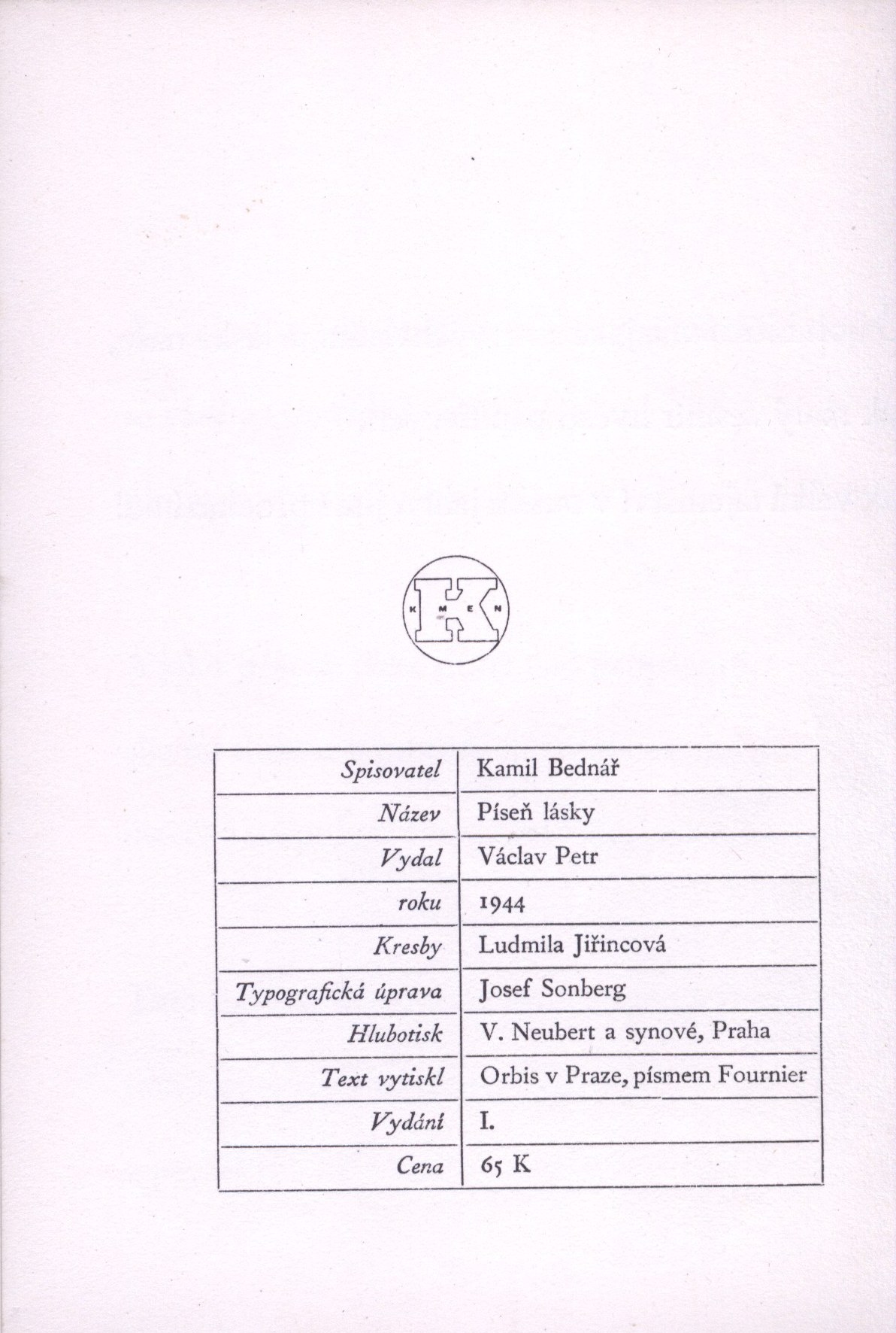 Názvové údaje Hladiny tůní : [poesie] / Kamil Bednář ; [upravil, obálku a vazbu navrhl Jaroslav Šváb ; kresby Josefa Lieslera] Osobní jméno Bednář, Kamil, 1912-1972 (Autor) Další autoři Šváb, Jaroslav, 1906-1999 (Knižní grafik) (Autor obálky) (Výtvarník vazby) Liesler, Josef, 1912-2005 (Ilustrátor) Korp. Václav Petr (nakladatelství) (Nakladatel, vydavatel) Frant. Bartoš (tiskárna) (Tiskař) Nakladatel Praha Václav Petr, 1943 Výrobce vytiskla knihtiskárna Frant. Bartoše) Rozsah 96, [4] s. : il. ; 20,9 cm Klíčová slova česká literatura * poezie * sbírka básní Počet ex. 1, z toho volných 1 Druh dok. monografie Signatura OŘíha 293 Názvové údaje Kámen v dlažbě : básně / Kamil Bednář ; [v úpravě Jaroslava Švába] Osobní jméno Bednář, Kamil, 1912-1972 (Autor) Další autoři Šváb, Jaroslav, 1906-1999 (Knižní grafik) Korp. Václav Petr (nakladatelství) (Nakladatel, vydavatel) František Obzina (tiskárna, nakladatelství) (Tiskař) Nakladatel Praha : Václav Petr, 1937 Výrobce Knihtiskárna F. Obziny) Rozsah 47 s. Klíčová slova česká poezie * básně * stol. 20., léta 30. Počet ex. 1, z toho volných 1 Druh dok. monografie Signatura C12b 12956 Názvové údaje Paměť bojovníků : báseň / Kamil Bednář ; [s původními litografiemi a v grafické úpravě Cyrila Boudy] Osobní jméno Bednář, Kamil, 1912-1972 (Autor) (Dedikátor) Další autoři Karásek ze Lvovic, Jiří, 1871-1951 (Dedikant) Bouda, Cyril, 1901-1984 (Autor obálky) (Ilustrátor) Korp. Václav Petr (nakladatelství) (Nakladatel, vydavatel) Průmyslová tiskárna v Praze (Tiskař) Nakladatel Praha : Václav Petr, 1947 Výrobce (Průmyslová tiskárna) Rozsah 49 s. : il. Klíčová slova česká literatura * česká poezie * 2. světová válka Počet ex. 1, z toho volných 1 Druh dok. monografie Signatura KaG XLI D 64 Názvové údaje Paměť bojovníků : báseň / Kamil Bednář ; [s původními litografiemi a v grafické úpravě Cyrila Boudy] Osobní jméno Bednář, Kamil, 1912-1972 (Autor) Další autoři Bouda, Cyril, 1901-1984 (Ilustrátor) (Knižní grafik) (Autor obálky) Korp. Václav Petr (nakladatelství) (Nakladatel, vydavatel) Průmyslová tiskárna v Praze (Tiskař) Nakladatel Praha : Václav Petr, 1947 Výrobce (Průmyslová tiskárna v Praze) Rozsah 49, [3] s. : il. ; 19,5 cm Klíčová slova česká literatura * poezie * báseň * válečná témata Počet ex. 5, z toho volných 4 Druh dok. monografie Signatura OŘíha 253, P 90 C 42, Thon 3329, Knytl 0977, P 56 e 63 Názvové údaje Píseň lásky / Kamil Bednář ; [kresby Ludmila Jiřincová ; typografická úprava Josef Sonberg] Osobní jméno Bednář, Kamil, 1912-1972 (Autor) Další autoři Jiřincová, Ludmila, 1912-1994 (Ilustrátor) Sonberg, Josef, 1892-1979 (Typograf) Korp. Václav Petr (nakladatelství) (Nakladatel, vydavatel) V. Neubert a synové (firma) (Tiskař obrazu) Orbis (tiskárna) (Tiskař) Nakladatel [Praha] : Václav Petr, 1944 Výrobce (V. Neubert a synové) Rozsah [36] s. : il. ; 15,3 cm Klíčová slova česká poezie * básně * stol. 20., léta 40. Počet ex. 2, z toho volných 2 Druh dok. monografie Signatura C12a 3345, OŘíha 219 Názvové údaje Slovo k mladým / Kamil Bednář Osobní jméno Bednář, Kamil, 1912-1972 (Autor) Další autoři Václav Petr (nakladatelství) (Nakladatel, vydavatel) Osvěta (tiskárna) (Nakladatel, vydavatel) Nakladatel Praha : Václav Petr, 1940 Výrobce Ve Valašském Meziříčí : Osvěta Rozsah 29 stran ; 19 cm Klíčová slova česká mládež * poválečné období * poválečná generace * vliv literatury * mladí básníci * básnická tvorba * úvahy Počet ex. 3, z toho volných 2 Druh dok. monografie Signatura ZKSlabý 0225, P 114 G 67, P 37 a 48 Názvové údaje Vánoce v Čechách / Kamil Bednář ; [kresby nakreslil Miroslav Truksa] Osobní jméno Bednář, Kamil, 1912-1972 (Autor) (Autor podpisu) Další autoři Truksa, Miroslav, 1918- (Ilustrátor) Korp. Václav Petr (nakladatelství) (Nakladatel, vydavatel) Česká grafická Unie (tiskárna a nakladatelství) (Tiskař) Nakladatel Praha : Václav Petr, 1940 [spr. 1941] Výrobce (Česká grafická Unie a. s.) Rozsah 27 s. : il. ; 24 s. Klíčová slova česká literatura * poezie * básně * Bednář K. * ilustrované knihy * ilustrace * Truksa M. * soukromý tisk * Petr V. Počet ex. 1, z toho volných 0 Druh dok. monografie Signatura Topič 0695 Názvové údaje Vánoce v Čechách / Kamil Bednář ; [kresby nakreslil Miroslav Truksa] Osobní jméno Bednář, Kamil, 1912-1972 (Autor) (Autor podpisu) Další autoři Truksa, Miroslav, 1918- (Ilustrátor) Korp. Václav Petr (nakladatelství) (Nakladatel, vydavatel) Česká grafická Unie (tiskárna a nakladatelství) (Tiskař) Nakladatel Praha : Václav Petr, 1940 Výrobce (Česká grafická unie) Rozsah 27 s. : il. Klíčová slova česká poezie * básně * bibliofilie Počet ex. 1, z toho volných 1 Druh dok. monografie Signatura VMartínek 0634 Názvové údaje Veliký mrtvý / Kamil Bednář ; [obálka a úprava Jaroslava Švába] Osobní jméno Bednář, Kamil, 1912-1972 (Autor) Další autoři Šváb, Jaroslav, 1906-1999 (Knižní grafik) (Autor obálky) Korp. Václav Petr (nakladatelství) (Nakladatel, vydavatel) Osvěta (tiskárna) (Tiskař) Nakladatel Praha : Václav Petr, 1940 Výrobce (Osvěta Rozsah 30 s. Klíčová slova česká literatura * česká poezie Počet ex. 3, z toho volných 3 Druh dok. monografie Signatura VHB 0241, P 33 C 42, M 174 d 90 Názvové údaje Jan Erazím Vocel, zakladatel našich dějin umění / Vojtěch Birnbaum Osobní jméno Birnbaum, Vojtěch, 1877-1934 (Autor) Další autoři Václav Petr (nakladatelství) (Nakladatel, vydavatel) Osvěta (tiskárna) (Tiskař) Nakladatel Praha : Václav Petr, 1942 Výrobce (Ve Valašském Meziříčí : Osvěta) Rozsah 31 stran Osobní hesla Vocel, Jan Erazim, 1802-1871 - archeolog, literární historik, redaktor, básník Klíčov
