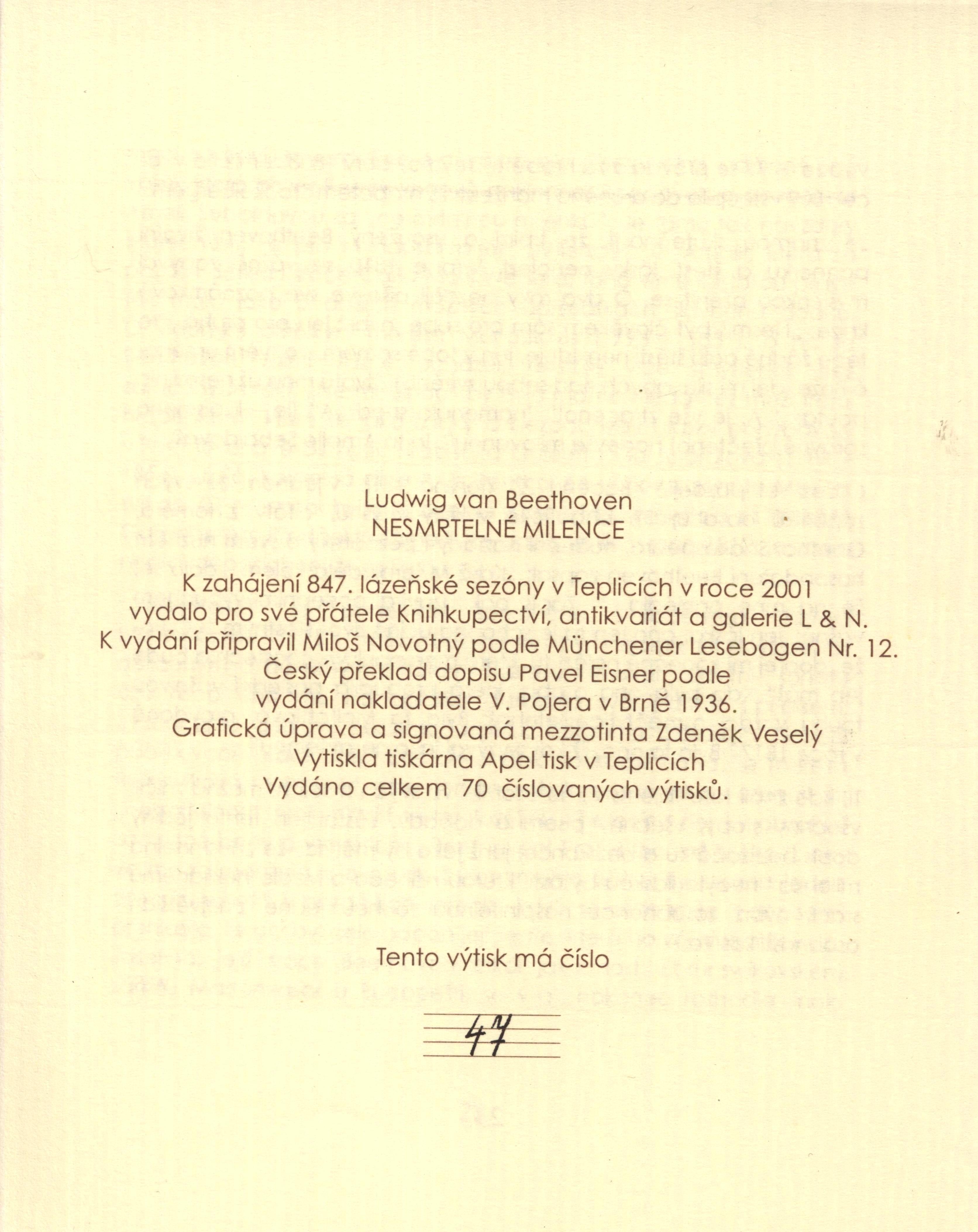Názvové údaje Hra pod loubím ; Robin a Marion / Adam de la Halle ; z francouzských originálů Jue de la feuillée a Jeu de Robin et Marion přeložil a předmluvou a poznámkami opatřil Pavel Eisner Autor Adam de La Halle, asi 1240-asi 1288 (Autor) Další autoři Eisner, Pavel, 1889-1958 (Překladatel) (Autor úvodu atd.) Korp. Státní nakladatelství krásné literatury, hudby a umění (Nakladatel, vydavatel) Nakladatel Praha : Státní nakladatelství krásné literatury, hudby a umění, 1956 Rozsah 135 stran ; 21 cm Klíčová slova francouzská dramata * veršované drama * divadelní hry Počet ex. 2, z toho volných 2 Druh dok. monografie Signatura Janeček 1893, M 174e 21 Názvové údaje Minutové romány / Peter Altenberg ; z Altenbergova díla vybral, přeložil a vysvětlivkami doprovodil Jan Hanč ; předmluvu napsal Pavel Eisner ; graficky upravil František Muzika Osobní jméno Altenberg, Peter, 1859-1919 (Autor) Další autoři Hanč, Jan, 1916-1963 Eisner, Pavel, 1889-1958 (Autor úvodu atd.) Muzika, František, 1900-1974 (Grafický technik) Holan, Vladimír, 1905-1980 (Dedikant) Zedníček, Stanislav, 1914-2002 (Dedikátor) Nakladatel Praha : SNKLHU, 1958 Rozsah 216 s. ; 17 cm Osobní hesla Holan, Vladimír, 1905-1980 - básník, prozaik, překladatel * Zedníček, Stanislav, 1914-2002 - básník, prozaik Klíčová slova česká literatura Počet ex. 1, z toho volných 1 Druh dok. monografie Signatura Holan 1091 Názvové údaje Goethe a víno : 1832-1932 / napsal Friedrich von Bassermann-Jordan ; přeložil Pavel Eisner Osobní jméno Bassermann-Jordan, Friedrich von, 1872-1959 (Autor) Další autoři Eisner, Pavel, 1889-1958 (Překladatel) Nakladatel V Praze : Soukromý tisk Jos. Oppelta synovce, 1933 Rozsah 16 s. : il. Osobní hesla Goethe, Johann Wolfgang von, 1749-1832 - německý básník, dramatik, prozaik a vědec Klíčová slova německá literatura * studie * vinařství * víno * Goethe J. W. * Německo * stol. 18.-19. Počet ex. 2, z toho volných 2 Druh dok. monografie Signatura MUK 1085, MUK 1085 Názvové údaje Goethe a víno : 1832-1932 / napsal Friedrich von Bassermann-Jordan ; přeložil Pavel Eisner Osobní jméno Bassermann-Jordan, Friedrich von, 1872-1959 (Autor úvodu atd.) Další autoři Eisner, Pavel, 1889-1958 (Překladatel) Mašat, Jaroslav, 1895-1979 (Knižní grafik) Čebiš, František Rudolf, 1895-1961 (Nakladatel, vydavatel) Korp. Průmyslová tiskárna v Praze (Tiskař) Nakladatel Praha : [Josef Oppelt synovec], 1932 Výrobce ([Průmyslová tiskárna]) Rozsah 16 s. : il. ; 29 cm + 1 příl. Klíčová slova německá literatura * Goethe J. W. * víno * bibliofilie * bibliofilská vydání * bibliofilské tisky * novoročenka * novoroční tisk Počet ex. 2, z toho volných 2 Druh dok. monografie Signatura Holan 2143, KaG VII B 2 Názvové údaje An die unsterbliche Geliebte = Nesmrtelné milence / Ludwig van Beethoven ; [k vydání připravil Miloš Novotný podle Münchener Lesebogen Nr. 12 ; český překlad dopisu Pavel Eisner podle vydání nakladatele V. Pojera v Brně 1936 ; grafická úprava a signovaná mezzotinta Zdeněk Veselý] Osobní jméno Beethoven, Ludwig van, 1770-1827 (Autor) Další autoři Novotný, Miloš (Editor) Eisner, Pavel, 1889-1958 (Překladatel) Veselý, Zdeněk, 1932- (Grafický technik) Nakladatel Teplice : Knihkupectví, antikvariát a galerie L&N, 2001 Výrobce (Apel tisk) Rozsah 23 s. ; 19 cm Osobní hesla Beethoven, Ludwig van, 1770-1827 - německý skladatel Chronologie 18.-19. stol. Klíčová slova německá literatura * překlad * bibliofilie * korespondence * dopis * hudební skladatelé * Beethoven L. van * stol. 18.-19. Počet ex. 1, z toho volných 1 Druh dok. monografie Signatura EJulis 0711 Názvové údaje O žárlivém Estremadurci / Miguel de Cervantes Saavedra ; ze španělského originálu "Novela del zeloso extremeño" přeložil Emil Janovský ; ilustrace nakreslil Jaroslav Novotný ; podle osnovy Jana Přibíka Osobní jméno Cervantes Saavedra, Miguel de, 1547-1616 (Autor) Další autoři Eisner, Pavel, 1889-1958 (Překladatel) Podroužek, Jaroslav, 1913-1954 (Nakladatel, vydavatel) Přibík, Jan (Typograf) Korp. Politika (tiskárna, nakladatelství) (Tiskař) Nakladatel Praha : Jaroslav Podroužek, 1942 Výrobce V Praze : Politika, 1942 Rozsah 52 stran : ilustrace Klíčová slova španělská literatura * španělská próza * renesanční literatura Počet ex. 2, z toho volných 2 Druh dok. monografie Signatura KaG XXXII A 141, VHB 4286 Názvové údaje Nový život / Dante Alighieri ; [z italštiny přeložil Emil Jankovský ; úvodní kresba Antonín Procházka ; typografická úprava Jana Přibíka] Osobní jméno Alighieri, Dante, 1265-1321 (Autor) Další autoři Jankovský, Emil (Překladatel) Procházka, Antonín, 1882-1945 (Ilustrátor) Přibík, Jan (Typograf) Eisner, Pavel, 1889-1958 (Dedikátor) Mukařovský, Jan, 1891-1975 (Dedikant) (Autor podpisu) Korp. Jaroslav Podroužek (nakladatelství) (Nakladatel, vydavatel) Grafia (tiskárna, nakladatelství) (Tiskař) Nakladatel Praha : Jaroslav Podroužek, 1945 Výrobce (Grafia) Rozsah 16, 78 s. Osobní hesla Eisner, Pavel, 1889-1958 - básník, jazykovědec, překladatel * Mukařovský, Jan, 1891-1975 - literární vědec, estetik, pedagog * Mukařovský, Jan, 1891-1975 - literární vědec, estetik, pedagog Klíčová slova italská literatura * překlad * poezie * lyrika * ukázky z tvorby * stol. 13., léta 80.-90. Počet ex. 5, z toho volných 5 Druh dok. monografie Signatura MUK 127, LK M 57 f 14, LK P 66 c 11, LK Eisner 1021, LK Kraus 197 Názvové údaje Nový život / Dante Alighieri ; z italštiny přeložil Emil Janovský ; úvodní kresba Antonín Procházka ; typografická úprava Jana Přibíka Osobní jméno Alighieri, Dante, 1265-1321 (Autor) Další autoři Eisner, Pavel, 1889-1958 (Překladatel) Procházka, Antonín, 1882-1945 (Ilustrátor) Přibík, Jan (Grafický technik) Nakladatel Praha : J
