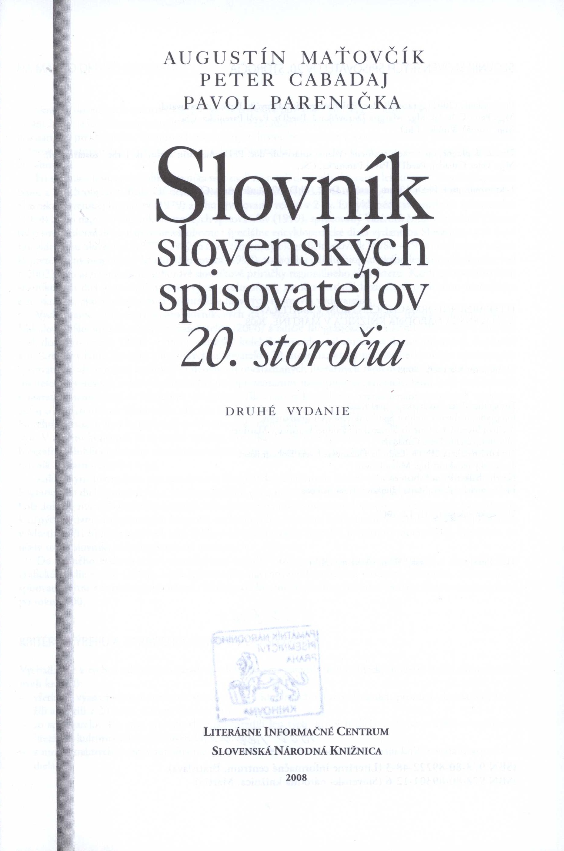 Názvové údaje Listy Martina Hamuljaka / Na vyd. pripr. Augustín Maťovčík ; Obál. navrhol Pavol Menich. [Zväzok] II=02, 1834-1859 Osobní jméno Hamuljak, Martin, 1789-1859 (Autor) Další autoři Maťovčík, Augustín, 1937- (Editor) Menich, Pavol, 1937-1997 (Grafický technik) Nakladatel Martin : Matica slovenská, 1989 Rozsah 423 s. Osobní hesla Hamuljak, Martin, 1789-1859 - sloven. právník, vydavatel, redaktor Klíčová slova slovenská literatura * korespondence * Hamuljak M. * r. 1834-1859 Počet ex. 1, z toho volných 1 Druh dok. monografie Signatura C12b 2366 Názvové údaje Slovník slovenských spisovateľov 20. storočia / Augustín Maťovčík, Peter Cabadaj, Margita Ďurovčíková, Pavol Parenička, Tomáš Winkler ; návrh obálky a grafická úprava Ivan Bílý Osobní jméno Maťovčík, Augustín, (Autor) 1937- Další autoři Cabadaj, Peter, (Autor) 1966- Ďurovčíková, Margita, 1938- (Autor) Parenička, Pavol, 1959- (Autor) Winkler, Tomáš, 1940-2021 (Autor) Bílý, Ivan (Autor obálky) (Knižní grafik) Korp. Spolok slovenských spisovateľov (Nakladatel, vydavatel) Slovenská národná knižnica (Nakladatel, vydavatel) Nakladatel Bratislava : Vydavateľstvo Spolku slovenských spisovateľov ; Martin : Slovenská národná knižnica, 2001 Výrobce Žilina : tlač Choma & Krupa Rozsah 527 stran : černobílé portréty ; 25 cm Klíčová slova literární slovníky * slovníky spisovatelů * slovenští spisovatelé * stol. 20. Počet ex. 2, z toho volných 2 Druh dok. monografie Signatura CDL 0047, C12c 5536 Názvové údaje Biografické štúdie. Jozef Cíger Hronský v interpretácii literárných bádateľov / zost. Augustín Maťovčík. Osobní jméno Maťovčík, Augustín, 1937- (Sestavovatel, kompilátor) Roč., číslo 24, 1997 Nakladatel Martin : Matica slovenská, 1997 Rozsah 260 s. Osobní hesla Cíger-Hronský, Jozef, 1896-1960 - prozaik, publicista Klíčová slova slovenská literatura * literární konference * Hronský J. C. * život * dílo * r. 1996 * sborníky z konferencí Nadřízená jednotka Biografické štúdie Počet ex. 1, z toho volných 1 Druh dok. PERIODIKA - Přijatá čísla Signatura C12b 1725 Názvové údaje Hviezdoslav a rodná Orava / Augustín Maťovčík ; Obálka a graf. úpr. Igor Štrbík ; Na obálke použ. reprod. olejomalby portrétu P. O. Hviezdoslava od J. Stašíka Osobní jméno Maťovčík, Augustín, 1937- (Autor) Další autoři Štrbík, Igor (Grafický technik) Stašík, J. (Ilustrátor) Nakladatel Martin : Vydavateľstvo Matice slovenskej, 1999 Rozsah 41 s. : fot Osobní hesla Hviezdoslav, Pavol Országh, 1849-1921 - slovenský básník, dramatik a překladatel * Hviezdoslav, Pavol Országh, 1849-1921 - slovenský básník, dramatik a překladatel * Hviezdoslav, Pavol Országh, 1849-1921 - slovenský básník, dramatik a překladatel * Hviezdoslav, Pavol Országh, 1849-1921 - slovenský básník, dramatik a překladatel Klíčová slova slovenská literatura * biografie * Hviezdoslav P. * život * dílo * stol. 19., léta 50.-stol. 20., léta 10. Počet ex. 1, z toho volných 1 Druh dok. monografie Signatura C12b 3572 Názvové údaje Obraz života a diela Antona Bernoláka : K 235. výročiu narodenia kodifikátora prvého spisovného jazyka Slovákov / Augustín Maťovčík ; Návrh obálky Igor Štrbík ; Text Augustín Maťovčík Osobní jméno Maťovčík, Augustín, 1937- (Autor) Další autoři Štrbík, Igor (Grafický technik) Maťovčík, Augustín, 1937- (Autor úvodu atd.) Nakladatel Martin : Matica slovenská, 1997 Rozsah 16 s. : fot., il Osobní hesla Bernolák, Anton, 1762-1813 - slovenský obrozenec, filolog Klíčová slova slovenská literatura * spisovná slovenština * Bernolák A. * život * dílo * stol. 18., léta 60.-stol. 19., léta 10. Počet ex. 1, z toho volných 1 Druh dok. monografie Signatura C12b 1722 Názvové údaje Reprezentačný biografický lexikón Slovenska / Augustín Maťovčík a kol. ; Návrh obálky a graf. úpr. Igor Štrbík Osobní jméno Maťovčík, Augustín, 1937- (Autor) Další autoři Maťovčík, Augustín, 1937- (Sestavovatel, kompilátor) Štrbík, Igor (Grafický technik) Nakladatel Martin : Matica slovenská, 1999 Rozsah 384 s. : fot Klíčová slova slovenská literatura * biografický slovník * Slovensko * význačné osobnosti Počet ex. 1, z toho volných 1 Druh dok. monografie Signatura C12c 941 Názvové údaje Slovník slovenských spisovateľov 20. storočia / Augustín Maťovčík, Peter Cabadaj, Pavol Parenička Osobní jméno Maťovčík, Augustín, 1937- (Autor) (Sestavovatel, kompilátor) Další autoři Cabadaj, Peter, 1966- (Autor) Parenička, Pavol, 1959- (Autor) Nakladatel Bratislava : Literárne informačné centrum ; Martin : Slovenská národná knižnica, 2008 Rozsah 576 s. : il. ; 25 cm Klíčová slova slovenští spisovatelé * slovenská literatura * stol. 20. * biografický slovník Počet ex. 2, z toho volných 2 Druh dok. monografie Signatura PS 0, C12c 5463 Názvové údaje Biografistika : (stav, podoby a metodika biografického bádania na Slovensku) / Augustín Maťovčík a Pavol Parenička Osobní jméno Parenička, Pavol, 1959- (Autor) Další autoři Maťovčík, Augustín, 1937- (Autor) Nakladatel Martin : Slovenská národná knižnica, 2005 Rozsah 180 s. Klíčová slova biografické informace * biografické studie * biografie * slovníky * Slovensko * studie Počet ex. 1, z toho volných 1 Druh dok. monografie Signatura C12b 8590 Názvové údaje Biografické štúdie / [zostavil Zdenko Ďuriška ; zodpovedný redaktor Augustín Maťovčík ; obálka Milan Novák] Další autoři Ďuriška, Zdenko, 1957- (Sestavovatel, kompilátor) Maťovčík, Augustín, 1937- (Šéfredaktor, odpovědný redaktor) Novák, Milan, 1951- (Autor obálky) Korp. Slovenská národná knižnica. Národný biografický ústav (Nakladatel, vydavatel) Roč., číslo 36, 2013 Nakladatel Martin : Slovenská národná knižni