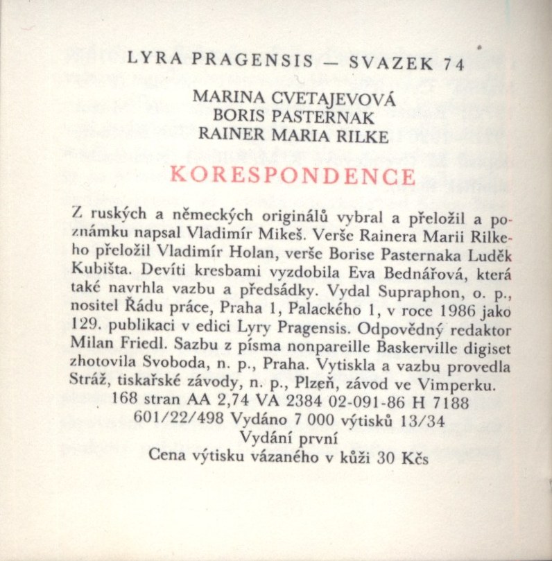 Názvové údaje Portugiesische Briefe / die Briefe der Marianne Alcoforado ; übertragen von Rainer Maria Rilke Osobní jméno Alcoforado, Mariana, 1640-1723 (Autor) Další autoři Rilke, Rainer Maria, 1875-1926 (Překladatel) Nakladatel Leipzig : Insel-Verlag, [1913] Rozsah 49 stran Klíčová slova portugalská literatura * milostné dopisy * křesťanští řeholníci * stol. 17. Počet ex. 1, z toho volných 1 Druh dok. monografie Signatura Eisner 1558 Názvové údaje Rainer Maria Rilke / Lou Andreas-Salomé ; Z něm. orig. přel., pozn. a doslov napsala Alena Bláhová ; Graf. úprava Robert V. Novák Osobní jméno Andreas-Salomé, Lou, 1861-1937 (Autor) Další autoři Bláhová, Alena, 1954-2024 (Překladatel) Novák, Robert V., 1962- (Grafický technik) Nakladatel Praha : Torst, 1994 Rozsah 89 s. Osobní hesla Rilke, Rainer Maria, 1875-1926 - pražský německy píšící spisovatel Klíčová slova německá literatura * próza * esej * Rilke R. M. * korespondence Počet ex. 1, z toho volných 1 Druh dok. monografie Signatura M 219 d 27 Názvové údaje Russland mit Rainer : Tagebuch der Reise mit Rainer Maria Rilke im Jahre 1900 / Lou Andreas-Salomé ; Hrsg. von Stéphane Michaud in Verbindung mit Dorothee Pfeiffer ; Mit einem Vorwort von Brigitte Kronauer Osobní jméno Andreas-Salomé, Lou, 1861-1937 (Autor) Další autoři Michaud, Stéphane (Editor) Pfeiffer, Dorothee (Editor) Kronauer, Brigitte, 1940- (Autor úvodu atd.) Nakladatel Marbach : Deutsche Schillergesellschaft, 1999 Rozsah 158 s. Osobní hesla Andreas-Salomé, Lou, 1861-1937 - prozaička, esejistka,, psychoanalytička * Rilke, Rainer Maria, 1875-1926 - pražský německy píšící spisovatel Klíčová slova německá literatura * cestovní deník * Rusko * Rilke R. M. * r. 1900 Počet ex. 1, z toho volných 1 Druh dok. monografie Signatura C12a 1612 Názvové údaje Láska Magdalenina : francouzské kázání vypsané abbém Josefem Bonnetem / z rukopisu Q 14 carské knihovny v Petrohradě přepsal Rainer Maria Rilke ; přeložil Josef Marek Osobní jméno Bonnet, Joseph, 1858-1912 (Autor) Další autoři Rilke, Rainer Maria, 1875-1926 (Autor adaptace, upravovatel) Marek, Josef Richard, 1883-1951 (Překladatel) Korp. František Obzina (tiskárna, nakladatelství) (Tiskař) Nakladatel Stará Říše na Moravě : Antonín Ludvík Stříž, 1917 Výrobce František Obzina, Rozsah 28 s. : il. ; 20 cm Klíčová slova francouzská literatura * překlad * kázání Počet ex. 1, z toho volných 1 Druh dok. monografie Signatura Holan 1181 Názvové údaje Korespondence / Marina Cvetajevová, Boris Pasternak, Rainer Maria Rilke ; [z ruských a německých originálů] vybral a přeložil [a poznámku napsal] Vladimír Mikeš ; ilustrovala Eva Bednářová [která také navrhla vazbu a předsádky] ; [verše Rainera Marii Rilkeho přeložil Vladimír Holan ; verše Borise Pasternaka Luděk Kubišta] Osobní jméno Cvetajeva, Marina Ivanovna, 1892-1941 (Autor) Další autoři Pasternak, Boris Leonidovič, 1890-1960 (Autor) Rilke, Rainer Maria, 1875-1926 (Autor) Mikeš, Vladimír, 1927- (Sestavovatel, kompilátor) (Překladatel) (Autor úvodu atd.) Bednářová, Eva, 1937-1986 (Ilustrátor) (Výtvarník vazby) Holan, Vladimír, 1905-1980 (Překladatel) Kubišta, Luděk, 1927- (Překladatel) Korp. Supraphon (firma) (Nakladatel, vydavatel) Stráž, tiskařské závody (Tiskař) Nakladatel Praha : Supraphon, o. p., 1986 Výrobce Stráž, tiskařské závody, n. p.) Rozsah 165 s. : il. ; 8 cm Osobní hesla Cvetajeva, Marina Ivanovna, 1892-1941 - ruská básnířka, spisovatelka a překladatelka * Pasternak, Boris Leonidovič, 1890-1960 - ruský básník, prozaik a překladatel * Rilke, Rainer Maria, 1875-1926 - pražský německy píšící spisovatel Klíčová slova korespondence * básníci * Cvetajeva M. * Pasternak B. * Rilke R. M. * překlad * ilustrované knihy * Bednářová E. * kolibří vydání Počet ex. 1, z toho volných 0 Druh dok. monografie Signatura Topič 0620 Názvové údaje Il settimo sogno : Lettere 1926 / Marina Cvetaeva, Boris Pasternak, Rainer Maria Rilke ; a cura di Konstantin Azadovskij, Elena e Evgenij Paternak ; edizione italiana a cura di Serena Vitale Osobní jméno Cvetajeva, Marina Ivanovna, 1892-1941 (Autor) Další autoři Pasternak, Boris Leonidovič, 1890-1960 (Autor) Rilke, Rainer Maria, 1875-1926 (Autor) Azadovskij, Mark Konstantinovič, 1888-1954 (Editor) Pasternak, Jevgenij Borisovič, 1924-2012 (Editor) Nakladatel Roma : Editori Riuniti, 1980 Rozsah xli, 216 s. Osobní hesla Cvetajeva, Marina Ivanovna, 1892-1941 - ruská básnířka, spisovatelka a překladatelka * Pasternak, Boris Leonidovič, 1890-1960 - ruský básník, prozaik a překladatel * Rilke, Rainer Maria, 1875-1926 - pražský německy píšící spisovatel Klíčová slova ruští básníci * němečtí spisovatelé * stol. 20. * korespondence * dopisy * r. 1926-1927 Počet ex. 1, z toho volných 1 Druh dok. monografie Signatura Fuks 0761 Názvové údaje René : Pražská léta Rainera Marii Rilka / Petr Demetz ; Z něm. orig. edičně uspoř., přel., doslov a bibliogr. pozn. naps. Ladislav Nezdařil ; Graf. úpr. Dušan Straňák ; Na obál. je použito kresby tuší od Emila Orlika Osobní jméno Demetz, Peter, 1922-2024 (Autor) Další autoři Nezdařil, Ladislav, 1922-1999 (Překladatel) Nezdařil, Ladislav, 1922-1999 (Editor) Nezdařil, Ladislav, 1922-1999 (Autor úvodu atd.) Nezdařil, Ladislav, 1922-1999 (Autor komentáře) Straňák, Dušan (Grafický technik) Orlik, Emil, 1870-1932 (Ilustrátor) Nakladatel Praha : Aula, 1998 Rozsah 174 s. Osobní hesla Rilke, Rainer Maria, 1875-1926 - pražský německy píšící spisovatel * Demetz, Peter, 1922-2024 - germanista, překladatel, editor * Demetz, Peter, 1922-2024 - germanista, překladatel, editor * Demetz, Peter, 1922-2024 - germanista, překladatel, editor Klíčová slova česká literatura * německy psaná literatura * studie * Rilke R. M. * Praha *
