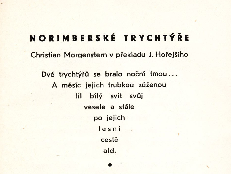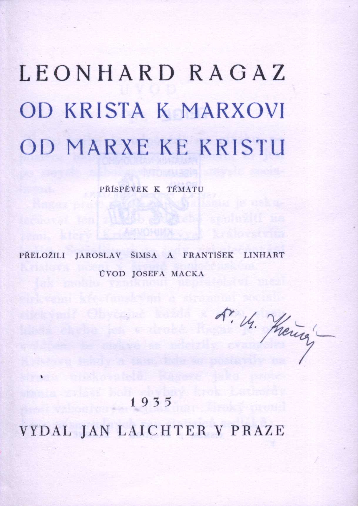 Názvové údaje Podmínky úspěšného života / Edvard Beneš Osobní jméno Beneš, Edvard, 1884-1948 (Autor) Další autoři Šimsa, Jaroslav, 1900-1945 (Autor doslovu, tiráže atd.) Korp. Pokrok (knihtiskárna, Opava) (Tiskař) Nakladatel V Praze : Vydavatelské oddělení YMCA, 1938 Výrobce Praha : Pokrok, 1938 Rozsah 13 stran Klíčová slova česká literatura * česká politika * československá politika * výchova * práce Počet ex. 1, z toho volných 1 Druh dok. monografie Signatura KaG III E2 11 Názvové údaje Od Krista k Marxovi, od Marxe ke Kristu / Lonhard Ragaz ; přeložili [z němčiny] Jaroslav Šimsa a František Linhart ; úvod Josefa Macka Osobní jméno Ragaz, Leonhard, 1868-1945 (Autor) Další autoři Šimsa, Jaroslav, 1900-1945 (Překladatel) Linhart, František, 1882-1959 (Překladatel) Macek, Josef, 1887-1972 (Autor úvodu atd.) Korp. Jan Laichter (nakladatelství) (Nakladatel, vydavatel) J. Šnajdr (firma) (Tiskař) Nakladatel V Praze : Jan Laichter, 1935 Výrobce tiskem J. Šnajdra) Rozsah 299 s. Osobní hesla Ragaz, Leonhard, 1868-1945 - švýcarský teolog Klíčová slova německy psaná literatura * světový názor * křesťanství * marxismus * filozofické úvahy Počet ex. 1, z toho volných 1 Druh dok. monografie Signatura Teige 015 Názvové údaje Úzkost a naděje : dopisy, sny, události, traktáty 1940-1945 / Jaroslav Šimsa ; k vydání připravili Milena a Jan Šimsovi ; obálku navrhla Hana Kolbe Osobní jméno Šimsa, Jaroslav, 1900-1945 (Autor) Další autoři Šimsová, Milena, 1932-2022 (Editor) Šimsa, Jan, 1929-2016 (Editor) (Autor úvodu atd.) Kolbe, Hana, 1975- (Autor obálky) Nakladatel Benešov : YMCA v ČR v nakladatelství EMAN, 2003 Výrobce Příbram : PBtisk Rozsah 255 stran, 16 nečíslovaných stran obrazových příloh : ilustrace, portréty, faksimile ; 21 cm Osobní hesla Šimsa, Jaroslav, 1900-1945 - filozof, mládežnický pracovník, překladatel Klíčová slova křesťanství * společnost * soukromá korespondence * političtí vězni * evangelíci * publicisté * koncentrační tábory * r. 1939-1945 * stol. 20. * komentované vydání * výbor Počet ex. 2, z toho volných 2 Druh dok. monografie Signatura C12b 6879, C12b 16867 Názvové údaje Veletucet her, hlavolamů a hádanek / sebral, vyzkoušel a sepsal Jaroslav Šimsa Osobní jméno Šimsa, Jaroslav, 1900-1945 (Sestavovatel, kompilátor) (Autor) Další autoři YMCA (vydavatelství) (Nakladatel, vydavatel) O. Lejsek (tiskárna) (Tiskař) Nakladatel Praha : YMCA, 1939 Výrobce Praha : O. Lejsek Rozsah 63 stran : nákresy ; 14 cm Klíčová slova česká literatura * zábava * Šimsa J. * dětské hry * hry * hádanky * hlavolamy * r. 1939 Počet ex. 1, z toho volných 1 Druh dok. monografie Signatura VZinková 0007 Názvové údaje Básně. I / Karel Toman Osobní jméno Toman, Karel, 1877-1946 (Autor) (Dedikátor) (Autor podpisu) Další autoři Šimsová, Růžena, 1899- (Dedikant) Brunner, Vratislav Hugo, 1886-1928 (Knižní grafik) Šimsa, Jaroslav, 1900-1945 (Autor podpisu) Korp. Fr. Borový (firma) (Nakladatel, vydavatel) Politika (tiskárna, nakladatelství) (Tiskař) Nakladatel V Praze : Nakladatel Fr. Borový, 1918 Výrobce V Praze : Politika Rozsah 117 stran ; 21 cm Klíčová slova česká literatura * poezie * česká poezie * Toman K. * r. 1918 Počet ex. 1, z toho volných 1 Adr. el. zdr. http://krameriusndk.nkp.cz/search/handle/uuid:61c5ea80-7878-11e9-ba7f-005056827e51 Druh dok. monografie Signatura AHO 0365 Názvové údaje Dostojevskij / Eduard Thurneysen Osobní jméno Thurneysen, Eduard, 1888-1974 (Autor) Další autoři Šimsa, Jaroslav, 1900-1945 (Překladatel) Teindl, Josef (Překladatel) Hromádka, Josef Lukl, 1889-1969 (Autor úvodu atd.) Müller, František Jan, 1896-1967 (Autor obálky) (Knižní grafik) Hořejší, Jindřich, 1886-1941 (Dedikant) Šimsa, Jaroslav, 1900-1945 (Dedikátor) Korp. YMCA (vydavatelství) (Nakladatel, vydavatel) Bohumil Kopřiva (Praha-Smíchov) (Tiskař) Nakladatel V Praze : YMCA, 1930 Výrobce V Praze : Bohumil Kopřiva Rozsah 105 stran ; 19 cm Osobní hesla Dostojevskij, Fedor Michajlovič, 1821-1881 - ruský spisovatel Klíčová slova ruská literatura * ruská literární věda * přednášky * teologové Počet ex. 2, z toho volných 2 Druh dok. monografie Signatura AHO 0542, AHO 0543 Názvové údaje Essaye o filosofii, náboženství a umění / George Santayana ; přeložil Jaroslav Šimsa Osobní jméno Santayana, George, 1863-1952 (Autor) Další autoři Šimsa, Jaroslav, 1900-1945 (Překladatel) Hořejší, Jindřich, 1886-1941 (Dedikátor) Korp. Jan Laichter (nakladatelství) (Nakladatel, vydavatel) J. Šnajdr (firma) (Tiskař) Nakladatel V Praze : Jan Laichter, 1932 Výrobce V Kladně : J. Šnajdr Rozsah 470 stran : ilustrace ; 16 cm Klíčová slova filozofie * filozofie a náboženství * filozofie umění * poezie * lidská přirozenost * materialismus * eseje * úvahy Počet ex. 1, z toho volných 1 Druh dok. monografie Signatura AHO 0562 Názvové údaje Kristus tvůrce míru mezi národy / Jaroslav Šimsa Osobní jméno Šimsa, Jaroslav, 1900-1945 (Autor) Další autoři YMCA (vydavatelství) (Nakladatel, vydavatel) Oldřich Lejsek (Praha, Česko) (Tiskař) Nakladatel V Praze : Svaz SČME - YMCA, 1936 Výrobce Praha : Oldřich Lejsek Rozsah 15 stran ; 17 cm Předmětová hesla křesťanství * křesťanství a politika * mírová politika Klíčová slova česká literatura * náboženství * křesťanství * politika * přednáška * Šimsa J. * r. 1936 Počet ex. 1, z toho volných 1 Druh dok. monografie Signatura AHO 0078 Názvové údaje Od Krista k Marxovi, od Marxe ke Kristu : příspěvek k tématu / Leonhard Ragaz ; přeložili [z němčiny] Jaroslav Šimsa a František Linhart ; úvod Josefa Macka Osobní jméno Ragaz, Leonhard, 1868-1945 (Autor) Další autoři Šimsa, Jaroslav, 1900-1945 (Překladatel) (Dedikátor) (Autor podpisu) Linhart, František, 1882-1959 (Přek