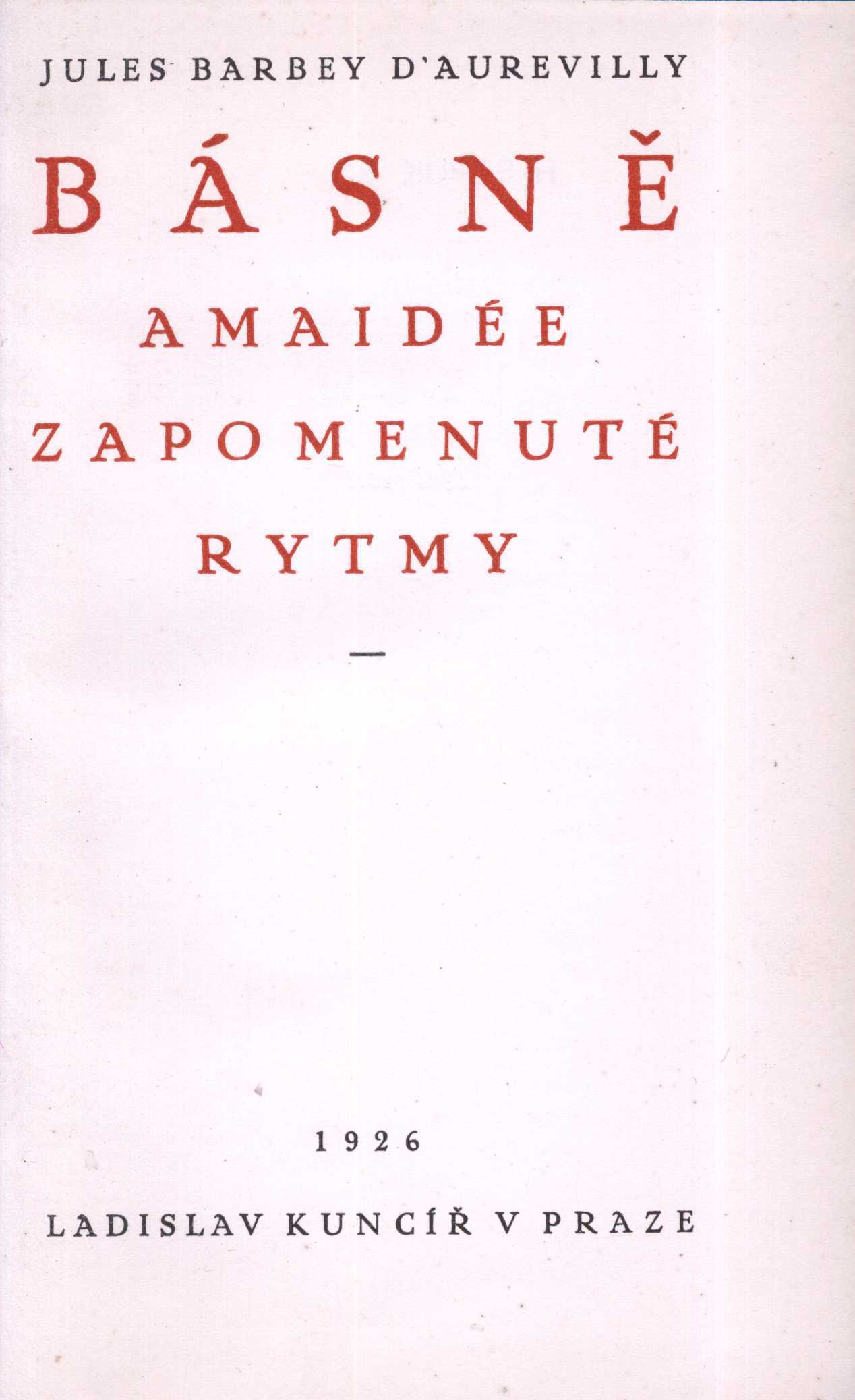 Názvové údaje Renaissance : neuen Studien zur Kritik der Moderne / von Hermann Bahr Osobní jméno Bahr, Hermann, 1863-1934 (Autor) Další autoři S. Fischer Verlag (nakladatelství) (Nakladatel, vydavatel) Nakladatel Berlin : S. Fischer, 1897 Rozsah 244 s. Osobní hesla Verlaine, Paul, 1844-1896 - francouzský básník * Villiers de L'Isle-Adam, Auguste de, 1838-1889 - francouzský spisovatel * Barbey d'Aurevilly, Jules Amédée, 1808-1889 - franc. básník, prozaik, kritik a novinář * Goncourt, Jules de, 1833-1870 - spisovatel, kritik, novinář * Goncourt, Edmond de, 1822-1896 - spisovatel, kritik, novinář * Mauclair, Camille, 1872-1945 - francouzský básník, prozaik, literární a výtvarný kritik * Maeterlinck, Maurice, 1862-1949 - belgický (vlámský) dramatik, básník a esejista Klíčová slova německá literatura * literární historie * moderní literatura * moderna * přelom 19. a 20. stol. * dekadence Počet ex. 1, z toho volných 1 Druh dok. monografie Signatura KaG XXVI D2 76 Názvové údaje Pensées et Maximes / H. de Balzac ; recueillies et classées par Barbey d'Aurevilly Osobní jméno Balzac, Honoré de, 1799-1850 (Autor) Další autoři Barbey d'Aurevilly, Jules Amédée, 1808-1889 (Autor úvodu atd.) Korp. Alphonse Lemerre, éditeur (Nakladatel, vydavatel) Emmanuel Grevin (Lagny-sur-Marne, Francie) (Tiskař) Nakladatel Paris : Alphonse Lemerre, 1909 Výrobce E. Grevin) Rozsah [6], 71, [5] s. Klíčová slova francouzská literatura * stol. 19., 1. pol. * myšlenky * aforismy * teze * maxima Počet ex. 1, z toho volných 1 Druh dok. monografie Signatura KaG XII B 14 Názvové údaje La Bague d'Annibal / J. Barbey D'Aurevilly Osobní jméno Barbey d'Aurevilly, Jules Amédée, 1808-1889 (Autor) Další autoři Rhombus Edition (Nakladatel, vydavatel) Nakladatel Paris ; Vienne : Bibliothèque Rhombus, 1922 Rozsah 163, [9] s. Klíčová slova francouzská literatura * francouzská próza * dekadence * přelom 19. a 20. stol. Počet ex. 1, z toho volných 1 Druh dok. monografie Signatura KaG XII D 2 Názvové údaje Básně ; Amaidée ; Zapomenuté rytmy / Jules Barbey d'Aurevilly ; [Básně přeložil Zdeněk Hobzík ; Amaidée, Zapomenuté rytmy přeložila St. Jílovská ; upravil V. H. Brunner ; vytiskl F. Obzina] Osobní jméno Barbey d'Aurevilly, Jules Amédée, 1808-1889 (Autor) Další autoři Jílovská, Staša, 1898-1955 (Překladatel) Hobzík, Zdeněk, 1900-1969 (Překladatel) (Dedikátor) Brunner, Vratislav Hugo, 1886-1928 (Grafický technik) Kuncíř, Ladislav, 1890-1974 (Nakladatel, vydavatel) Obzina, František, 1871-1927 (Tiskař) Korp. Nakladatelská společnost Rozmach (nakladatelství) (Nakladatel, vydavatel) Ladislav Kuncíř (nakladatelství a knihkupectví) (Nakladatel, vydavatel) František Obzina (tiskárna, nakladatelství) (Tiskař) Nakladatel Praha : Ladislav Kuncíř, 1926 Výrobce F. Obzina) Rozsah 116 s. ; 20 cm Klíčová slova francouzská literatura * symbolismus * přelom 19. a 20. stol. * dekadence * básně v próze * francouzská poezie * francouzská próza Počet ex. 1, z toho volných 1 Druh dok. monografie Signatura RSzpuk 0436 Názvové údaje Básně ; Amaidée ; Zapomenuté rytmy / Jules Barbey d'Aurevilly ; [Básně přeložil Zdeněk Hobzík ; Amaidée, Zapomenuté rytmy přeložila St. Jílovská ; upravil V. H. Brunner ; vytiskl F. Obzina] Osobní jméno Barbey d'Aurevilly, Jules Amédée, 1808-1889 (Autor) Další autoři Jílovská, Staša, 1898-1955 (Překladatel) Hobzík, Zdeněk, 1900-1969 (Překladatel) (Dedikátor) Brunner, Vratislav Hugo, 1886-1928 (Grafický technik) Kuncíř, Ladislav, 1890-1974 (Nakladatel, vydavatel) Obzina, František, 1871-1927 (Tiskař) Karásek ze Lvovic, Jiří, 1871-1951 (Dedikant) Korp. Nakladatelská společnost Rozmach (nakladatelství) (Nakladatel, vydavatel) Ladislav Kuncíř (nakladatelství a knihkupectví) (Nakladatel, vydavatel) František Obzina (tiskárna, nakladatelství) (Tiskař) Nakladatel Praha : Ladislav Kuncíř, 1926 Výrobce Ve Vyškově : F. Obzina, 1926 Rozsah 116 stran Klíčová slova francouzská literatura * symbolismus * přelom 19. a 20. stol. * dekadence * básně v próze * francouzská poezie * francouzská próza Počet ex. 3, z toho volných 3 Druh dok. monografie Signatura Holan 20, KaG XV B2 119, VHB 2039 Názvové údaje Co neumírá : román / Jules Barbey d'Aurevilly Osobní jméno Barbey d'Aurevilly, Jules Amédée, 1808-1889 (Autor) Další autoři Holan, Vladimír, 1905-1980 (Autor podpisu) Nakladatel Praha : Družstvo přátel studia, 1924 Rozsah 264 s. ; 20 cm Osobní hesla Holan, Vladimír, 1905-1980 - básník, prozaik, překladatel Klíčová slova česká literatura Počet ex. 1, z toho volných 1 Druh dok. monografie Signatura Holan 21 Názvové údaje Ďábelské / Jules Barbey d'Aurevilly ; přeložil Boh. Rovenský Osobní jméno Barbey d'Aurevilly, Jules Amédée, 1808-1889 (Autor) Další autoři Rovenský, Bohuslav, 1891-1965 (Překladatel) Korp. Nakladatelství B. Janda - Sfinx (Nakladatel, vydavatel) Nakladatel Praha : Sfinx, [1920] Rozsah 192 stran ; 17 cm Klíčová slova francouzská literatura * překlady * povídky * erotické příběhy Počet ex. 1, z toho volných 1 Druh dok. monografie Signatura Knytl 74 Názvové údaje Ďábelské : úplné vydání s dvěma dosud nevydanými povídkami / Jules Barbey d'Aurevilly ; Přeložil Josef R. Marek Osobní jméno Barbey d'Aurevilly, Jules Amédée, 1808-1889 (Autor) Další autoři Marek, Josef Richard, 1883-1951 (Překladatel) Jílovská, Staša, 1898-1955 (Nakladatel, vydavatel) Nakladatel V Praze : St. Jílovská, 1920 Výrobce Vytiskla Grafia Rozsah 303 stran ; 21,5 cm Klíčová slova francouzská literatura * próza * povídky * stol. 19., 2. pol. Počet ex. 2, z toho volných 2 Druh dok. monografie Signatura C12b 406, P 25 H 55 Názvové údaje Les Diaboliques / J. Barbey d'Aurevilly ; illustrations d'après les aquarelles de M. Marodon Osobní jméno Barbey d'Au