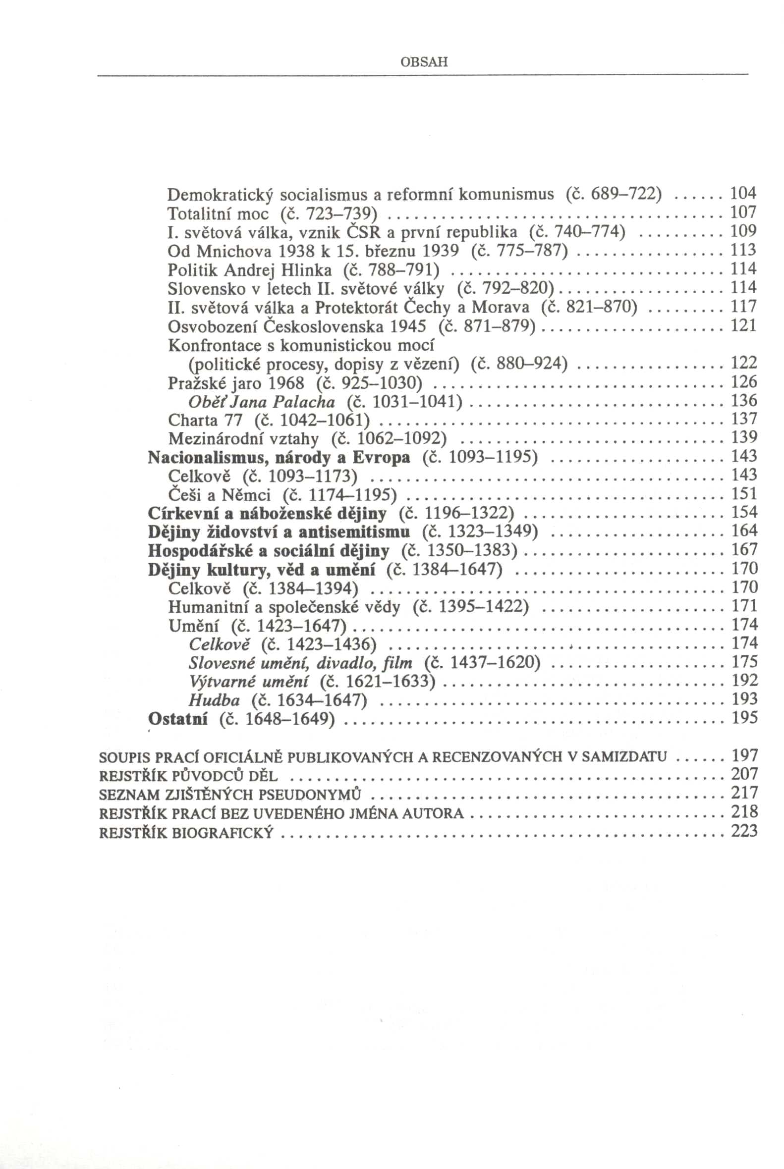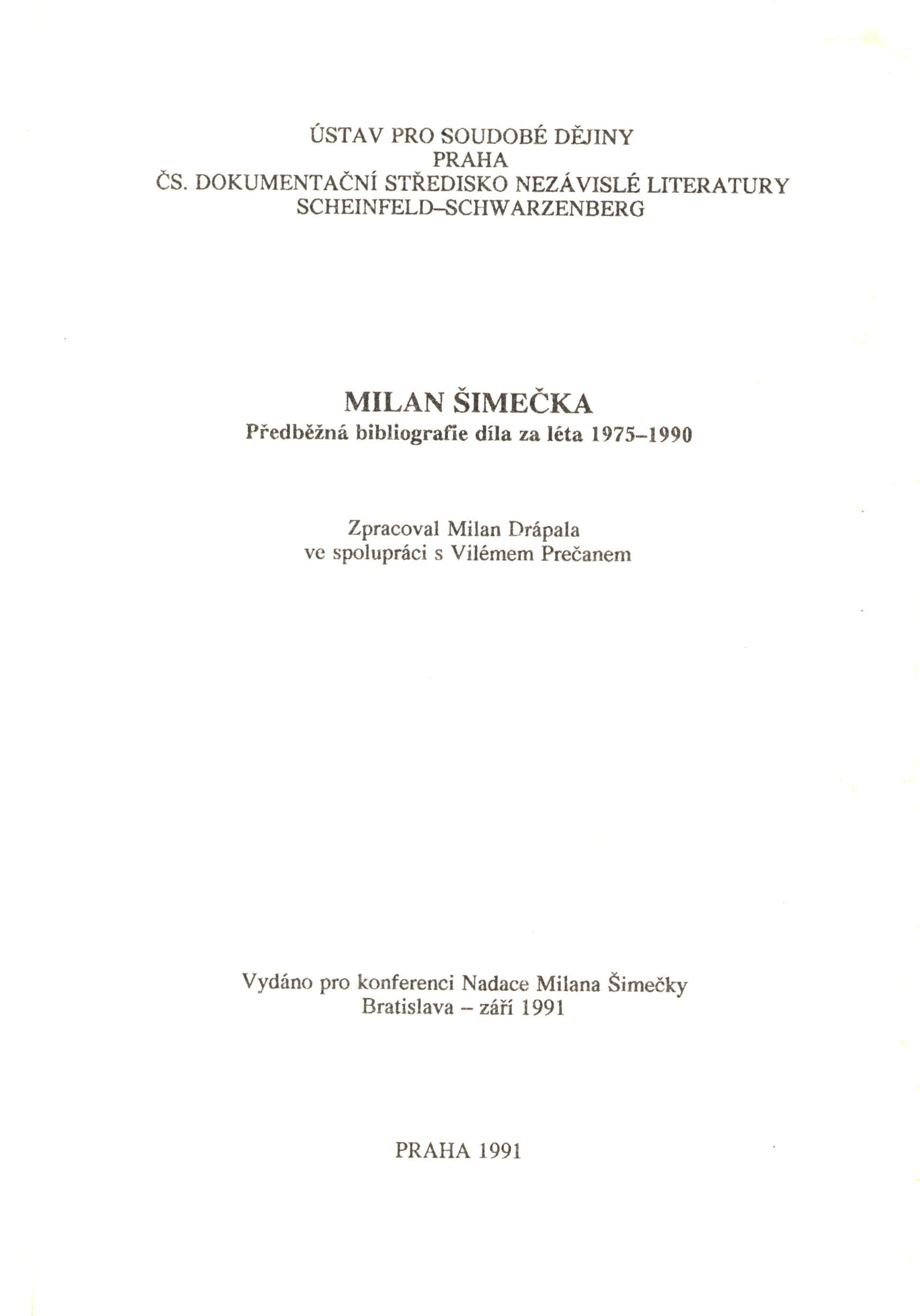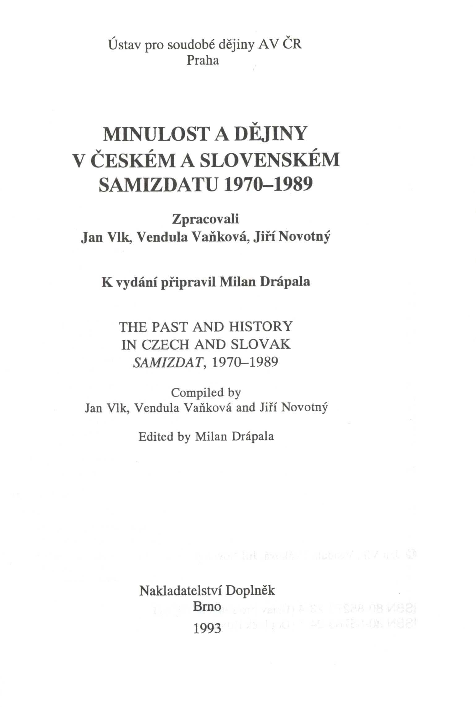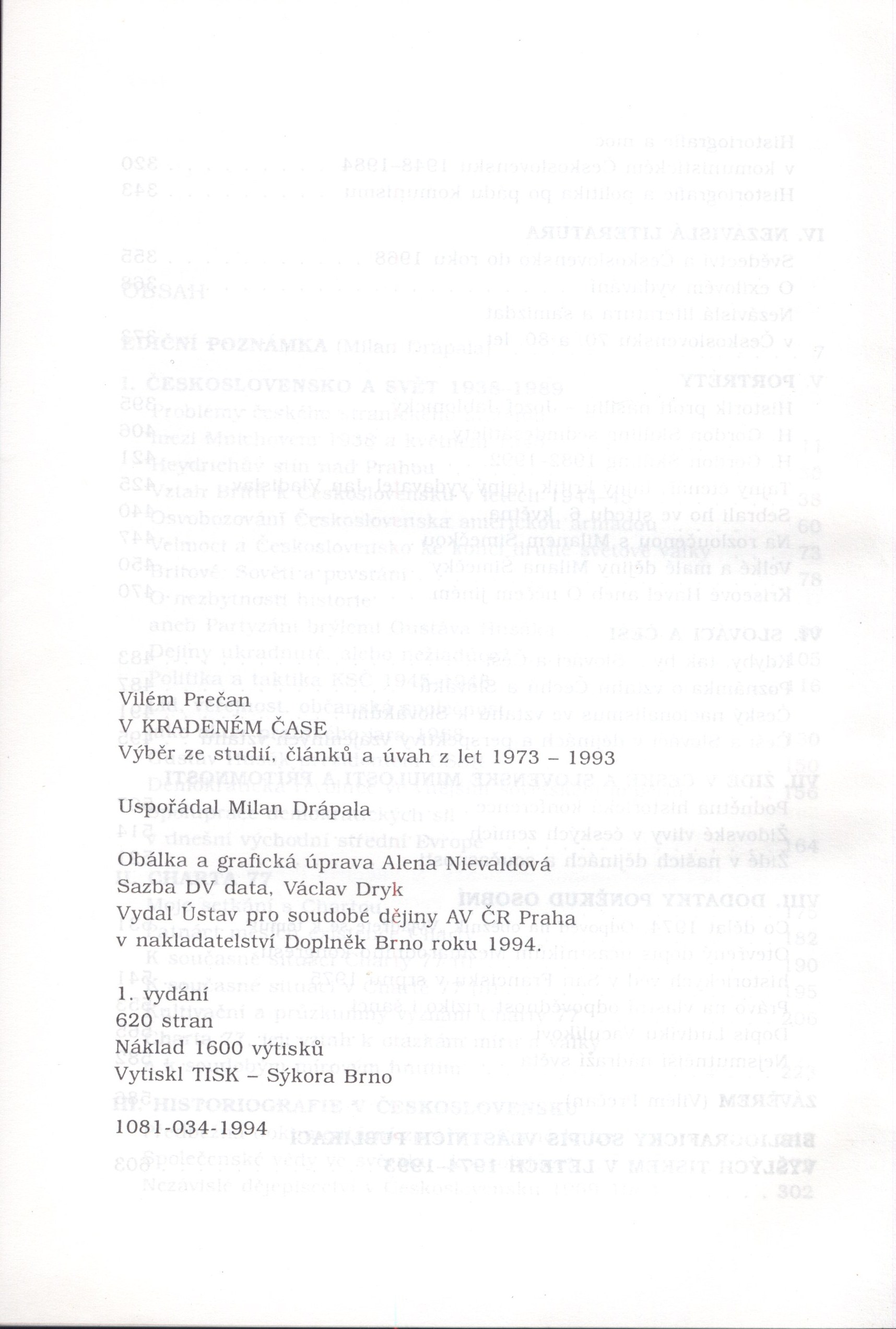 Názvové údaje Milan Šimečka : bibliografie díla za léta 1975-1990 / Milan Drápala Osobní jméno Drápala, Milan, 1964- (Autor) Další autoři Ústav pro soudobé dějiny Československá akademie věd (vědecký ústav) (Nakladatel, vydavatel) Nakladatel Praha : Ústav pro soudobé dějiny ČSAV, 1992 Rozsah 48 s Osobní hesla Šimečka, Milan, 1930-1990 - filozof, esejista, publicista Klíčová slova samizdatová literatura * exilová literatura * bibliografie Počet ex. 2, z toho volných 2 Druh dok. monografie Signatura M 214 c 21, M 214 c 21/a Názvové údaje Na ztracené vartě západu : Antologie české nesocialistické publicistiky z let 1945-1948 / Milan Drápala ; Knihu edičně připr., úvod. studii a životopis. medailony napsal a bibliogr. přehledy ses. Milan Drápala ; Životopisný medailon L. Jehličky napsal Andrej Stankovič, B. Chudoby Zdeněk Beneš a Milan Drápala, B. Brouka Vladimír Borecký ; Slovensky publ. články přel. Emil Charous ; Přebal, vazbu a graf. úpr. navrhl Aleš Lederer Osobní jméno Drápala, Milan, 1964- (Autor) Další autoři Drápala, Milan, 1964- (Editor) Drápala, Milan, 1964- (Autor úvodu atd.) Stankovič, Andrej, 1940-2001 (Autor úvodu atd.) Beneš, Zdeněk, 1952- (Autor úvodu atd.) Drápala, Milan, 1964- (Autor úvodu atd.) Borecký, Vladimír, 1941-2009 (Autor úvodu atd.) Charous, Emil, 1928-2017 (Překladatel) Lederer, Aleš, 1953- (Grafický technik) Nakladatel Praha : Prostor, 2000 Rozsah 673 s. : fot Klíčová slova česká literatura * nesocialistická publicistika * články * antologie * r. 1945-1948 * Brouk B. * Forman L. * Chudoba B. * Jehlička L. * Kolár J. * Koželuhová H. * Skácel M. * Tigrid P. Počet ex. 1, z toho volných 1 Druh dok. monografie Signatura C12c 1302 Názvové údaje V kradeném čase : výběr ze studií, článků a úvah z let 1973 - 1993 / Vilém Prečan ; [uspoř. Milan Drápala ; obálka a graf. úprava Alena Nievaldová] Osobní jméno Prečan, Vilém, 1933- (Autor) Další autoři Drápala, Milan, 1964- (Sestavovatel, kompilátor) Nievaldová, Alena, 1949- (Grafický technik) Korp. Ústav pro soudobé dějiny AV ČR (vědecký ústav) (Organizátor akce) Nakladatel Praha : Ústav pro soudobé dějiny ČR, 1994 Výrobce Tisk - Sýkora) Rozsah 615 s. ; 22 cm Osobní hesla Prečan, Vilém, 1933- - historik Klíčová slova Československo * dějiny * československá historiografie Počet ex. 1, z toho volných 1 Druh dok. monografie Signatura M 219 b 45 Názvové údaje V kradeném čase : výběr ze studií, článků a úvah z let 1973-1993 / Vilém Prečan ; uspořádal Milan Drápala ; obálka a grafická úprava Alena Nievaldová] Osobní jméno Prečan, Vilém, 1933- (Autor) (Autor úvodu atd.) (Autor doslovu, tiráže atd.) (Autor podpisu) (Dedikátor) Další autoři Drápala, Milan, 1964- (Sestavovatel, kompilátor) (Editor) (Autor úvodu atd.) Nievaldová, Alena, 1949- (Výtvarník vazby) (Knižní grafik) Blekastad, Milada, 1917-2003 (Dedikant) Korp. Ústav pro soudobé dějiny AV ČR (vědecký ústav) (Nakladatel, vydavatel) Doplněk (nakladatelství) (Nakladatel, vydavatel) Tisk - Sýkora Brno (tiskárna) (Tiskař) Nakladatel Praha : vydal Ústav pro soudobé dějiny AV ČR ; Brno : v nakladatelství Doplněk, 1994 Výrobce Tisk - Sýkora) Rozsah 615 s. ; 23 cm Osobní hesla Prečan, Vilém, 1933- - historik Předmětová hesla osobnosti Klíčová slova česká literatura * Prečan V. * texty * emigrace * studie * články * výbor prací * r. 1973-1993 Počet ex. 1, z toho volných 1 Druh dok. monografie Signatura Topič 0757 Názvové údaje Přijetí podmínek / Zdeněk Vašíček ; Jmenný rejstř. sest. Milan Drápala ; Graf. upr. Vladimír Nárožník Osobní jméno Vašíček, Zdeněk, 1933-2011 (Autor) Další autoři Drápala, Milan, 1964- (Bibliografický předchůdce) Nárožník, Vladimír, 1939-2002 (Grafický technik) Nakladatel Praha : Torst, 1996 Rozsah 262 s. Klíčová slova česká literatura * studie * vnitřní politika * mezinárodní politika * politické osobnosti * stol. 20. Počet ex. 1, z toho volných 1 Druh dok. monografie Signatura C12b 1325 Názvové údaje Přijetí podmínek : Vybrané statě z let 1982-1996 / Zdeněk Vašíček ; Jmen. rejstř. sest. Milan Drápala ; Graf. upr. Vladimír Nárožník ; [Doslov Miroslav Petříček jr.] Osobní jméno Vašíček, Zdeněk, 1933-2011 (Autor) Další autoři Drápala, Milan, 1964- (Autor úvodu atd.) Nárožník, Vladimír, 1939-2002 (Grafický technik) Petříček, Miroslav, 1925-1996 (Autor úvodu atd.) Nakladatel Praha : Torst, 1996 Rozsah 261 s. Osobní hesla Vašíček, Zdeněk, 1933-2011 - historik a filozof, archivář, překladatel Klíčová slova česká literatura * próza * stati * studie * výbor * r. 1982-1996 Počet ex. 1, z toho volných 1 Druh dok. monografie Signatura C12b 2143 Názvové údaje Minulost a dějiny v českém a slovenském samizdatu 1970-1989 = The past and history in Czech and Slovak samizdat, 1970 - 1989 : Bibliografie / zpracovali Jan Vlk, Vendula Vaňková, Jiří Novotný ; k vydání připravil Milan Drápala Osobní jméno Vlk, Jan, 1960- (Sestavovatel, kompilátor) (Autor úvodu atd.) Další autoři Vaňková, Vendula (Sestavovatel, kompilátor) Novotný, Jiří (Sestavovatel, kompilátor) Drápala, Milan, 1964- (Editor) (Autor úvodu atd.) Korp. Ústav pro soudobé dějiny AV ČR (vědecký ústav) (Nakladatel, vydavatel) Doplněk (nakladatelství) (Nakladatel, vydavatel) Tisk - Sýkora Brno (tiskárna) (Tiskař) Nakladatel Brno : Nakladatelství Doplněk, 1993 Výrobce [Brno] : TISK-Sýkora Rozsah 227 stran ; 21 cm Klíčová slova česká literatura * slovenská literatura * samizdatová literatura * bibliografie * historická tematika * společenská tematika * politická tematika * r. 1970-1989 Počet ex. 2, z toho volných 2 Druh dok. monografie Signatura PS, Kantůrková 0302 Názvové údaje Česká architektonická avantgarda / Otaka