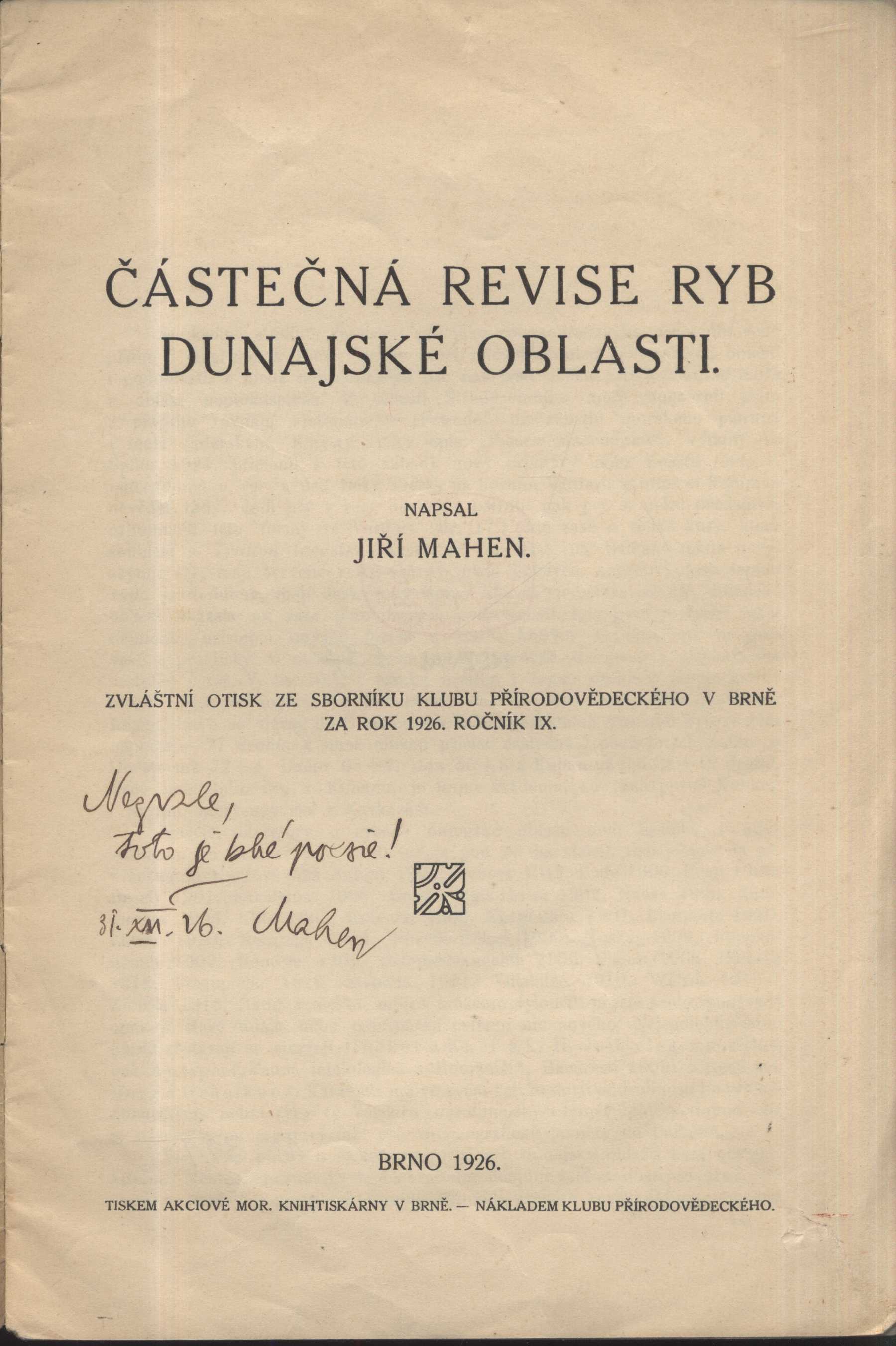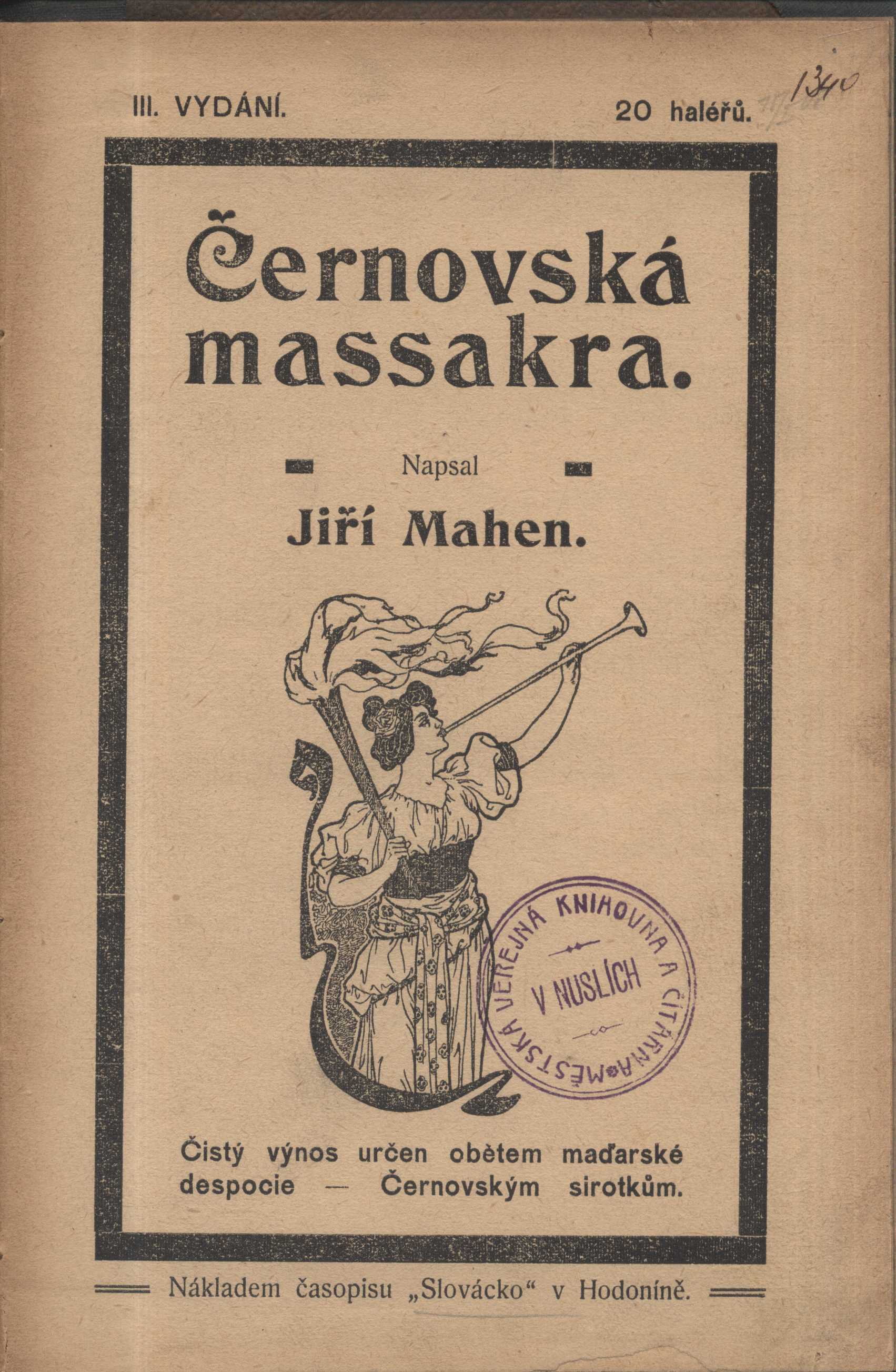 Názvové údaje Jiří Mahen : nárys ideový a esthetický / Artuš Drtil Osobní jméno Drtil, Artuš, 1885-1910 (Autor) Další autoři Nakladatelství Přemysla Plačka (Nakladatel, vydavatel) Antonín Reis (nakladatelství) (Tiskař) Nakladatel Královské Vinohrady : Plaček : Antonín Reis, 1910 Rozsah 26 s. ; 8° Osobní hesla Mahen, Jiří, 1882-1939 - básník, novinář, dramaturg, knihovník, režisér a divadelní kritik Klíčová slova česká literatura * čeští spisovatelé * Mahen J. * monografie Počet ex. 1, z toho volných 1 Druh dok. monografie Signatura M 69 g 204 Názvové údaje Jiří Mahen : nárys ideový a esthetický / Artuš Drtil Osobní jméno Drtil, Artuš, 1885-1910 (Autor) Další autoři Nakladatelství Přemysla Plačka (Nakladatel, vydavatel) Antonín Reis (nakladatelství) (Tiskař) Nakladatel Královské Vinohrady : Přemysl Plaček, 1910 Výrobce (Antonín Reis) Rozsah 26 s. ; 8° Osobní hesla Mahen, Jiří, 1882-1939 - básník, novinář, dramaturg, knihovník, režisér a divadelní kritik Klíčová slova česká literatura * čeští spisovatelé * Mahen J. * monografie Počet ex. 1, z toho volných 1 Druh dok. monografie Signatura M 101 h 72 Názvové údaje Balady / básně Jiřího Mahena ; [předmluvu napsal Karel Titz ; původní litografie nakreslil Eduard Milén, který též knihu graficky upravil ; vysázel ji typy Baskerville antikva J. Grepl] Osobní jméno Mahen, Jiří, 1882-1939 (Autor) Další autoři Milén, Eduard, 1891-1976 (Ilustrátor) (Knižní grafik) Titz, Karel, 1880-1940 (Autor úvodu atd.) Grepl, Jindřich, 1907-2000 (Sazeč) Korp. Moravská Unie (Brno) (Tiskař) (Tiskař obrazu) Skupina výtvarných umělců v Brně (Nakladatel, vydavatel) Nakladatel Brno : Skupina výtvarných umělců v Brně, 1929 Výrobce (Moravská unie) Rozsah 65 s. : il. Klíčová slova česká poezie * básně * balady * bibliofilie Počet ex. 1, z toho volných 1 Druh dok. monografie Signatura Bbf VI 0065 Názvové údaje Ballady / Jiří Mahen Osobní jméno Mahen, Jiří, 1882-1939 (Autor) Další autoři A. Píša (nakladatelství) (Nakladatel, vydavatel) E. Leschinger (knihtiskař, nakladatel) (Tiskař) Nakladatel V Brně : A. Píša, [1908] Výrobce Tiskem Edvarda Leschingra, Rozsah 47 s. ; 18 cm Klíčová slova česká poezie * básně Počet ex. 2, z toho volných 2 Druh dok. monografie Signatura Holan 845, VMartínek 0517 Názvové údaje Co mi liška vyprávěla / Jiří Mahen ; Ilustr. Stanislav Hájek ; Graf. úprava František Ber Osobní jméno Mahen, Jiří, 1882-1939 (Autor) Další autoři Hájek, Stanislav, 1958- (Ilustrátor) Ber, František (Grafický technik) Nakladatel [České Budějovice] : Jih, [1993] Výrobce Tiskárny Vimperk) Rozsah 89 s. : barev. il. ; 28 cm Klíčová slova české pohádky * literatura pro děti Počet ex. 1, z toho volných 1 Druh dok. monografie Signatura M 220 a 28 Názvové údaje Co mi liška vyprávěla / Jiří Mahen ; S ilustr. Josefa Lady ; Graf. upr. Rostislav Vaněk Osobní jméno Mahen, Jiří, 1882-1939 (Autor) Další autoři Lada, Josef, 1887-1957 (Ilustrátor) Vaněk, Rostislav, 1945- (Grafický technik) Nakladatel Praha : Československý spisovatel, 1984 Rozsah 211 s., il. : il Klíčová slova česká literatura * próza * pohádky * literatura pro děti Počet ex. 2, z toho volných 2 Druh dok. monografie Signatura AČS 02191, AČS 02191a Názvové údaje Co mi liška vyprávěla / Jiří Mahen ; S obázky Josefa Lady ; Typogr. Rostislav Vaněk Osobní jméno Mahen, Jiří, 1882-1939 (Autor) Další autoři Lada, Josef, 1887-1957 (Ilustrátor) Vaněk, Rostislav, 1945- (Grafický technik) Nakladatel Praha : Československý spisovatel, 1974 Rozsah 211 s. : il Klíčová slova česká literatura * próza * pohádky * literatura pro děti Počet ex. 2, z toho volných 2 Druh dok. monografie Signatura AČS 01255, AČS 01255a Názvové údaje Částečná revise ryb dunajské oblasti / napsal Jiří Mahen Osobní jméno Mahen, Jiří, 1882-1939 (Autor) Další autoři Nezval, Vítězslav, 1900-1958 (Dedikant) (Dřívější majitel) Korp. Akciová moravská knihtiskárna (Brno) (Tiskař) Nakladatel Brno : Nákladem Klubu přírodovědeckého, 1926 Výrobce V Brně : Tiskem Akciové mor. knihtiskárny, 1926 Rozsah 16 stran Klíčová slova česká literatura * příroda * Slovensko * ryby * Dunaj * přírodověda Počet ex. 1, z toho volných 1 Druh dok. monografie Signatura Nezval 0537 Názvové údaje Černovská massakra / napsal Jiří Mahen Osobní jméno Mahen, Jiří, 1882-1939 (Autor) Další autoři Slovácká knihtiskárna Karla Novotného (Tiskař) Nakladatel V Hodoníně : Nákladem časopisu Slovácko, [19--] Výrobce Uh. Hradiště : Karel Novotný, [19--] Rozsah 14 stran Klíčová slova česká literatura * Slovensko * česká poezie Počet ex. 1, z toho volných 1 Druh dok. monografie Signatura P 48 B 22 Názvové údaje Dezertér : hra o 4 jednáních / Jiří Mahen Osobní jméno Mahen, Jiří, 1882-1939 (Autor) Další autoři B. Kočí (nakladatelství a knihkupectví) (Nakladatel, vydavatel) Knihtiskárna Jos. B. Zápotočný (v Rokycanech) (Tiskař) Nakladatel V Praze : B. Kočí, 1923 Výrobce Knihtiskárna Jos. B. Zápotočný) Rozsah 109 s. Klíčová slova česká dramata * divadelní hry Počet ex. 1, z toho volných 1 Druh dok. monografie Signatura VMartínek 0900/přív. 1.