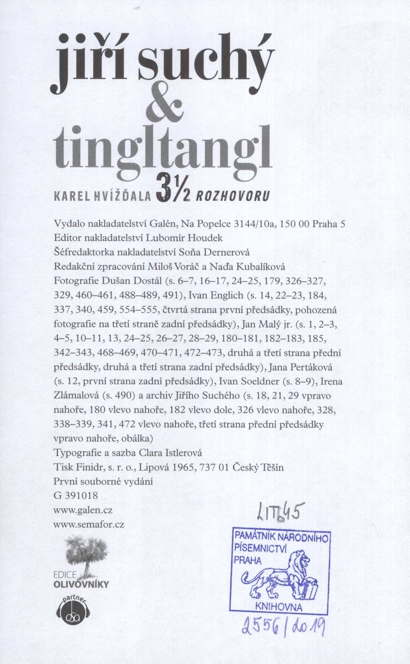 Názvové údaje Jiřímu Suchému : sborník studií, vzpomínek a blahopřání k jubileu Jiřího Suchého / Andrle, Datel, Dostál ...[et al.] ; [sborník sestavili David Hrbek a Michal Sýkora ; ilustrace Jiří Suchý, Albín Brunovský ; obálka, grafická úprava a ex libris Jana Krejčová ; fotografie Evžen Opatrný, Ľubo Stacho] Osobní jméno Anderle, Jiří, 1936- (Autor) Další autoři Novotný, Jiří Datel, 1944-2017 (Autor) Dostál, Pavel, 1943-2005 (Autor) Hrbek, David, 1968- (Sestavovatel, kompilátor) Sýkora, Michal, 1971- (Sestavovatel, kompilátor) Suchý, Jiří, 1931 říjen 1.- (Ilustrátor) Brunovský, Albín, 1935-1997 (Ilustrátor) Krejčová, Jana, 1946- (Ilustrátor) (Grafický technik) Opatrný, Evžen, 1935-2008 (Fotograf) Stacho, Ľubo, 1953- (Fotograf) Korp. M.U.K.L. (nakladatelství) (Nakladatel, vydavatel) Nakladatel Olomouc : M.U.K.L., 1991 Rozsah 62 s. : il. Osobní hesla Suchý, Jiří, 1931 říjen 1.- - textař, zpěvák, autor pásem a her, divadelník, básník, spisovatel, skladatel, výtvarník a grafik Klíčová slova česká literatura * vzpomínky * gratulace * blahopřání * Suchý J. * Andrle J. * Datel Novotný J. * Dostál P. * Fiala J. * Havlík F. * Holub M. * Horníček M. * Hrbek D. * Komárek V. * Konečný P. * Menzel J. * Molavcová J. * Ondráček J. st. * Ondráček J. ml. * Opatrný E. * Petrů E. * Pogoda R. * Rut P. * Suchánek V. * Svěrák Z. * Svitáček V. * Sýkora M. * Škvorecký J. * Štepka S. * Štěrbová A. * Vodňanský J. * Žlebek J. Počet ex. 1, z toho volných 1 Druh dok. monografie Signatura C12d 384 Názvové údaje Jak se chodí za holkama : po letech / Václav Bárta ; s výtvarným doprovodem Oty Janečka ; předmluva Jiří Suchý a Václav Bárta Osobní jméno Bárta, Václav, 1937- (Autor) (Autor úvodu atd.) Další autoři Janeček, Ota, 1919-1996 (Ilustrátor) Suchý, Jiří, 1931 říjen 1.- (Autor úvodu atd.) Korp. Nibiru (Nakladatel, vydavatel) PBtisk (tiskárna) (Tiskař) Nakladatel Praha : Nibiru, 2017 Výrobce Příbram : PBtisk Rozsah 59 stran : ilustrace ; 18 cm Klíčová slova česká poezie * básně Počet ex. 1, z toho volných 1 Druh dok. monografie Signatura C12a 5980 Názvové údaje Vy si mne s někým pletete..., aneb, Z besed na filosofické fakultě : Jan Werich, Hugo Haas, Zdeněk Štěpánek, Jiří Suchý, Ivan Vyskočil / přepsal a komentoval Josef Herman Osobní jméno Herman, Josef, 1955- (Autor) (Autor úvodu atd.) (Sestavovatel, kompilátor) (Autor komentáře) Další autoři Černý, František, 1926-2010 (Autor doslovu, tiráže atd.) Stejskal, Martin, 1944- (Knižní grafik) Korp. Divadelní ústav (Praha, Česko) (Nakladatel, vydavatel) Nakladatel V Praze : Divadelní ústav, 1994 Rozsah 167 stran : ilustrace, fotografie, portréty ; 15 cm Osobní hesla Haas, Hugo, 1901-1968 - herec a režisér * Suchý, Jiří, 1931 říjen 1.- - textař, zpěvák, autor pásem a her, divadelník, básník, spisovatel, skladatel, výtvarník a grafik * Vyskočil, Ivan, 1929-2023 - herec, dramatik, prozaik, VŠ pedagog * Werich, Jan, 1905-1980 - filmový a divadelní herec, dramatik a filmový scenárista, spisovatel * Štěpánek, Zdeněk, 1896-1968 - herec, prozaik Předmětová hesla herci - Česko * čeští herci Klíčová slova česká literatura * besedy * filozofická fakulta, UK Praha * divadlo * české osobnosti * výbor * dobové fotografie * Werich J. * Haas H. * Štěpánek Z. * Suchý J. * Vyskočil I. * stol. 20., 2. pol. Počet ex. 1, z toho volných 1 Druh dok. monografie Signatura VZinková 0017