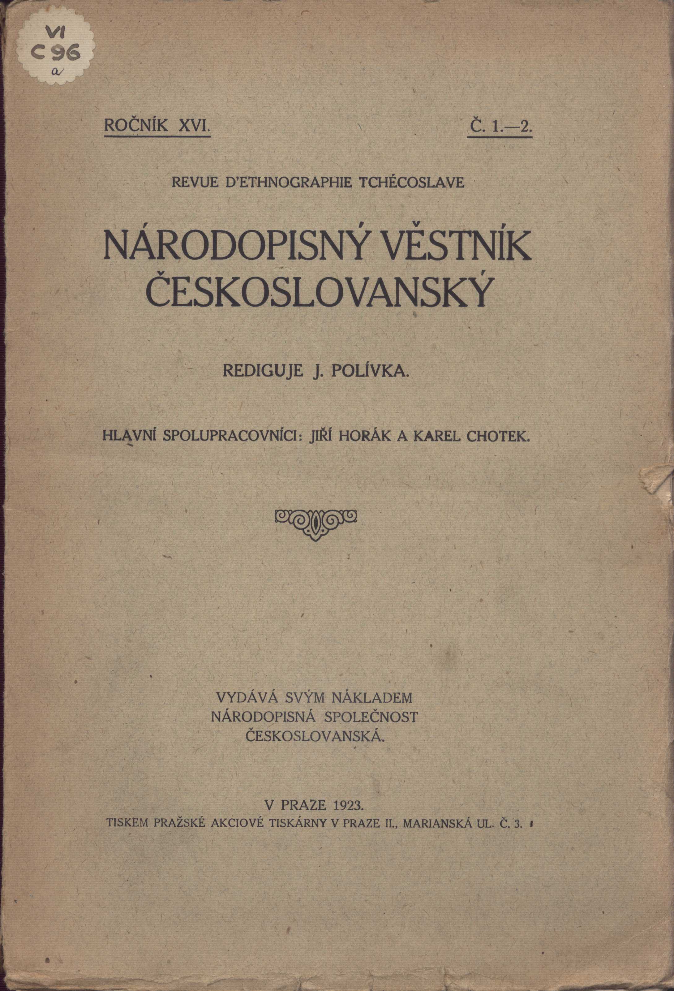 Názvové údaje Krásné město : časopis přátel Kutné Hory Roč., číslo Číslo 3, 2021 Nakladatel Kutná Hora : Město Kutná Hora, 2021 GRAFIA GRYČ Rozsah 23 stran : fotografie, portréty, faksimile ; 30 cm Osobní hesla Havlíček Borovský, Karel, 1821-1856 - básník, novinář a politik * Havlíček, Josef, 1830-1889 - hraběcí sekretář, úředník, bratr Karla Havlíčka Borovského Klíčová slova Kutná Hora * čeští básníci * významná výročí * výročí narození * pomníky * r. 2021 * regionální periodika Nadřízená jednotka Krásné město Počet ex. 1, z toho volných 1 Druh dok. PERIODIKA - Přijatá čísla Signatura Ac 0261 Názvové údaje Národopisný věstník českoslovanský = Revue d'ethnographie tchécoslave Další autoři Polívka, Jiří, 1858-1933 (Redaktor, výkonný redaktor) Horák, Jiří, 1884-1975 (Editor) Chotek, Karel, 1881-1967 (Editor) Korp. Národopisná společnost českoslovanská (Praha) (Nakladatel, vydavatel) Roč., číslo Ročník 16, 1923, číslo 1-4 Nakladatel Praha : Národopisná společnost českoslovanská, 1923 Výrobce Tiskem Pražské akciové tiskárny Rozsah 194 stran ; 25 cm Osobní hesla Havlíček Borovský, Karel, 1821-1856 - básník, spisovatel, novinář a politik * Dobrovský, Josef, 1753-1829 - katolický kněz, filolog, politický, kulturní, literární a církevní historik, slavista Klíčová slova vlastivěda * národopis * etnografie * věstník Nadřízená jednotka Národopisný věstník českoslovanský Počet ex. 1, z toho volných 1 Druh dok. PERIODIKA - Přijatá čísla Signatura KaG VI C 96a Názvové údaje Slovo a smysl : časopis pro mezioborová bohemistická studia = Word & Sense : a Journal of Interdisciplinary Theory and Criticism in Czech Studies Další autoři Šebek, Josef, 1980- (Redaktor, výkonný redaktor) Korp. Univerzita Karlova. Filozofická fakulta (Nakladatel, vydavatel) Tiskárna nakladatelství Karolinum (Tiskař) Lacerta (grafické studio) (Knižní grafik) (Sazeč) Roč., číslo Ročník 16, číslo 31, 2019 Nakladatel V Praze : Univerzita Karlova, Filozofická fakulta, [2019] Výrobce Tiskárna Nakladatelství Karolinum Copyright ©2019 Rozsah 274 stran : faksimile ; 24 cm Osobní hesla Mallarmé, Stéphane, 1842-1898 - francouzský básník a esejista * Havlíček Borovský, Karel, 1821-1856 - básník, spisovatel, novinář a politik * Saudek, Emil, 1876-1941 - úředník, advokát, překladatel, monografie o O. Březinovi * Březina, Otokar, 1868-1929 - učitel, básník, esejista, prozaik a myslitel * Machar, Josef Svatopluk, 1864-1942 - básník, prozaik, satirik, publicista a politik * Drtikol, František, 1883-1961 - fotograf * Blažíčková, Anna, 1933- - filoložka, básnířka Klíčová slova česká literatura * literární věda * bohemistika * spisovatelé * korespondence * r. 2019 * odborný časopis Nadřízená jednotka Slovo a smysl Počet ex. 1, z toho volných 1 Druh dok. PERIODIKA - Přijatá čísla Signatura Ad 0373