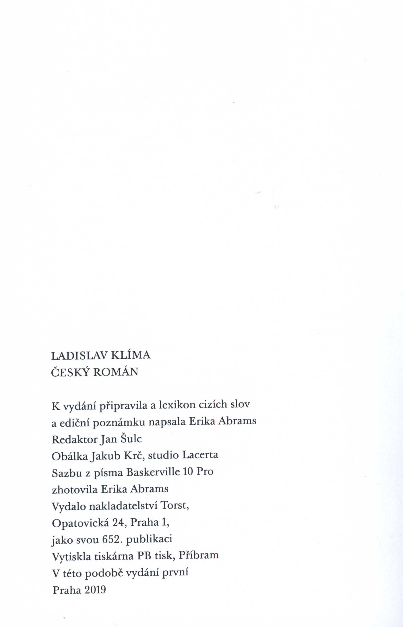 Názvové údaje Pénultième / Vladimír Holan ; choix et traduction du thèque [do franc.] par Erika Abrams ; présentation par André Velter Osobní jméno Holan, Vladimír, 1905-1980 (Autor) Další autoři Velter, André, 1945- (Autor úvodu atd.) Abrams, Erika, 1952- (Překladatel) Nakladatel Paris : La Différence, 1990 Rozsah 126 s. ; 16 cm Klíčová slova česká poezie * výbor básní * překlady básní * stol. 20., léta 60.-70. Počet ex. 1, z toho volných 1 Druh dok. monografie Signatura Holan 02700 Názvové údaje Dieu le ver : correspondance, 1905-1928 / [Ladislav Klíma] ; texte établi traduit du Tchèque et de l' allemand annoté et présenté par Erika Abrams Osobní jméno Klíma, Ladislav, 1878-1928 (Autor) Další autoři Abrams, Erika, 1952- (Překladatel) (Autor komentáře textu) (Editor) Korp. Éditions de la Différence (Nakladatel, vydavatel) Présence Graphique Imprimerie (tiskárna) (Tiskař) Nakladatel Paris : Éditions de la Différence, 2005 Výrobce Monts : Présence Graphique Rozsah 789 stran ; 23 cm Osobní hesla Klíma, Ladislav, 1878-1928 - filosof, prozaik, básník a dramaturg Klíčová slova čeští filozofové * Česko * Francie * Klíma L. * korespondence * r. 1905-1928 * komentované vydání * sebrané spisy Počet ex. 2, z toho volných 2 Druh dok. monografie Signatura C12c 2024, JVladislav 875 Názvové údaje Le Roman tchèque / Ladislav Klíma ; traduit du tchèque par Erika Abrams ; avec 22 dessins de Vadim Korniloff Osobní jméno Klíma, Ladislav, 1878-1928 (Autor) Další autoři Abrams, Erika, 1952- (Překladatel) Korniloff, Vadim, 1972- (Ilustrátor) Nakladatel Paris : Éditions du Canoë, 2019 Rozsah 459 stran : ilustrace ; 19 cm Klíčová slova česká literatura * překlady * francouzština * stol. 21. Počet ex. 1, z toho volných 1 Druh dok. monografie Signatura LITb 00133 Názvové údaje Oeuvres complètes de Ladislav Klíma. 3, Le Monde etc-- : philosophica journalistica, 1904-928 / texte établi, traduit du tchèque annoté et présenté par Erika Abrams Osobní jméno Klíma, Ladislav, 1878-1928 (Autor) Další autoři Abrams, Erika, 1952- (Překladatel) (Editor) (Dedikátor) Nakladatel Paris : Différence, c2010 Rozsah 831 s. Osobní hesla Klíma, Ladislav, 1878-1928 - filosof, prozaik, básník a dramaturg Klíčová slova filozofové * Česko * stol. 19.-20. * filozofické studie * časopisecké články * r. 1904-1928 * komentované vydání Počet ex. 1, z toho volných 1 Druh dok. monografie Signatura C12c 3195