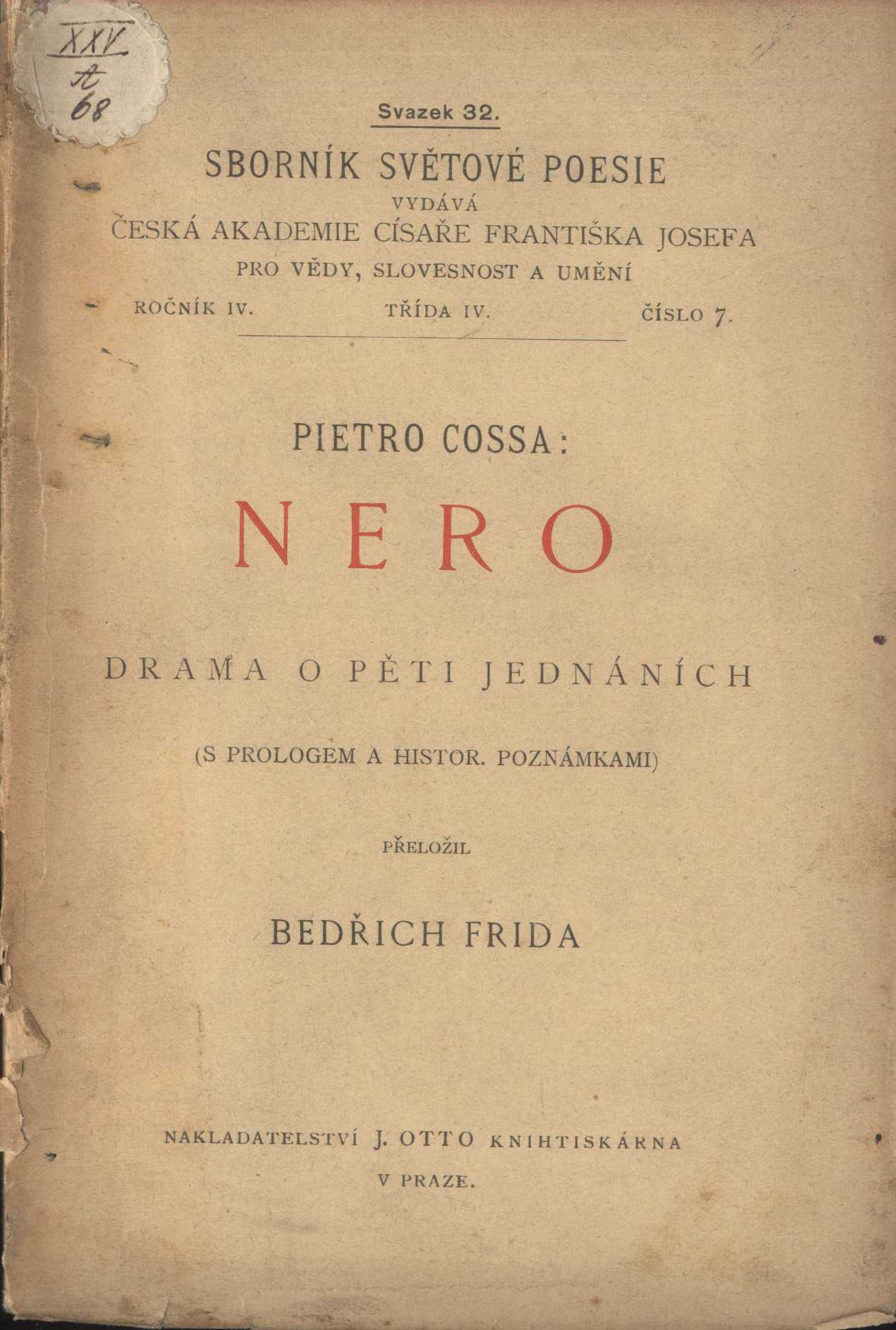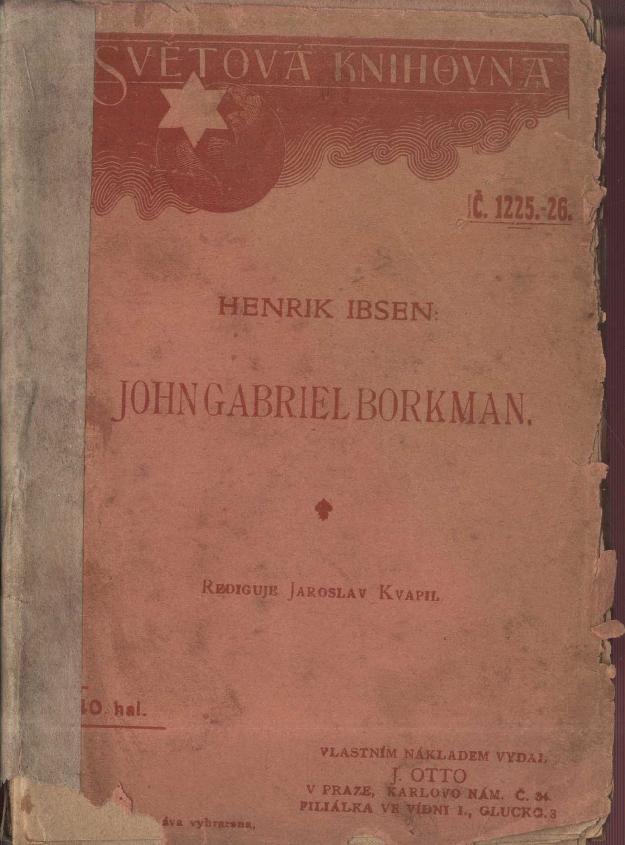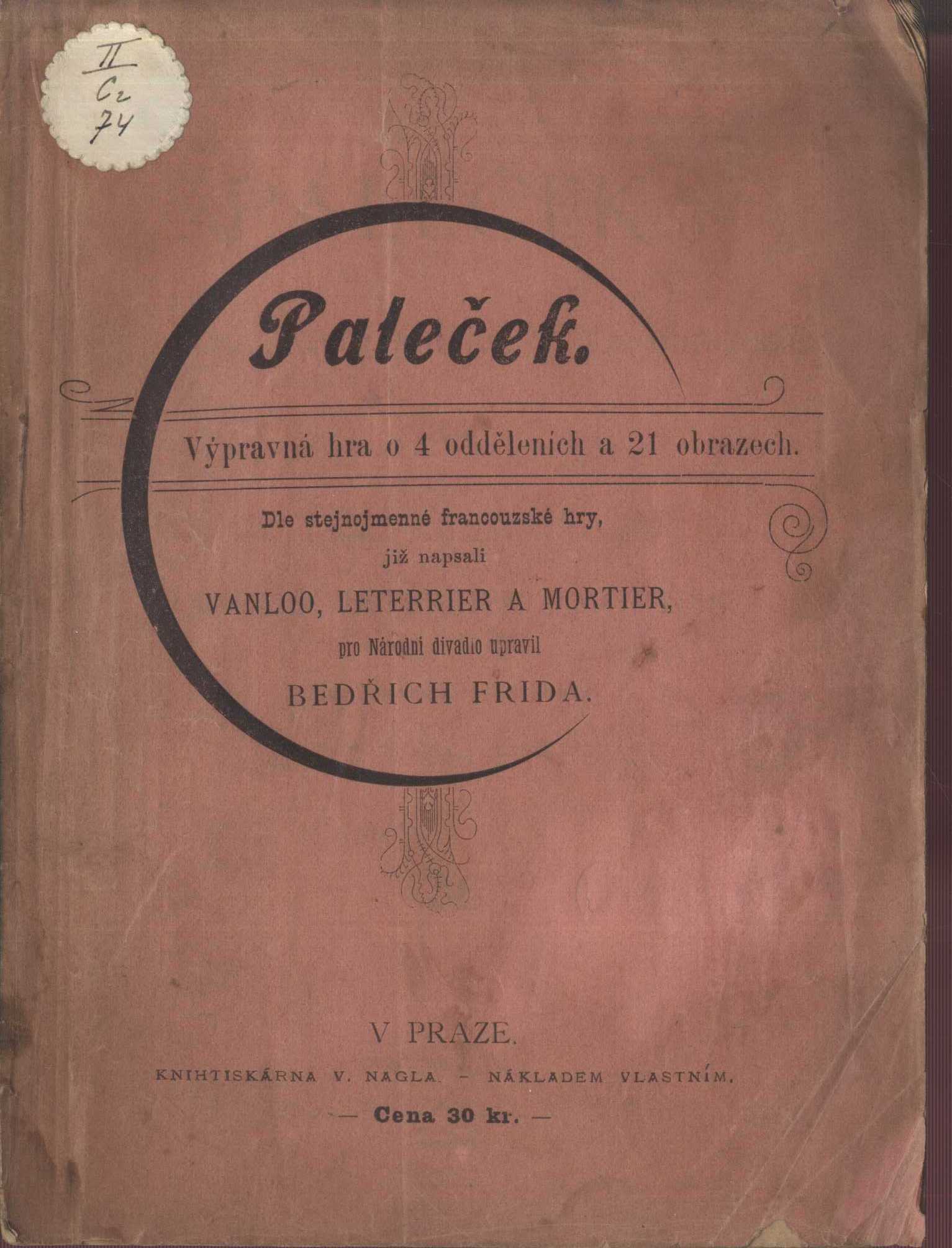 Názvové údaje Filip : tragedie o pěti jednáních / Vittorio Alfieri ; přeložil Bedřich Frida Osobní jméno Alfieri, Vittorio, 1749-1803 (Autor) Další autoři Frída, Bedřich, 1855-1918 (Překladatel) Korp. J. Otto (nakladatelství) (Nakladatel, vydavatel) Nakladatel Praha : J. Otto, [1892] Rozsah 148 stran Klíčová slova italská próza * italské drama * tragédie Počet ex. 3, z toho volných 3 Druh dok. monografie Signatura P 109 d 40, P 23 b 23/přív.l., P 92 f 18 Názvové údaje Filip : tragedie o pěti jednáních / Vittorio Alfieri ; přeložil Bedřich Frida Osobní jméno Alfieri, Vittorio, 1749-1803 (Autor) Další autoři Frída, Bedřich, 1855-1918 (Překladatel) (Autor úvodu atd.) Korp. J. Otto (nakladatelství) (Nakladatel, vydavatel) (Tiskař) Nakladatel V Praze : Nakladatelství J. Otto knihtiskárna, [1892] Rozsah 91 stran Klíčová slova italská literatura * italské divadlo * divadelní hra * tragédie Počet ex. 2, z toho volných 2 Druh dok. monografie Signatura KaG XLI G 211, VHB 1917 Názvové údaje Filip : tragedie o pěti jednáních / Vittorio Alfieri ; přeložil Bedřich Frida Osobní jméno Alfieri, Vittorio, 1749-1803 (Autor) Další autoři Frída, Bedřich, 1855-1918 (Překladatel) Korp. J. Otto (nakladatelství) (Nakladatel, vydavatel) Nakladatel Praha : J. Otto, 1891 Rozsah 91 stran Klíčová slova italská próza * dramata * tragédie Počet ex. 1, z toho volných 1 Druh dok. monografie Signatura P 141 f 38 Názvové údaje Nero : drama o pěti jednáních : (s prologem a historickými poznámkami) / Pietro Cossa ; přeložil Bedřich Frida Osobní jméno Cossa, Pietro, 1830-1881 (Autor) Další autoři Frída, Bedřich, 1855-1918 (Překladatel) Pražáková, Klára, 1891-1933 (Dřívější majitel) (Autor podpisu) Korp. J. Otto (nakladatelství) (Nakladatel, vydavatel) (Tiskař) Nakladatel V Praze : J. Otto, [1894] Rozsah 118 s. Klíčová slova italská literatura * italské divadlo * divadelní hra * tragédie Počet ex. 2, z toho volných 2 Druh dok. monografie Signatura KaG XXV A 68, VHB 1932 Názvové údaje Přeslavný doktor Matheus : román Erckmanna-Chatriana / přeložil Bedřich Frida Autor Erckmann-Chatrian (Autor úvodu atd.) Další autoři Frída, Bedřich, 1855-1918 (Překladatel) Nakladatel Praha : J. Otto, 1893 Rozsah 140 s. ; 18 cm Klíčová slova česká literatura Počet ex. 1, z toho volných 1 Druh dok. monografie Signatura Holan 562 Názvové údaje Vedle sebe šli jsme dálnou poutí... : vzpomínky ze života dvou bratří / Bedřich Frída, Jaroslav Vrchlický ; uspořádání, ediční příprava, úvodní studie a komentáře Jiří Hubáček ; typografická osnova František Štorm Osobní jméno Frída, Bedřich, 1855-1918 (Autor) Další autoři Vrchlický, Jaroslav, 1853-1912 (Autor) Hubáček, Jiří (Sestavovatel, kompilátor) (Editor) (Autor úvodu atd.) (Autor komentáře textu) Štorm, František, (Typograf) 1966- Korp. Univerzita Karlova. Filozofická fakulta (Nakladatel, vydavatel) Togga (nakladatelství, tiskárna) (Tiskař) Nakladatel Praha : Filozofická fakulta Univerzity Karlovy, 2016 Výrobce Praha : Togga, spol. s r.o. Rozsah 271 stran ; 21 cm Osobní hesla Vrchlický, Jaroslav, 1853-1912 - básník, dramatik, prozaik a překladatel * Frída, Bedřich, 1855-1918 - spisovatel, překladatel, divadelní kritik, pedagog, dramaturg Klíčová slova čeští básníci * partnerské vztahy * rodinné vztahy * přátelé * spolupracovníci * stol. 19.-20. * vzpomínky * texty * komentované vydání Počet ex. 1, z toho volných 0 Druh dok. monografie Signatura C12b 17529 Názvové údaje John Gabriel Borkman : drama o čtyrech dějstvích / Henrik Ibsen ; přeložil Bedřich Frída Osobní jméno Ibsen, Henrik, 1828-1906 (Autor) Další autoři Frída, Bedřich, 1855-1918 (Překladatel) Korp. J. Otto (nakladatelství) (Nakladatel, vydavatel) Unie (tiskárna) (Tiskař) Nakladatel V Praze : J. Otto, [19--] Výrobce V Praze : Tiskem Unie, [19--] Rozsah 120 stran Klíčová slova norská literatura * překlad * divadlo * divadelní hra * moderní divadlo * moderní drama Počet ex. 1, z toho volných 1 Druh dok. monografie Signatura VHB 2958 Názvové údaje Dvě novelly / od Prospera Mériméa ; přeložil Bedřich Frída Osobní jméno Mérimée, Prosper, 1803-1870 (Autor úvodu atd.) Další autoři Frída, Bedřich, 1855-1918 (Překladatel) Nakladatel Praha : J. Otto, b.r Rozsah 75 s. ; 15 cm Klíčová slova česká literatura Počet ex. 1, z toho volných 1 Druh dok. monografie Signatura Holan 2452 Názvové údaje Zdravý nemocný : komedie - balet o 3 dějstvích / Molière ; přeložili Bedřich Frída a Zdeněk Gintl ; [upravil a vyzdobil Alois Moravec] Osobní jméno Molière, 1622-1673 (Autor) Další autoři Frída, Bedřich, 1855-1918 (Překladatel) Gintl, Zdeněk, 1878-1936 (Překladatel) Moravec, Alois, 1899-1987 (Grafický technik) (Ilustrátor) Korp. Zátiší, Knihy srdce i ducha (nakladatelství) (Nakladatel, vydavatel) Löschner a spol. (knihtiskárna) (Tiskař) Nakladatel Praha : Zátiší, Knihy srdce i ducha, 1924 Výrobce (Löschner a spol.) Rozsah 115 s. Osobní hesla Molière, 1622-1673 - francouzský herec, spisovatel a dramatik Klíčová slova francouzská literatura * překlad * divadelní hry * drama * komedie * Molière * r. 1924 Počet ex. 4, z toho volných 4 Druh dok. monografie Signatura C12a 1291, P 74 f 9, P 106 c 60, MUK 1579 Názvové údaje Paleček : výpravná hra o 3 odděleních a 20 obrazech / dle stejnojmenné francouzské hry, již napsali Vanloo, Leterrier a Mortier pro Národní divadlo upravil Bedřich Frida Osobní jméno Vanloo, Albert, 1846-1920 (Autor) Další autoři Leterrier, Eugène, 1843-1884 (Autor) Mortier, Arnold, 1843-1885 (Autor) Frída, Bedřich, 1855-1918 (Překladatel) (Nakladatel, vydavatel) Korp. V. Nágl (tiskárna) (Tiskař) Nakladatel V Praze : [B. Frida], 1894 Výrobce Knihtiskárna V. Nagel) Rozsah 58 s. Klíčová slov