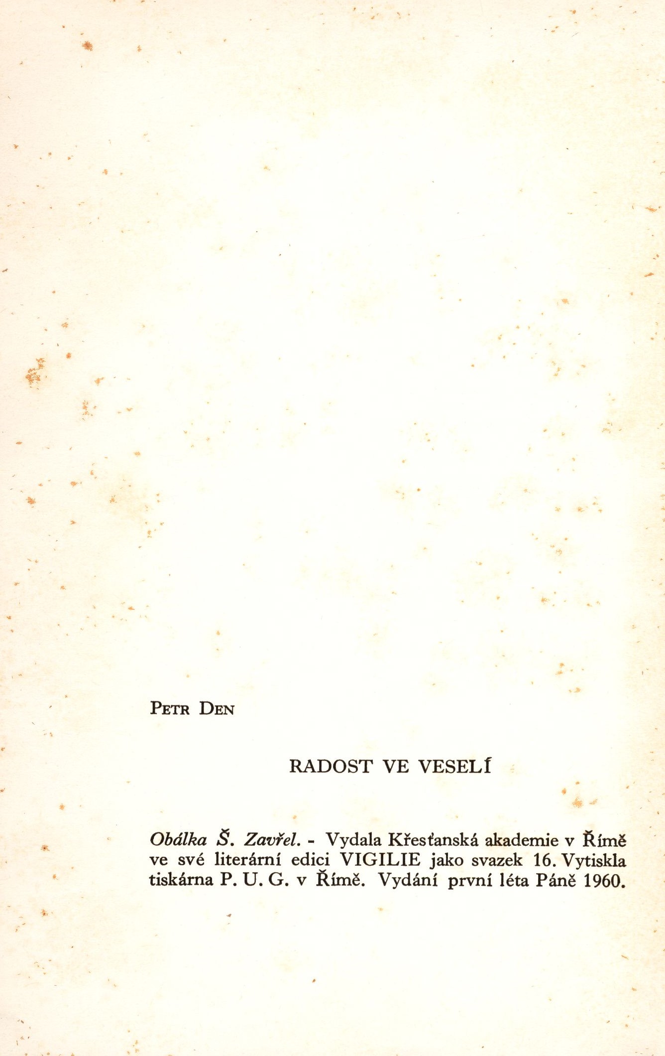 Názvové údaje Dynamoarchismus / Ivan Andrenik ...[et al.] ; [Doslov] Na závěr J. H Osobní jméno Andrenik, Ivan, 1921-1998 (Autor) Další autoři Hořec, Jaromír, 1921-2009 (Autor úvodu atd.) Nakladatel Praha : Česká expedice, 1987 Rozsah 142 s., obr Osobní hesla Andrenik, Ivan, 1921-1998 - redaktor, archivář, básník * Kafka, Jiří, 1921-1998 - redaktor, archivář, básník * Hořec, Jaromír, 1921-2009 - novinář a publicista, prozaik, básník, textař * Hořec, Jaromír, 1921-2009 - novinář a publicista, prozaik, básník, textař * Hořec, Jaromír, 1921-2009 - novinář a publicista, prozaik, básník, textař * Hořec, Jaromír, 1921-2009 - novinář a publicista, prozaik, básník, textař * Hořec, Jaromír, 1921-2009 - novinář a publicista, prozaik, básník, textař * Hořec, Jaromír, 1921-2009 - novinář a publicista, prozaik, básník, textař * Hořec, Jaromír, 1921-2009 - novinář a publicista, prozaik, básník, textař * Hořec, Jaromír, 1921-2009 - novinář a publicista, prozaik, básník, textař * Hořec, Jaromír, 1921-2009 - novinář a publicista, prozaik, básník, textař * Listopad, František, 1921-2017 - redaktor, básník, beletrista, publicista, lektor slavistiky, divadelní a filmový režisér * Synek, Jiří Klíčová slova česká literatura * sborník * dynamoarchismus * r. 1946 * samizdat Počet ex. 1, z toho volných 1 Druh dok. monografie Signatura LA/SH Názvové údaje Duely / Antonín Bajaja ; [obálka Libor Hofman ; grafická úprava Lukáš Táborský] Osobní jméno Bajaja, Antonín, 1942-2022 (Autor) (Dedikátor) Další autoři Hofman, Libor, 1955- (Autor obálky) Táborský, Lukáš (Grafický technik) Listopad, František, 1921-2017 (Dedikant) Korp. Mladá fronta (nakladatelství) (Nakladatel, vydavatel) Europrint Modřany a. s. (tiskárna) (Tiskař) Nakladatel Praha : Mladá fronta, 2005 Výrobce (Europrint Modřany) Rozsah 387 stran ; 21 cm Klíčová slova česká próza * románová kronika * kopaničáři * Valašsko Počet ex. 2, z toho volných 2 Druh dok. monografie Signatura R&AHamanovi 0723, Listopad 0001 Názvové údaje Radost ve Veselí / vzpomíná Petr Den Osobní jméno Den, Petr, 1898-1970 (Autor) (Dedikátor) Další autoři Listopad, František, 1921-2017 (Dedikant) Korp. Křesťanská akademie v Římě (Nakladatel, vydavatel) Tipografia P. U. G. (tiskárna) (Tiskař) Nakladatel Řím : Křesťanská akademie, 1960 Výrobce Tipografia P. U. G. Rozsah 77 stran ; 18 cm Osobní hesla Den, Petr, 1898-1970 - diplomat, politolog, publicista, literární a politický esejista Klíčová slova česká próza * autobiografické vzpomínky * dětství Počet ex. 2, z toho volných 2 Druh dok. monografie Signatura C12b 10242, Listopad 0225 Názvové údaje Podzemní univerzita : přednášky z filosofie a politologie / Uspořádali Petr Fiala, František Mikš ; překlad [z angl.] Jana Kuchtová, Miroslav Pospíšil, Zdeněk Merta ; úvodní studie Petr Oslzlý ; obálka Rostislav Pospíšil Osobní jméno Fiala, Petr, 1964- (Autor) Další autoři Mikš, František, 1966- (Autor) Kuchtová, Jana (Překladatel) Pospíšil, Miroslav (Překladatel) Merta, Zdeněk (Překladatel) Oslzlý, Petr, 1945- (Autor úvodu atd.) (Dedikátor) Pospíšil, Rostislav, 1950- (Autor obálky) Listopad, František, 1921-2017 (Dedikant) Korp. Centrum pro studium demokracie a kultury (Nakladatel, vydavatel) Tisk - Sýkora Brno (tiskárna) (Tiskař) Nakladatel Brno : Centrum pro studium demokracie a kultury, 1993 Výrobce Sýkora Rozsah 229 stran ; 20 cm Geografické heslo Brno - Brno-město - cz-ms Klíčová slova sborníky * studie * politologie * filozofie * Podzemní univerzita Počet ex. 2, z toho volných 2 Druh dok. monografie Signatura M 218 d 30, Listopad 0162 Názvové údaje Knihy a osudy / Julius Firt ; Do tisku připravil a doslov napsal Ludvík Veselý ; Obálku navrhl a grafickou úpravu provedl Jan Kotík Osobní jméno Firt, Julius, 1897-1979 (Autor) (Dedikátor) Další autoři Veselý, Ludvík, 1920-1998 (Editor) (Autor doslovu, tiráže atd.) Listopad, František, 1921-2017 (Dedikant) Kotík, Jan, 1916-2002 (Grafický technik) (Autor obálky) Korp. Index (nakladatelství) (Nakladatel, vydavatel) Nakladatel Köln : Index, 1972 Rozsah 294 stran, číslovaná příloha : faksimile, fotografie ; 17 cm + volně vložené listy Klíčová slova česká literatura * exilová literatura * paměti * Firt J. * Československo * exil * USA * Mnichov * rádio Svobodná Evropa * stol. 20. Počet ex. 2, z toho volných 1 Druh dok. monografie Signatura C12a 1501, Listopad 0253