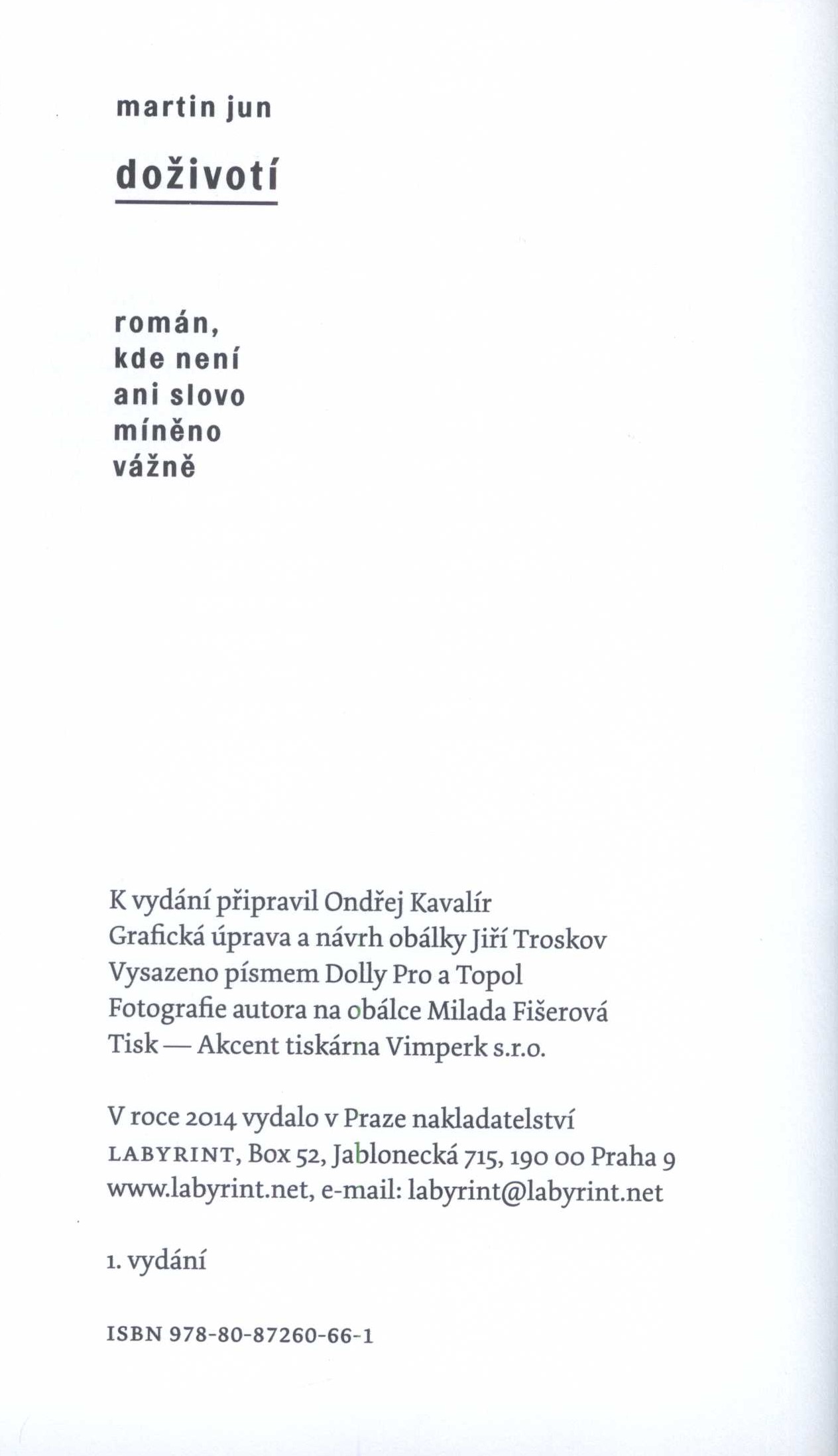 Názvové údaje Zamilovaný ďábel : španělská novela / Jacques Cazotte ; přeložil Petr Turek Osobní jméno Cazotte, Jacques, 1719-1792 (Autor) Další autoři Turek, Petr, 1963- (Překladatel) (Autor komentáře) Troskov, Jiří, 1973- (Autor obálky) Korp. Mladá fronta (nakladatelství) (Nakladatel, vydavatel) Serifa (tiskárna) (Tiskař) Nakladatel Praha : Mladá fronta, 2001 Výrobce Praha: Serifa Rozsah 237 stran : ilustrace ; 18 cm Osobní hesla Cazotte, Jacques, 1719-1792 - francouzský prozaik Klíčová slova francouzská literatura * francouzská próza * Cazotte J. * překlad * fantastická literatura * novela * Španělsko * stol. 18. * dobové ilustrace Počet ex. 1, z toho volných 1 Druh dok. monografie Signatura C12a 5775 Názvové údaje Život a sochy Olbrama Zoubka / Dora Čechova ; [fotografie Ota Richter ... et al. ; grafická úprava a sazba Jiří Troskov] Osobní jméno Čechova, Dora, 1971- (Autor) Další autoři Richter, Ota (Fotograf) Troskov, Jiří, 1973- (Knižní grafik) Korp. Mladá fronta (nakladatelství) (Nakladatel, vydavatel) Europrint Modřany a. s. (tiskárna) (Tiskař) Nakladatel Praha : Mladá fronta, 2013 Výrobce (Europrint) Rozsah 243 s. : il., portréty ; 20 cm Osobní hesla Zoubek, Olbram, 1926-2017 - sochař, grafik, restaurátor Klíčová slova české výtvarné umění * české sochařství * čeští sochaři * osobnosti * Zoubek O. * rozhovory * biografická literatura * monografické publikace Počet ex. 1, z toho volných 1 Druh dok. monografie Signatura C12b 15913 Názvové údaje Legenda o nesvatém Kraťákovi, aneb, Až řeknu teď, tak začni číst! / Jaromír Červenka ; [grafická úprava Jiří Troskov] Osobní jméno Červenka, Jaromír, 1952- (Autor) Další autoři Troskov, Jiří, 1973- (Knižní grafik) Nakladatel Praha : Mladá fronta, 2005 Rozsah 72 s. Klíčová slova česká próza * novela * Malá Strana (Praha) * příběhy lidí Počet ex. 1, z toho volných 1 Druh dok. monografie Signatura C12b 8332 Názvové údaje Apokryfy ; Figarova zlatá svatba / Viktor Fischl ; [graficky upravil a obálku navrhl Jiří Troskov] Osobní jméno Fischl, Viktor, 1912-2006 (Autor) Další autoři Troskov, Jiří, 1973- (Knižní grafik) (Autor obálky) Korp. Garamond (nakladatelství) (Nakladatel, vydavatel) Protisk (tiskárna, České Budějovice) (Tiskař) Nakladatel Praha : Garamond, 2004 Výrobce Protisk) Rozsah 211 s. Klíčová slova česká próza * české povídky * povídkové soubory * sebrané spisy Počet ex. 2, z toho volných 2 Druh dok. monografie Signatura C12b 7236, R&AHamanovi 0170 Názvové údaje Jeruzalémské povídky ; Kafka v Jeruzalému / Viktor Fischl ; [graficky upravil a obálku navrhl Jiří Troskov] Osobní jméno Fischl, Viktor, 1912-2006 (Autor) Další autoři Troskov, Jiří, 1973- (Knižní grafik) Nakladatel Praha : Garamond, 2004 Rozsah 265 s. Klíčová slova česká próza * humoristické povídky * Jeruzalém Počet ex. 1, z toho volných 1 Druh dok. monografie Signatura C12b 7658 Názvové údaje Kuropění / Viktor Fischl ; [ilustrace Jan Kristofori ; doslov Viktor Fischl ; obálka a grafická úprava Jiří Troskov] Osobní jméno Fischl, Viktor, 1912-2006 (Autor) Další autoři Troskov, Jiří, 1973- (Knižní grafik) Nakladatel Praha : Garamond, 2005 Rozsah 205 s. Osobní hesla Kristofori, Jan, 1931-2004 - malíř, ilustrátor, grafik Klíčová slova česká próza * romány * čeští malíři * biografické eseje Počet ex. 1, z toho volných 1 Druh dok. monografie Signatura C12b 8544 Názvové údaje Ulice zvaná Mamila / Viktor Fischl ; [obálka a grafická úprava Jiří Troskov] Osobní jméno Fischl, Viktor, 1912-2006 (Autor) Další autoři Troskov, Jiří, 1973- (Knižní grafik) Nakladatel Praha : Garamond, 2006 Rozsah 157 s. Klíčová slova česká próza * vyprávění * vzpomínky * Jeruzalém * osudy Židů Počet ex. 1, z toho volných 1 Druh dok. monografie Signatura C12b 9368 Názvové údaje Muž s unavenýma očima / Martin Goffa ; [obálka a grafická úprava Jiří Troskov] Osobní jméno Goffa, Martin, 1973- (Autor) Další autoři Troskov, Jiří, 1973- (Autor obálky) Nakladatel Praha : Mladá fronta, 2013 Rozsah 237 s. Klíčová slova česká literatura * próza * detektivní román * r. 2012 Počet ex. 1, z toho volných 1 Druh dok. monografie Signatura C12b 14595 Názvové údaje Korespondence / Janouch, Vaculík ; [obálka Jiří Troskov ; typografie Jana Vysoká] Osobní jméno Janouch, František, 1931-2024 (Autor) Další autoři Vaculík, Ludvík, 1926-2015 (Autor) Troskov, Jiří, 1973- (Autor obálky) Vysoká, Jana, 1946- (Typograf) Nakladatel Praha : Mladá fronta, 2012 Rozsah 222 s. : il., portréty, faksim. Osobní hesla Janouch, František, 1931-2024 - jaderný fyzik, autor vědeckých a vědecko-populárních publikací, práce o Číně, překladatel * Vaculík, Ludvík, 1926-2015 - prozaik, fejetonista, kulturní a politický publicista Klíčová slova literatura * společnost * kulturní život * emigrace * imigrace * disidentské hnutí * československý exil * čeští spisovatelé * vědci * korespondence * Janouch F. * Vaculík L. * Švédsko * Československo * stol. 20. Počet ex. 1, z toho volných 1 Druh dok. monografie Signatura C12b 13985 Názvové údaje Doživotí : román, kde není ani slovo míněno vážně / Martin Jun Osobní jméno Jun, Martin, 1976- (Autor) Další autoři Kavalír, Ondřej, 1980- (Editor) Troskov, Jiří, 1973- (Knižní grafik) (Autor obálky) Fišerová, Milada, 1980- (Fotograf) Korp. Labyrint (nakladatelství) (Nakladatel, vydavatel) Akcent tiskárna Vimperk (Tiskař) Nakladatel V Praze : Labyrint, 2014 Výrobce [Vimperk] : Akcent tiskárna Vimperk Rozsah 302 stran : ilustrace ; 20 cm Klíčová slova česká literatura * próza * román * Jun M. * knižní debut Počet ex. 2, z toho volných 2 Adr. el. zdr. http://krameriusndk.nkp.cz/search/handle/uuid:78e0cdb0-0f5b-11e9-a9e5-0050568
