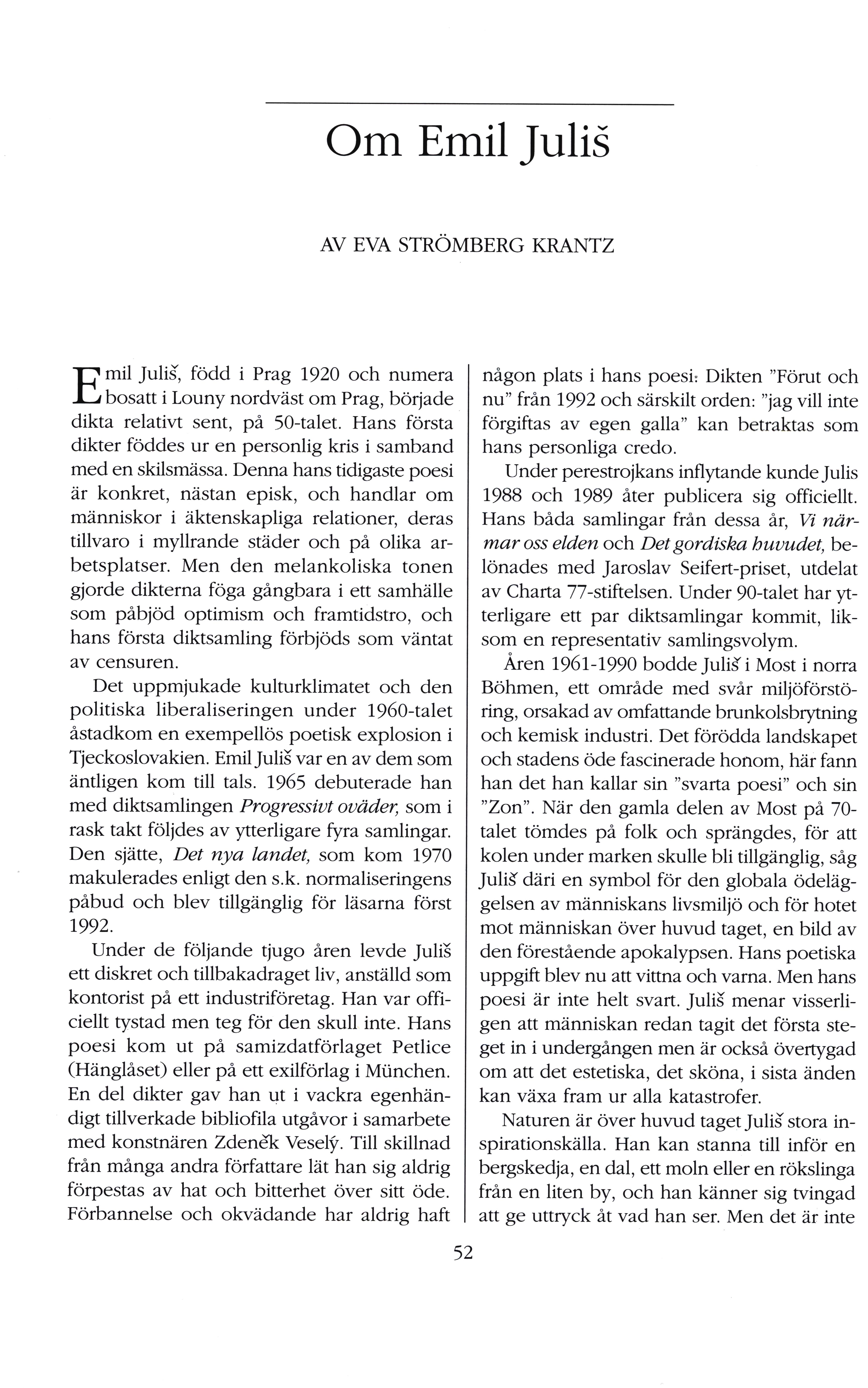 Názvové údaje Horisont : Kulturtidskriften / [redaktörer: Maria Sandin & Peter Björkman]. Nr. 3, Årgång 49, 2002 Další autoři Sandin, Maria, 1961- (Tiskař) Björkman, Peter, 1967- (Tiskař) Nakladatel Vasa : Arkmedia, 2002 Rozsah 79 s. - [2] : il. Osobní hesla Juliš, Emil, 1920-2006 - básník, beletrista, redaktor časopisu Dialog Klíčová slova švédská literatura * kulturní magazín * literární časopis * Juliš E. * r. 2002 Počet ex. 1, z toho volných 1 Druh dok. PERIODIKA - Souborný záznam periodika Signatura EJulis 0271