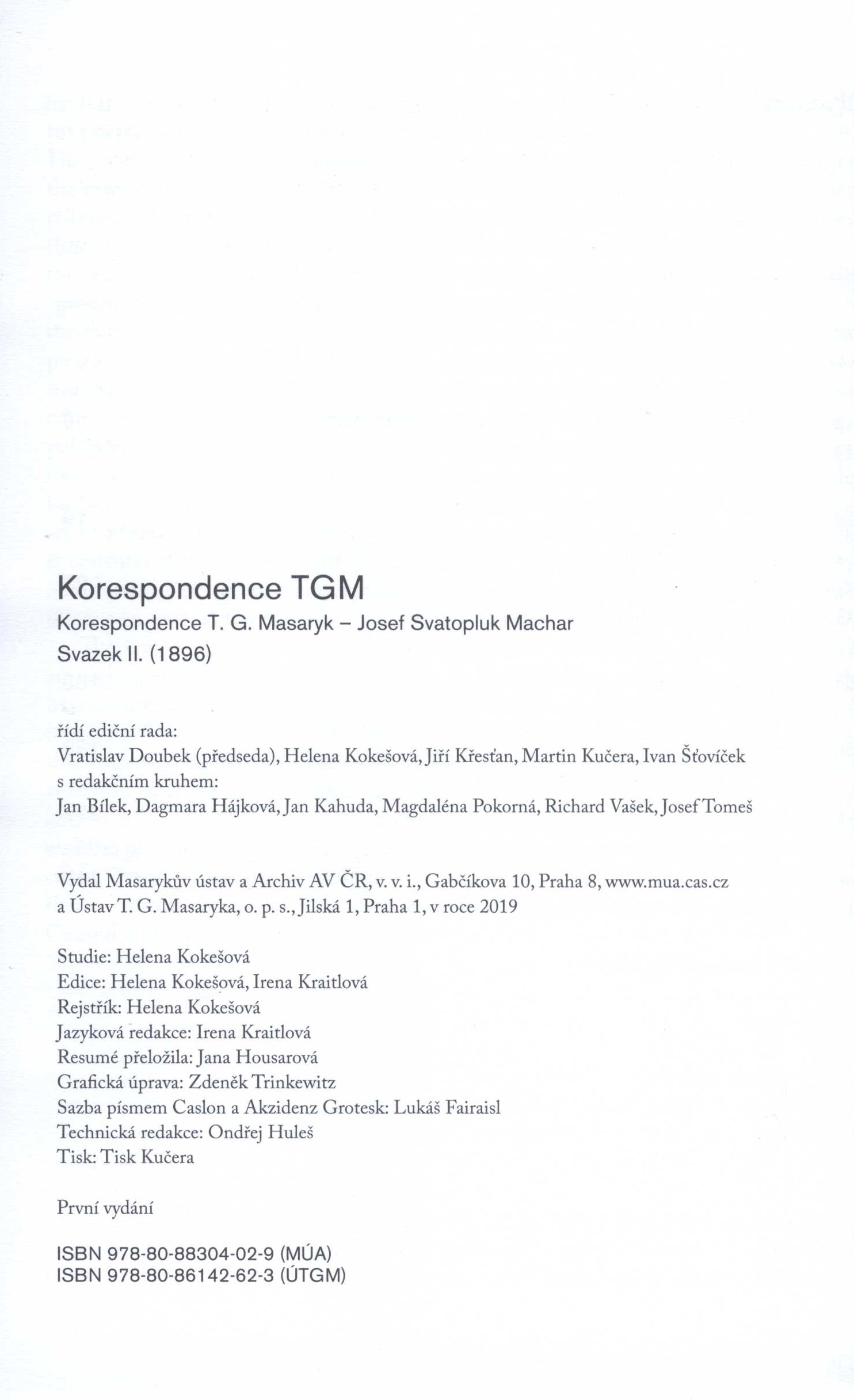 Názvové údaje Ideály humanitní a texty z let 1901-1903 / T.G. Masaryk ; [svazek připravil a rejstřík sestavil Michal Kosák ; vazbu a obálku navrhla Anna Poustová] Osobní jméno Masaryk, Tomáš Garrigue, 1850-1937 (Autor) Další autoři Kosák, Michal, 1977- (Editor) Poustová, Anna, 1940-2015 (Knižní grafik) Korp. Ústav T.G. Masaryka, o.p.s. (společnost) Masarykův ústav - Archiv AV ČR (Akademie věd ČR) Nakladatel Praha : Ústav T.G. Masaryka : Masarykův ústav - Archiv AV ČR, 2011 Výrobce Akcent) Rozsah 519 s. Klíčová slova filozofie * politika * demokracie * sociologie * náboženství * humanitní ideály * české země * Evropa * texty * časopisecké články * filozofické úvahy * politické úvahy * nábožensko-filozofické úvahy * r. 1901-1903 * sborníky Počet ex. 1, z toho volných 1 Druh dok. monografie Signatura C12b 12931 Názvové údaje Korespondence T. G. Masaryk - Edvard Beneš : 1914-1918 / editoři Dagmar Hájková a Ivan Šedivý Osobní jméno Masaryk, Tomáš Garrigue, 1850-1937 (Autor) Další autoři Beneš, Edvard, 1884-1948 (Autor) Hájková, Dagmar, 1962- (Editor) Šedivý, Ivan, 1959- (Editor) Korp. Ústav T.G. Masaryka, o.p.s. (společnost) (Organizátor akce) Masarykův ústav (Akademie věd ČR) (Nakladatel, vydavatel) Nakladatel Praha : Masarykův ústav AV ČR, 2004 Rozsah 353 s. Osobní hesla Masaryk, Tomáš Garrigue, 1850-1937 - politik, první čsl. president, filosof * Beneš, Edvard, 1884-1948 - sociolog, politik, prezident Klíčová slova Československo * českoslovenští prezidenti * prezidenti * českoslovenští politici * politici * korespondence * vznik státu * 1. světová válka * r. 1914-1918 * zahraniční odboj Počet ex. 1, z toho volných 1 Druh dok. monografie Signatura C12b 7199 Názvové údaje Korespondence T.G. Masaryk - Josef Svatopluk Machar : TGM - JSM. Svazek II., (1896) / editorky Helena Kokešová, Irena Kraitlová ; grafická úprava: Zdeněk Trinkewitz Osobní jméno Masaryk, Tomáš Garrigue, 1850-1937 (Korespondent) (Adresát, příjemce) Další autoři Machar, Josef Svatopluk, 1864-1942 (Korespondent) (Adresát, příjemce) Kokešová, Helena, 1965- (Editor) (Autor) (Autor úvodu atd.) Kraitlová, Irena (Editor) (Autor úvodu atd.) Trinkewitz, Zdeněk, 1976- (Knižní grafik) Korp. Masarykův ústav a Archiv Akademie věd ČR (Nakladatel, vydavatel) Ústav T.G. Masaryka, o.p.s. (společnost) (Nakladatel, vydavatel) Nakladatel Praha : Masarykův ústav a Archiv AV ČR : Ústav T. G. Masaryka, 2019 Výrobce Tisk Kučera Rozsah 246 stran : ilustrace, portréty, faksimile ; 22 cm Osobní hesla Machar, Josef Svatopluk, 1864-1942 - básník, prozaik, satirik, publicista a politik * Masaryk, Tomáš Garrigue, 1850-1937 - politik, první čsl. president, filosof, sociolog, novinář, vysokoškolský učitel, spisovatel Chronologie 1896 Klíčová slova česká literatura * vzájemná korespondence * názory * postoje * literární život * osobnosti * prezident * Masaryk T. G. * básník * politici * Machar J. S. * Česko Počet ex. 1, z toho volných 1 Druh dok. monografie Signatura C12b 18934 Názvové údaje T.G. Masaryk : za ideálem a pravdou / Stanislav Polák ; [grafická úprava Vladimír Vyskočil ; obálka Gustav Šeďa]. 5, (1915-1918) Osobní jméno Polák, Stanislav, 1936-2017 (Autor) Další autoři Vyskočil, Vladimír, 1953- (Grafický technik) Šeďa, Gustav, 1933- (Autor obálky) Korp. Ústav T.G. Masaryka, o.p.s. (společnost) Masarykův ústav a Archiv Akademie věd ČR Nakladatel Praha : Masarykův ústav a Archiv AV ČR : Ústav T.G. Masaryka, 2009 Rozsah 566 s. : il. Osobní hesla Masaryk, Tomáš Garrigue, 1850-1937 - politik, první čsl. president, filosof Klíčová slova čeští politici * českoslovenští prezidenti * Česko * 1. světová válka * r. 1914-1918 * emigrace * politická činnost * biografie Počet ex. 1, z toho volných 1 Druh dok. monografie Signatura C12b 11940 Názvové údaje T.G. Masaryk : za ideálem a pravdou. 6, 1919-1937 / Stanislav Polák ; [grafická úprava Vladimír Vyskočil ; obálka Gustav Šeďa] Osobní jméno Polák, Stanislav, 1936-2017 (Autor) Další autoři Vyskočil, Vladimír, 1953- (Grafický technik) Šeďa, Gustav, 1933- (Autor obálky) Korp. Masarykův ústav a Archiv Akademie věd ČR (Nakladatel, vydavatel) Akademie věd České republiky. Archiv (Nakladatel, vydavatel) Ústav T.G. Masaryka, o.p.s. (společnost) (Nakladatel, vydavatel) Nakladatel Praha : Masarykův ústav a Archiv AV ČR : Ústav T.G. Masaryka, 2012 Rozsah 335 s. : il., portréty Osobní hesla Masaryk, Tomáš Garrigue, 1850-1937 - politik, první čsl. president, filosof Klíčová slova česká literatura * biografie * osobnosti * politici * státníci * prezident Československa * Masaryk T. G. * r. 1919-1937 Počet ex. 1, z toho volných 1 Druh dok. monografie Signatura C12b 13726 Názvové údaje Češi a Slováci ve 20. století : česko-slovenské vztahy 1945-1992 / Jan Rychlík ; recenzovali Michal Barnovský ... [et al.] Osobní jméno Rychlík, Jan, 1954- (Autor) Další autoři Barnovský, Michal, 1937-2008 (Recenzent) Korp. Ústav T.G. Masaryka, o.p.s. (společnost) (Nakladatel, vydavatel) Nakladatel Bratislava : Academic Electronic Press : Ústav T.G. Masaryka, 1998 Rozsah 554 s. Klíčová slova Československo * česko-slovenské vztahy * národnostní otázka * politické vztahy * historické prameny * r. 1945-1992 Počet ex. 1, z toho volných 1 Druh dok. monografie Signatura BVolkova 0435 Názvové údaje První světová válka, moderní demokracie a T.G. Masaryk : sborník příspěvků z mezinárodní vědecké konference pořádané Ústavem T. G. Masaryka ve dnech 22.-24. září 1994 na zámku v Liblicích u Mělníka / uspoř. Jaroslav Opat ; obálku navrhla Anna Poustová ; graf. úpr. Josef Tichý Záhlaví-korpor. Ústav T.G. Masaryka, o.p.s. (společnost) Další autoři Opat, Jaroslav, 1924-2015 (Editor) Poustová, Anna