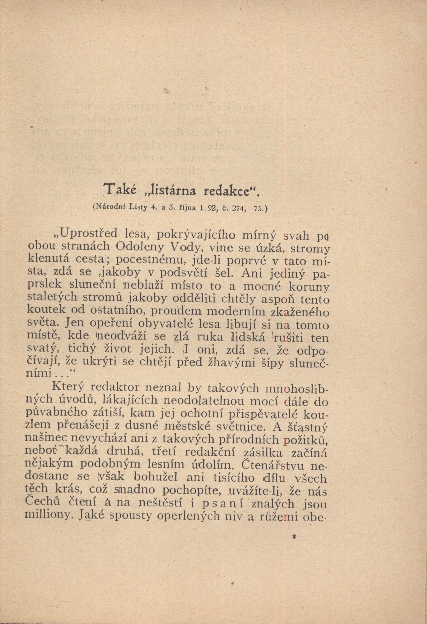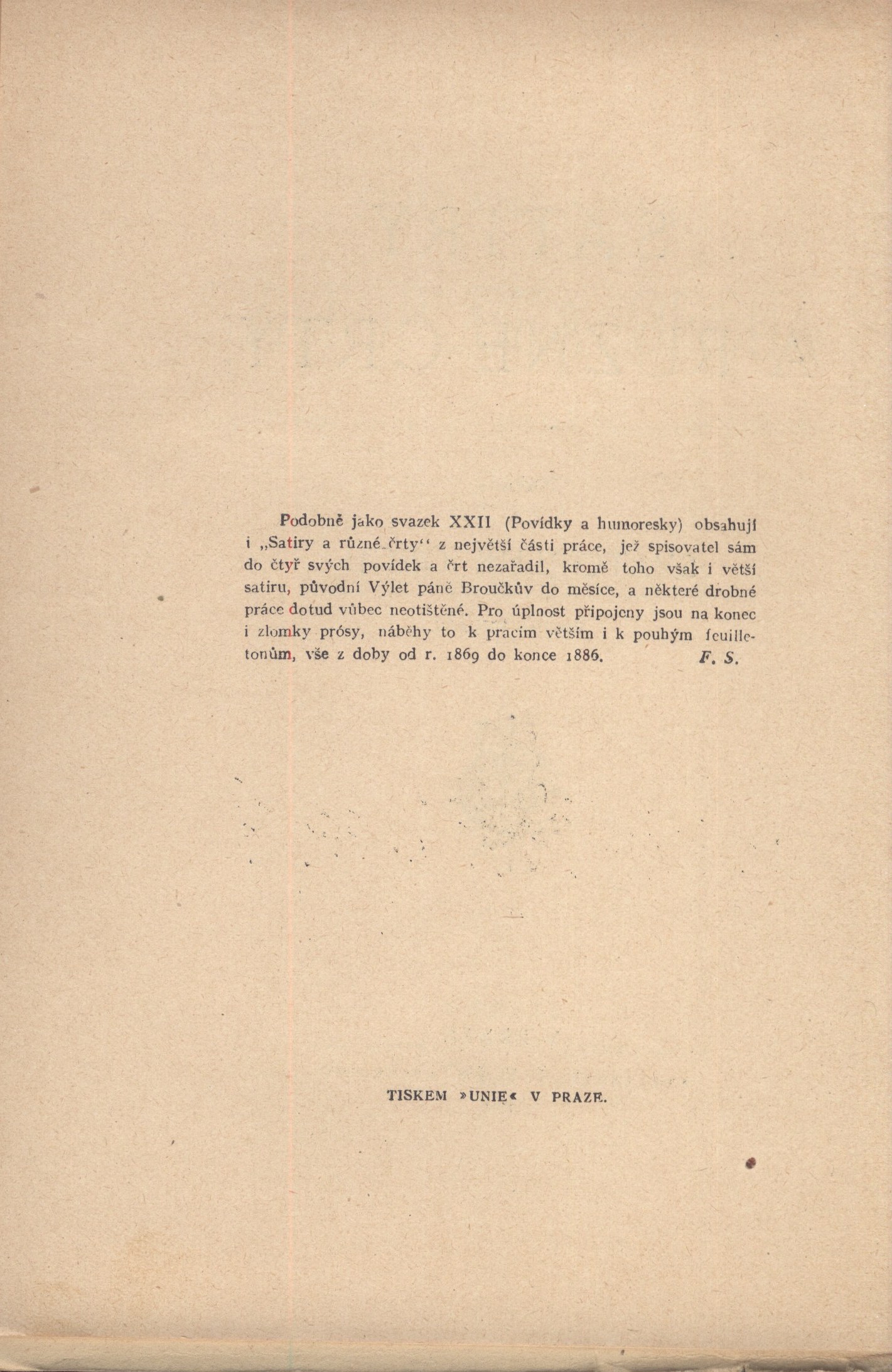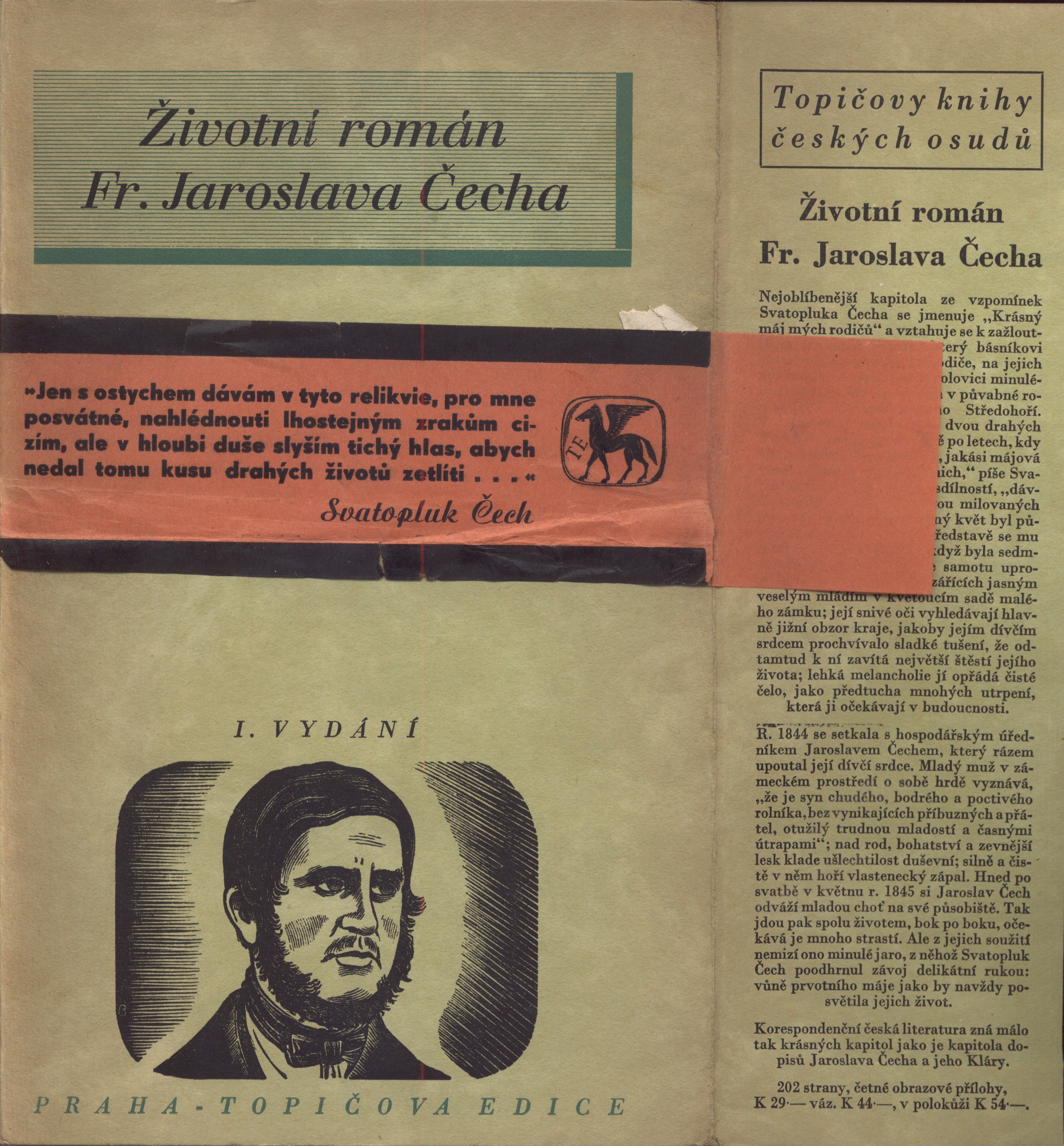 Názvové údaje Životní román Fr. Jaroslava Čecha / podle dopisů z let 1845-1877 upravil Ferdinand Strejček ; [dřevoryt a grafická úprava Cyrila Boudy] Osobní jméno Čech, František Jaroslav, 1817-1877 (Autor) Další autoři Strejček, Ferdinand, 1878-1963 (Editor) Bouda, Cyril, 1901-1984 (Ilustrátor) (Knižní grafik) Korp. Topičova edice (nakladatelství) (Nakladatel, vydavatel) Osvěta (tiskárna) (Tiskař) Nakladatel V Praze : Topičova edice, 1940 Výrobce Osvěta, společnost s o. r.) Rozsah 202 - [I] s., [16] l. obr. příl., [1] rozkl. l. rodokmenu : il. ; 21 cm Osobní hesla Čech, František Jaroslav, 1817-1877 - hospodářský úředník Klíčová slova česká literatura * korespondence * životní osudy * osobnosti * rodinná korespondence * rody * Čech S. * Čech F.J. * Čechová K. * stol. 19. Počet ex. 2, z toho volných 2 Druh dok. monografie Signatura Leschinger 076, Topič 0131 Názvové údaje Cikánka : [malířská humoreska] / Svatopluk Čech ; se čtyřmi obrázky Adolfa Kašpara ; vydal [a doslov napsal] Ferdinand Strejček ; [v grafické úpravě Cyrila Boudy] Osobní jméno Čech, Svatopluk, 1846-1908 (Autor) Další autoři Kašpar, Adolf, 1877-1934 (Ilustrátor) Strejček, Ferdinand, 1878-1963 (Sestavovatel, kompilátor) (Autor doslovu, tiráže atd.) Bouda, Cyril, 1901-1984 (Knižní grafik) Korp. Topičova edice (nakladatelství) (Nakladatel, vydavatel) Družstvo knihtiskárny (tiskárna, Hranice, Přerov) (Tiskař) Grafické umělecké závody V. Neubert (Tiskař obrazu) Nakladatel Praha : Topičova edice, 1941 Výrobce Družstvo knihtiskárny) Rozsah 31 s., [4] l. obr. příl. : [1] faks. rkp. ; 22 cm Klíčová slova česká literatura * próza * Čech S. * povídka * humoreska * ilustrované knihy * ilustrace * Kašpar A. * posmrtné vydání Počet ex. 1, z toho volných 1 Druh dok. monografie Signatura Topič 0136 Názvové údaje Dvě pohádky o práci / Svatopluk Čech ; vydal a úvodem opatřil Ferdinand Strejček Osobní jméno Čech, Svatopluk, 1846-1908 (Autor) Další autoři Strejček, Ferdinand, 1878-1963 (Nakladatel, vydavatel) (Autor úvodu atd.) Korp. Topičova edice (nakladatelství) (Nakladatel, vydavatel) Jiří Jelen (tiskárna) (Tiskař) Nakladatel V Praze : Topičova edice, 1939 Výrobce knihtiskárna Jiřího Jelena) Rozsah 71 s., [1] l. obr. příl. ; 21 cm Osobní hesla Čech, Svatopluk, 1846-1908 - prozaik, básník, redaktor Klíčová slova česká literatura * pohádky * pohádky ve verších * Čech S. Počet ex. 1, z toho volných 1 Druh dok. monografie Signatura Topič 0051 Názvové údaje Jitřní písně / Svatopluk Čech ; s úvodem od Ferdinanda Strejčka Osobní jméno Čech, Svatopluk, 1846-1908 (Autor) Další autoři Strejček, Ferdinand, 1878-1963 (Autor úvodu atd.) Nakladatel Praha : nakl. F. Topič, 1913 Rozsah 69 s. ; 19 cm Klíčová slova česká literatura Počet ex. 1, z toho volných 1 Druh dok. monografie Signatura Holan 793 Názvové údaje Pohádky a povídky strýce Martina / pro malé čtenáře veršem napsal Svatopluk Čech ; [obrázky doprovodil Adolf Kašpar ; text upravil a prohlédl Ferdinand Strejček] Osobní jméno Čech, Svatopluk, 1846-1908 (Autor) Další autoři Kašpar, Adolf, 1877-1934 (Ilustrátor) Strejček, Ferdinand, 1878-1963 (Editor) Korp. Melantrich (nakladatelství) (Nakladatel, vydavatel) (Tiskař) Nakladatel V Praze : Melantrich, 1940 Rozsah 98 s., [8] obr. příl. : il. ; 4° Klíčová slova česká literatura * veršované pohádky * literatura pro děti a mládež Počet ex. 2, z toho volných 2 Druh dok. monografie Signatura MEL 2253, VMartínek 0864 Názvové údaje Poslední kniha povídek i črt / napsal Svatopluk Čech Osobní jméno Čech, Svatopluk, 1846-1908 (Autor) Další autoři Strejček, Ferdinand, 1878-1963 (Autor komentáře) Korp. F. Topič (nakladatelství) (Nakladatel, vydavatel) Unie (tiskárna) (Tiskař) Nakladatel V Praze : Nakladatel F. Topič knihkupec Výrobce V Praze : tiskem Unie, 1918 Rozsah 4 nečíslované strany, 257 stran ; 19 cm Klíčová slova česká literatura * próza * Čech S. * povídky * črty Počet ex. 1, z toho volných 1 Druh dok. monografie Signatura C12b 16682 Názvové údaje Satiry a různé črty / napsal Svatopluk Čech Osobní jméno Čech, Svatopluk, 1846-1908 (Autor) Další autoři Strejček, Ferdinand, 1878-1963 (Autor komentáře) Korp. F. Topič (nakladatelství) (Nakladatel, vydavatel) Unie (tiskárna) (Tiskař) Nakladatel V Praze : Nakladatel F. Topič knihkupec, 1918 Výrobce V Praze : tiskem Unie Rozsah 381 stran ; 19 cm Klíčová slova česká literatura * próza * Čech S. * satiry * črty Počet ex. 1, z toho volných 1 Druh dok. monografie Signatura C12b 16683 Názvové údaje Svatopluk Čech rodičům / uspořádal Ferdinand Strejček ; dřevoryt a grafická úprava Cyrila Boudy Osobní jméno Čech, Svatopluk, 1846-1908 (Autor) Další autoři Strejček, Ferdinand, 1878-1963 (Editor) (Autor úvodu atd.) Bouda, Cyril, 1901-1984 (Ilustrátor) (Grafický technik) Korp. Topičova edice (nakladatelství) (Nakladatel, vydavatel) H. Lüdemann (Český Těšín) (Tiskař) Nakladatel V Praze : Topičova edice, 1946 Výrobce V Českém Těšíne : Knihtiskárna H. Lüdemann Rozsah 85 stran, 10 nečíslovaných stran obrazových příloh : ilustrace ; 22 cm Osobní hesla Čech, Svatopluk, 1846-1908 - prozaik, básník, redaktor Klíčová slova česká literatura * vzpomínková literatura * korespondence * rodiče * Čech S. * r. 1946 Počet ex. 2, z toho volných 2 Druh dok. monografie Signatura MUK 1810, JVladislav 735 Názvové údaje Václav z Michalovic / Svatopluk Čech ; s úvodem od Ferdinanda Strejčka Osobní jméno Čech, Svatopluk, 1846-1908 (Autor) Další autoři Strejček, Ferdinand, 1878-1963 (Autor úvodu atd.) Korp. Topičova edice (nakladatelství) (Nakladatel, vydavatel) H. Lüdemann (Český Těšín) (Tiskař) Nakladatel Praha : Topičova edice, 1946 Výrobce Knihtiskárna 