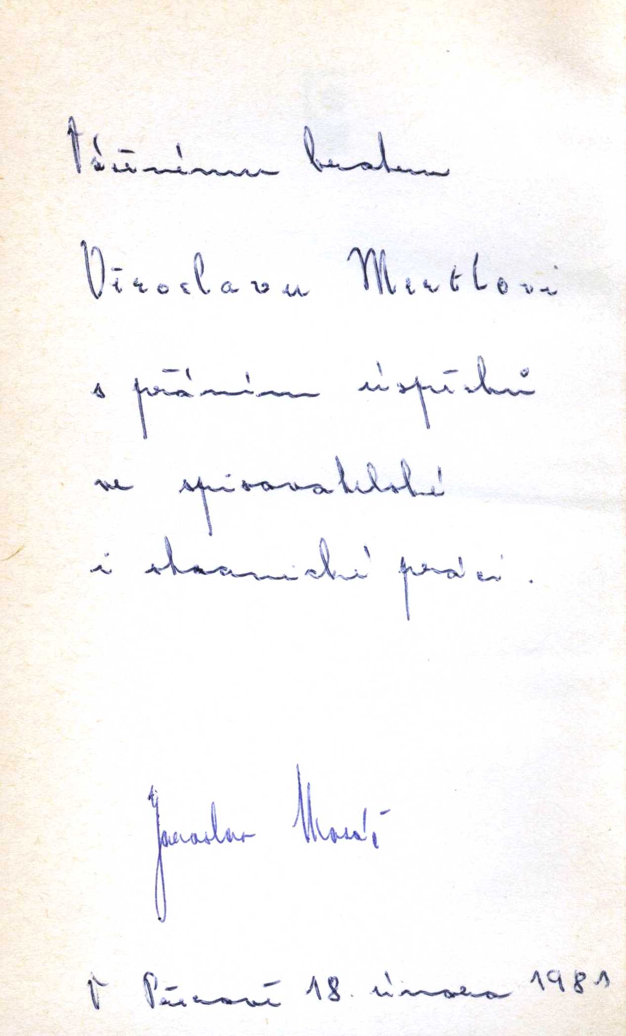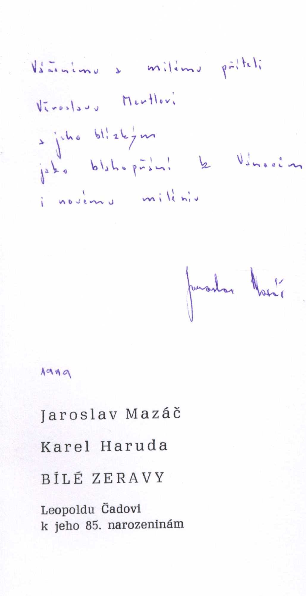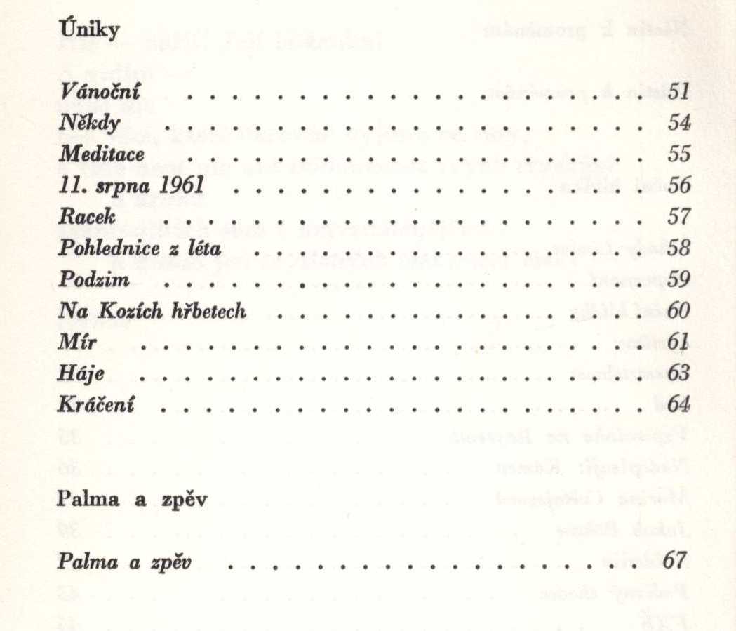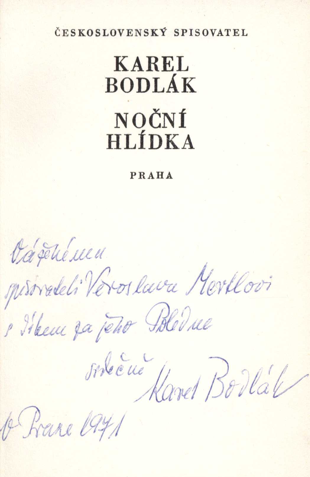 Názvové údaje Kosířské elegie / Otto F. Babler ; kresba v titulu od Cyrila Boudy ; k vydání připravil a ediční poznámku napsal Josef Glivický ; na obálce studie podoby Josefa Mánesa od Maxe Švabinského ; graficky upravil Alois Caletka Osobní jméno Babler, Otto František, 1901-1984 (Autor) (Dedikátor) Další autoři Glivický, Josef, 1903-1991 (Editor) (Autor úvodu atd.) Bouda, Cyril, 1901-1984 (Ilustrátor) Caletka, Alois, 1916-1997 (Knižní grafik) Mertl, Věroslav, 1929-2013 (Dedikant) Nakladatel Prostějov : Okresní knihovna, 1970 Výrobce V Olomouci : Moravské tiskařské závody Rozsah 19 stran : ilustrace Osobní hesla Mánes, Josef, 1820-1871 - malíř, ilustrátor, grafik Geografické heslo Čechy pod Kosířem (Česko) Klíčová slova čeští malíři * Morava * krajina * pobyt * vyznání * autobiografické eseje Počet ex. 4, z toho volných 5 Druh dok. monografie Signatura C12b 13298, C12b 14353, Branald 0317, P 134 f 100, M 156 g 62 Názvové údaje Noční hlídka / Karel Bodlák ; [dřevoryt na obálce Přemysl Rolčík ; typografie Oldřich Hlavsa] Osobní jméno Bodlák, Karel, 1903-1989 (Autor) (Dedikátor) Další autoři Rolčík, Přemysl, 1922-1989 (Ilustrátor) Hlavsa, Oldřich, 1909-1995 (Typograf) Mertl, Věroslav, 1929-2013 (Dedikant) Korp. Československý spisovatel (nakladatelství) (Nakladatel, vydavatel) Stráž, tiskařské závody (Tiskař) Nakladatel Praha : Československý spisovatel, 1971 Výrobce Stráž) Rozsah 70 s. Klíčová slova česká poezie * básně * výbor * stol. 20., léta 40.-60. Počet ex. 3, z toho volných 3 Druh dok. monografie Signatura C12a 1155, LK M 175 d 50, C12a 4574 Názvové údaje S odkrytým hledím / Vladimír Bozděch ; [kresby Jarmila Totušková ; grafická úprava Jan Jordán] Osobní jméno Bozděch, Vladimír, 1928-1991 (Autor) (Dedikátor) Další autoři Totušková, Jarmila, 1937- (Ilustrátor) Jordán, Jan, 1954- (Knižní grafik) Mertl, Věroslav, 1929-2013 (Dedikant) Korp. Blok (nakladatelství) (Nakladatel, vydavatel) Tisk Brno (tiskárna) (Tiskař) Nakladatel V Brně : Blok, 1978 Výrobce (Tisk 2) Rozsah 54 s. : il. Klíčová slova česká poezie * básně Počet ex. 1, z toho volných 1 Druh dok. monografie Signatura C12b 13317 Názvové údaje Miloslav Nováček (1923-1994) / texty - Hana Dobešová, František Dvořák, Milan Doubrava, Luboš Hlaváček, Josef Hošna, Václav Johanus, Jiří Kotalík, Bořivoj Lauda, Marcela Macková, Zdeněk Mráz, Stanislav Novotný, Blanka Pirnosová, Blanka Stehlíková ; rozhovory - Jan Bauer, Otakar Bílek, Věroslav Mertl ; foto - Radomír Postl, Karel Sláma, Michal Tůma ; grafická úprava - Anna Doubravová Osobní jméno Dobešová, Hana (Autor) Další autoři Dvořák, František, 1920-2015 (Autor) Doubrava, Milan, 1946-2017 (Autor) Hlaváček, Luboš, 1929-2007 (Autor) Hošna, Josef, 1926-2022 (Autor) Johanus, Václav, 1947-2024 (Autor) Kotalík, Jiří, 1920-1996 (Autor) Lauda, Bořivoj, 1922-2017 (Autor) Macková, Marcela (Autor) Mráz, Zdeněk, 1934-1993 (Autor) Novotný, Stanislav (Autor) Pirnosová, Blanka, 1946- (Autor) Stehlíková, Blanka, 1933- (Autor) Nováček, Miloslav, 1923-1994 (Umělec) Bauer, Jan, 1945-2025 (Dotazovatel, interviewující) Bílek, Otakar, 1932-2016 (Dotazovatel, interviewující) Mertl, Věroslav, 1929-2013 (Dotazovatel, interviewující) Postl, Radomír, 1939-2021 (Fotograf) Sláma, Karel, 1941- (Fotograf) Tůma, Michal, 1947- (Fotograf) Doubravová, Anna, 1957- (Knižní grafik) Reindlová, Alena (Nakladatel, vydavatel) (Autor úvodu atd.) Nárovec, František, 1954- (Autor úvodu atd.) Korp. Měsíc ve dne (nakladatelství) (Nakladatel, vydavatel) Typodesign (firma) (Tiskař) Nakladatel České Budějovice : Alena Reindlová ve spolupráci s nakladatelstvím Eliška Štěpánová - Měsíc ve dne, 2018 Výrobce České Budějovice : Typodesign s. r. o. Copyright © Eliška Štěpánová - Měsíc ve dne Rozsah 227 stran : ilustrace (některé barevné), portréty, faksimile ; 23 x 24 cm Osobní hesla Nováček, Miloslav, 1923-1994 - grafik, výtvarník, malíř, ilustrátor, autor dřevořezů a umělec Chronologie 1945-1994 Předmětová hesla Czech prints - 20th century * Czech drawing - 20th century * modern art - Czechia Klíčová slova česká literatura * monografie * výtvarné umění * moderní umění * grafické umění * grafika * kresba * čeští umělci * Nováček M. * Česko * stol. 20. Počet ex. 1, z toho volných 1 Druh dok. monografie Signatura C12b 18987 Názvové údaje Uskutečňování světla / Karel Křepelka ; výtvarný doprovod Karel Rechlík Osobní jméno Křepelka, Karel, 1946-1999 (Autor) (Dedikátor) Další autoři Rechlík, Karel, 1950- (Ilustrátor) Mertl, Věroslav, 1929-2013 (Dedikant) Korp. Sursum (nakladatelství) (Nakladatel, vydavatel) Nakladatel Tišnov : Sursum, 1992 Rozsah 38 s. : il Klíčová slova česká poezie * básně Počet ex. 2, z toho volných 2 Druh dok. monografie Signatura M 216 f 11, C12b 13308 Názvové údaje Chlebovice / František Lazecký ; [doslov napsal Václav Halat ; fotografie Jaroslav Žižka] Osobní jméno Lazecký, František, 1905-1984 (Autor) (Dedikátor) Další autoři Halát, Václav (Autor úvodu atd.) Žižka, Jaroslav (Fotograf) Mertl, Věroslav, 1929-2013 (Dedikant) Korp. Moravské tiskařské závody (firma) (Tiskař) Nakladatel Chlebovice : Osvětová beseda, 1983 Výrobce Moravské tiskařské závody, 21) Rozsah 14 s. : fot. ; 20 cm Klíčová slova česká poezie * básně * protinacistické básně * protiválečné básně Počet ex. 1, z toho volných 1 Druh dok. monografie Signatura C12b 13303 Názvové údaje Osudná píseň / František Lazecký ; [kresbami doprovodil J. V. Sládek] Osobní jméno Lazecký, František, 1905-1984 (Autor) (Dedikátor) Další autoři Sládek, Jan Václav, 1909-1992 (Ilustrátor) Mertl, Věroslav, 1929-2013 (Dedikant) Korp. Moravské tiskařské závody (firma) (Nakla