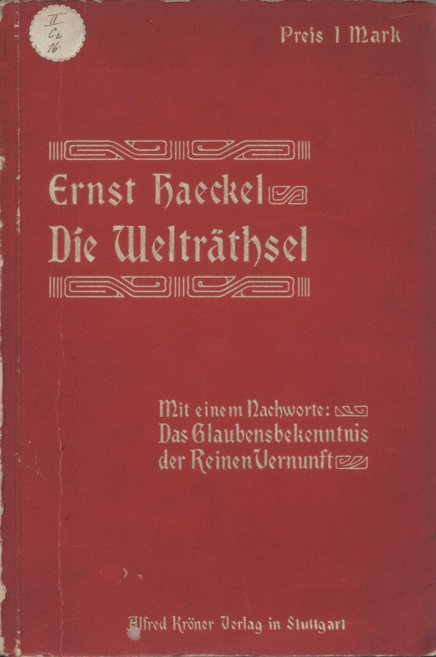 Názvové údaje Ungarns : Ausgleich mit Österreich vom Jahre 1867 / vom Julius Andrássy Osobní jméno Andrássy, Gyula, gróf, 1823-1890 Další autoři Karásek ze Lvovic, Jiří, 1871-1951 (Autor podpisu) Korp. Duncker & Humblot (Nakladatel, vydavatel) Pierer'sche Hofbuchdruckerei Stephan Geibel & Co. (tiskárna) (Tiskař) Národní jednota pošumavská (Dřívější majitel) (Dárce) Nakladatel Leipzig : Verlag von Duncker & Humblot, 1897 Výrobce Pierer'sche Hofbuchdruckerei Stephan Geibel & Co.) Rozsah 422 s. Klíčová slova maďarská literatura * Maďarsko * dějiny Rakousko-Uherska * Rakousko * Rakousko-Uhersko * evropská politika * mezinárodní vztahy * stol. 19., léta 60. Počet ex. 1, z toho volných 1 Druh dok. monografie Signatura KaG I E2 23 Názvové údaje Die Geschichte von Ulenspiegel und Lamm Goedzak : die fabelhafte Geschichte ihrer heldenmütigen, lustigen und rühmlichen Abenteuer in Flandern und andern Orts / Charles de Coster ; mit Bildern von Féllicien Rops ; [die Übersetzung und Bearbeitung dieses Werkes besorgte Kurt L. Walter van der Bleek auf Grund des Originals] Osobní jméno De Coster, Charles Théodore Henri, 1827-1879 (Autor) Další autoři Rops, Félicien, 1833-1898 (Ilustrátor) Walter van der Bleek, K. H. L., 1877-1946 (Autor úvodu atd.) Helbling, Vilibald, 1884- (Dárce) Korp. Wilhelm Borngräber Verlag (Leipzig, Německo) (Nakladatel, vydavatel) Pierer'sche Hofbuchdruckerei Stephan Geibel & Co. (tiskárna) (Tiskař) Nakladatel Berlin : Wilhelm Borngräber Verlag, [19--] Výrobce [Pierersche Hofbuchdruckerei Stephan Geibel & Co.]) Rozsah 612 s., [1] l. obr. příl. : il. Klíčová slova francouzská literatura * francouzská próza Počet ex. 1, z toho volných 1 Druh dok. monografie Signatura KaG XLI D 41 Názvové údaje Altweibersommer / Marie von Ebner-Eschenbach Osobní jméno Ebner-Eschenbach, Marie von, 1830-1916 (Autor) Další autoři Verlag von Gebrüder Paetel (Berlin) (Nakladatel, vydavatel) Pierer'sche Hofbuchdruckerei Stephan Geibel & Co. (tiskárna) (Tiskař) Nakladatel Berlin : Verlag von Gebrüder Paetel, 1909 Výrobce Pierersche Hofbuchdruckerei) Rozsah 171 s., [4] s. seznamu Werke von Marie von Ebner-Eschenbach, 8 s. seznamu Verlag von Gebrüder Paetel. Klíčová slova rakouská literatura * prózy * krátké prózy * krátké texty * podzim * úvahy Počet ex. 1, z toho volných 1 Druh dok. monografie Signatura KaG I B2 35 Názvové údaje Die unbesiegbare Nacht : zwei Erzählungen / von Marie Ebner-Eschenbach Osobní jméno Ebner-Eschenbach, Marie von, 1830-1916 (Autor) Další autoři Perger, Anna (Autor podpisu) (Dřívější majitel) Hellmuthová, Marta, 1917-1988 (Dřívější majitel) (Autor podpisu) Korp. Verlag von Gebrüder Paetel (Berlin) (Nakladatel, vydavatel) Pierer'sche Hofbuchdruckerei Stephan Geibel & Co. (tiskárna) (Tiskař) Nakladatel Berlin : Verlag von Gebrüder Paetel, 1905 Výrobce Pierer'sche Hofbuchdruckerei Stephan Geibel & Co.) Rozsah 339 s. Klíčová slova německá literatura * pražská německá literatura * německá próza Počet ex. 1, z toho volných 1 Druh dok. monografie Signatura VHB 3897 Názvové údaje Effi Briest : Roman / von Theodor Fontane Osobní jméno Fontane, Theodor, 1819-1898 (Autor) Další autoři S. Fischer Verlag (nakladatelství) (Nakladatel, vydavatel) Pierer'sche Hofbuchdruckerei Stephan Geibel & Co. (tiskárna) (Tiskař) Nakladatel Berlin : S. Fischer, 1919 Výrobce Pierer'sche Hofbuchdruckerei Stephan Geibel & Co.) Rozsah 374 s. Klíčová slova německá literatura * německá próza Počet ex. 1, z toho volných 1 Druh dok. monografie Signatura VHB 3902 Názvové údaje Der arme Spielmann / von Franz Grillparzer Osobní jméno Grillparzer, Franz, 1791-1872 (Autor) Další autoři Karásek ze Lvovic, Jiří, 1871-1951 (Autor podpisu) Korp. Insel-Verlag (nakladatelství) (Nakladatel, vydavatel) Pierer'sche Hofbuchdruckerei Stephan Geibel & Co. (tiskárna) (Tiskař) Nakladatel Leipzig : Insel-Verlag, [před r. 1936] Výrobce Druck der Piererschen Hofbuchdruckerei) Rozsah 57, [3] s. Klíčová slova rakouská próza * novela Počet ex. 1, z toho volných 1 Druh dok. monografie Signatura KaG XLVII D2 19 Názvové údaje Die Welträthsel : Gemeinverständliche Studien über monistische Philosophie : mit einem Nachworte: Das Glaubensbekenntniss der Reinen Vernunft / Ernst Haeckel Osobní jméno Haeckel, Ernst, 1834-1919 (Autor) Další autoři Alfred Kröner (Leipzig, Německo) (Nakladatel, vydavatel) Pierer'sche Hofbuchdruckerei Stephan Geibel & Co. (tiskárna) (Tiskař) Nakladatel Stuttgart : Alfred Kröner, [19--] Výrobce Pierer'sche Hofbuchdruckerei Stephan Geibel & Co.) Rozsah 176 s. Klíčová slova německá literatura * filozofie * duše Počet ex. 1, z toho volných 1 Druh dok. monografie Signatura KaG II C2 16 Názvové údaje Ausgewählte Schriften / Wilhelm von Humboldt ; herausgegeben von Theodor Kappstein Osobní jméno Humboldt, Wilhelm von, 1767-1835 (Autor) Další autoři Kappstein, Theodor, 1870-1960 (Editor) (Autor úvodu atd.) Korp. Wilhelm Borngräber Verlag (Leipzig, Německo) (Nakladatel, vydavatel) Pierer'sche Hofbuchdruckerei Stephan Geibel & Co. (tiskárna) (Tiskař) Nakladatel Berlin : Wilhelm Borngräber, [19--] Výrobce In der Piererschen Hofbuchdruckerei Stephan Geibel & Co.) Rozsah 527 s. : il. Klíčová slova německá literatura * filozofie * filozofické úvahy * literární úvahy * politické úvahy Počet ex. 1, z toho volných 1 Druh dok. monografie Signatura VHB 3387 Názvové údaje Die wirtschaftlichen Folgen des Friedensvertrages : einzig autorisierte Übersetzung aus dem Englischen / von John Maynard Keynes ; übersetzt von M. J. Bonn und C. Brinkmann Osobní jméno Keynes, John Maynard, 1883-1946 (Autor) Další autoři Brinkmann, Carl, 1885-1954 (Překladatel) Korp. Duncker & Humblot (Nakladatel, vydavatel) Pierer'sche Hofbuchdruckerei Stephan Geibel & Co. (tiskárna) (Tiskař) Nakladatel München und Leipzig : 