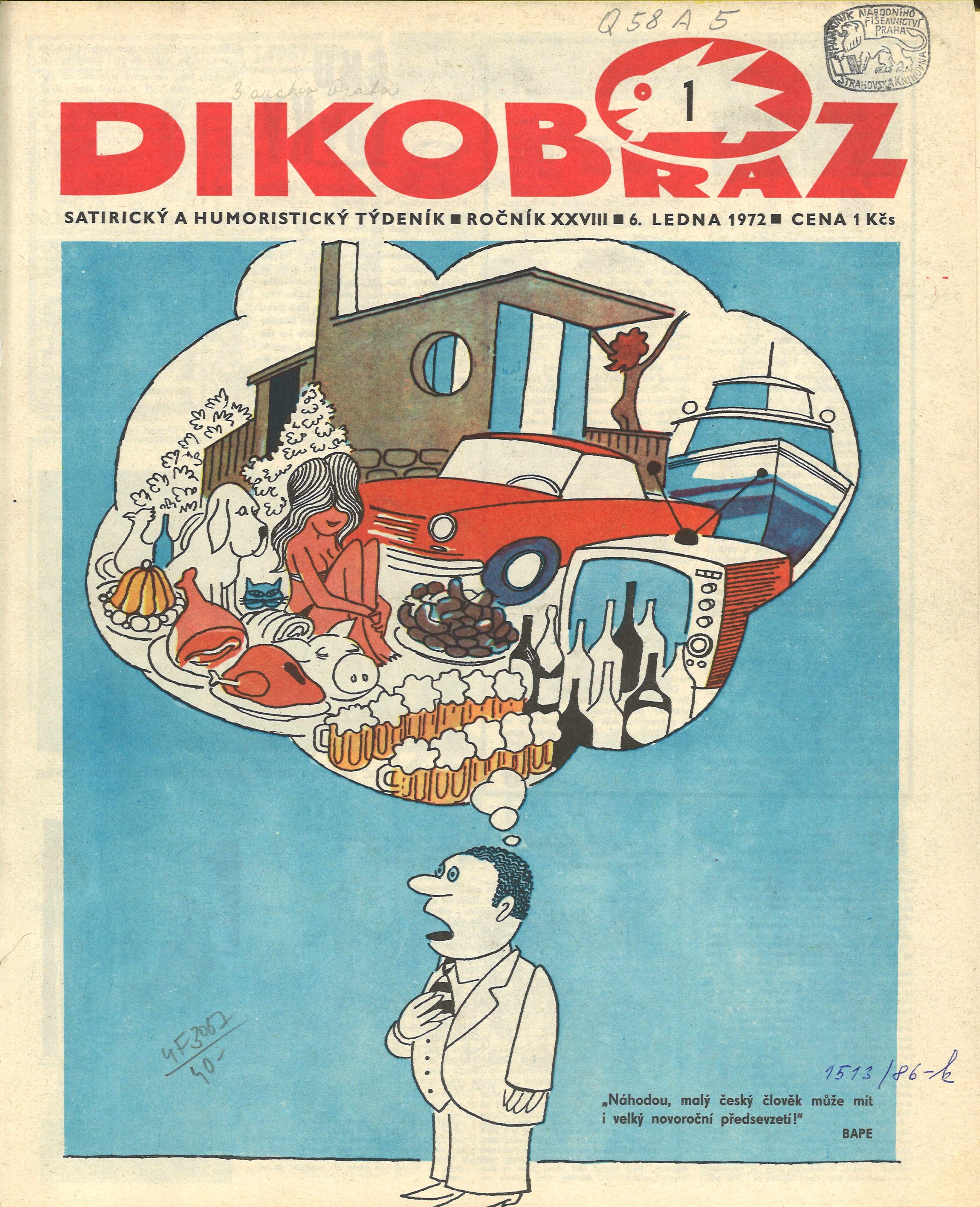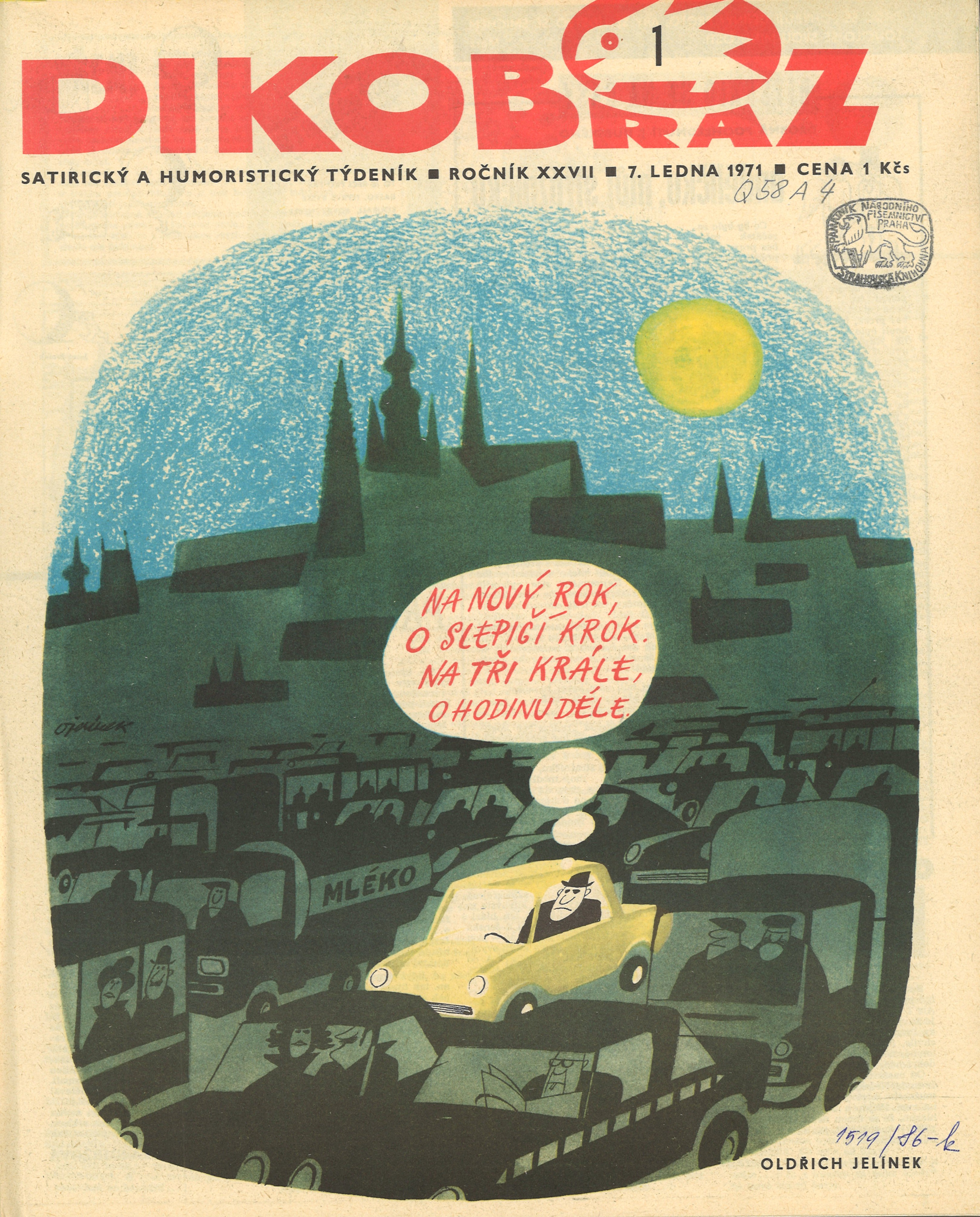 Názvové údaje Dikobraz : satirický a humoristický týdeník Další autoři Bešta, Jindřich, 1927-2001 (Šéfredaktor, odpovědný redaktor) Daniel, Jiří, 1945- (Redaktor, výkonný redaktor) Dvořák, Zdeněk (Redaktor, výkonný redaktor) Korp. Nakladatelství Rudé právo (Nakladatel, vydavatel) Svoboda (tiskárna) (Tiskař) Roč., číslo Ročník 45, číslo 1-19, 21-27, 29-52, 1989 Nakladatel Praha : Rudé právo, 1989 Výrobce Svoboda, grafické závody, n. p. Rozsah ilustrace, fotografie ; 32 cm Klíčová slova humorné kresby * humorné vyprávění * kreslená satira * vtipy * r. 1989 * satirický časopis Nadřízená jednotka Dikobraz Počet ex. 1, z toho volných 1 Druh dok. PERIODIKA - Svázaný ročník periodika Signatura Ac 0395 Názvové údaje Dikobraz : satirický a humoristický týdeník Další autoři Bešta, Jindřich, 1927-2001 (Editor) Daniel, Jiří, 1945- (Knižní grafik) Korp. Nakladatelství Rudé právo (Nakladatel, vydavatel) Roč., číslo ročník 44., číslo 1-52, 1988 Nakladatel Praha : Rudé právo, 1988 Rozsah il. Klíčová slova humorné kresby * humorné vyprávění * kreslená satira * vtipy * satirický časopis Nadřízená jednotka Dikobraz Počet ex. 1, z toho volných 1 Druh dok. PERIODIKA - Svázaný ročník periodika Signatura Aa 01315 Názvové údaje Dikobraz : satirický a humoristický týdeník Další autoři Bešta, Jindřich, 1927-2001 (Editor) Daniel, Jiří, 1945- (Knižní grafik) Korp. Nakladatelství Rudé právo (Nakladatel, vydavatel) Roč., číslo ročník 43., číslo 1-28, 30-52, 1987 Nakladatel Praha : Rudé právo, 1987 Rozsah il. Klíčová slova humorné kresby * humorné vyprávění * kreslená satira * vtipy * satirický časopis Nadřízená jednotka Dikobraz Počet ex. 1, z toho volných 1 Druh dok. PERIODIKA - Svázaný ročník periodika Signatura Aa 01314 Názvové údaje Dikobraz : satirický a humoristický týdeník Další autoři Bešta, Jindřich, 1927-2001 (Editor) Daniel, Jiří, 1945- (Knižní grafik) Korp. Nakladatelství Rudé právo (Nakladatel, vydavatel) Roč., číslo ročník 42., číslo 1-52, 1986 Nakladatel Praha : Rudé právo, 1986 Rozsah il. Klíčová slova humorné kresby * humorné vyprávění * kreslená satira * vtipy * satirický časopis Nadřízená jednotka Dikobraz Počet ex. 1, z toho volných 1 Druh dok. PERIODIKA - Svázaný ročník periodika Signatura Aa 01313 Názvové údaje Dikobraz : satirický a humoristický týdeník Další autoři Bešta, Jindřich, 1927-2001 (Šéfredaktor, odpovědný redaktor) Daniel, Jiří, 1945- (Knižní grafik) Korp. Nakladatelství Rudé právo (Nakladatel, vydavatel) Svoboda (tiskárna) (Tiskař) Roč., číslo Ročník 29, číslo 1-52, 1973 Nakladatel Praha : Rudé právo, 1973 Výrobce Svoboda, grafické závody, n. p. Rozsah ilustrace ; 35 cm Klíčová slova humorné kresby * humorné vyprávění * kreslená satira * vtipy * r. 1973 * satirický časopis Nadřízená jednotka Dikobraz Počet ex. 1, z toho volných 1 Druh dok. PERIODIKA - Svázaný ročník periodika Signatura Q 58 A 6 Názvové údaje Dikobraz : satirický a humoristický týdeník Další autoři Bešta, Jindřich, 1927-2001 (Šéfredaktor, odpovědný redaktor) Daniel, Jiří, 1945- (Knižní grafik) Korp. Nakladatelství Rudé právo (Nakladatel, vydavatel) Svoboda (tiskárna) (Tiskař) Roč., číslo Ročník 28, číslo 1-52, 1972 Nakladatel Praha : Rudé právo, 1972 Výrobce Svoboda, grafické závody, n. p. Rozsah ilustrace ; 35 cm Klíčová slova humorné kresby * humorné vyprávění * kreslená satira * vtipy * r. 1972 * satirický časopis Nadřízená jednotka Dikobraz Počet ex. 1, z toho volných 1 Druh dok. PERIODIKA - Svázaný ročník periodika Signatura Q 58 A 5 Názvové údaje Dikobraz : satirický a humoristický týdeník Další autoři Bešta, Jindřich, 1927-2001 (Šéfredaktor, odpovědný redaktor) Motyčka, Dušan, 1926- (Knižní grafik) Daniel, Jiří, 1945- (Knižní grafik) Korp. Nakladatelství Rudé právo (Nakladatel, vydavatel) Svoboda (tiskárna) (Tiskař) Roč., číslo Ročník 27, číslo 1-52, 1971 Nakladatel Praha : Rudé právo, 1971 Výrobce Svoboda, grafické závody, n. p. Rozsah ilustrace ; 35 cm Klíčová slova humorné kresby * humorné vyprávění * kreslená satira * vtipy * r. 1971 * satirický časopis Nadřízená jednotka Dikobraz Počet ex. 1, z toho volných 1 Druh dok. PERIODIKA - Svázaný ročník periodika Signatura Q 58 A 4 Názvové údaje Dikobraz : satirický a humoristický týdeník Další autoři Růžička Antonín (Šéfredaktor, odpovědný redaktor) Bešta, Jindřich, 1927-2001 (Redaktor, výkonný redaktor) Motyčka, Dušan, 1926- (Knižní grafik) Korp. Nakladatelství Rudé právo (Nakladatel, vydavatel) Svoboda (tiskárna) (Tiskař) Roč., číslo Ročník 26, číslo 1-52, 1970 Nakladatel Praha : Rudé právo, 1970 Výrobce Svoboda, grafické závody, n. p. Rozsah ilustrace ; 35 cm Klíčová slova humorné kresby * humorné vyprávění * kreslená satira * vtipy * r. 1970 * satirický časopis Nadřízená jednotka Dikobraz Počet ex. 1, z toho volných 1 Druh dok. PERIODIKA - Svázaný ročník periodika Signatura Q 58 A 3 Názvové údaje Dikobraz : satirický a humoristický týdeník Další autoři Růžička Antonín (Tiskař) Korp. Nakladatelství Rudé právo (Nakladatel, vydavatel) Svoboda (tiskárna) (prt (Praha)) Roč., číslo ročník 23, číslo 1-52, 1967 Nakladatel Praha : Rudé právo, 1967 Výrobce (Svoboda) Rozsah il. Klíčová slova humorné kresby * humorné vyprávění * kreslená satira * vtipy * r. 1967 * satirický časopis Nadřízená jednotka Dikobraz Počet ex. 1, z toho volných 1 Druh dok. PERIODIKA - Svázaný ročník periodika Signatura Q 58 A 2 Názvové údaje Dikobraz : satirický týdeník Další autoři Růžička Antonín (Šéfredaktor, odpovědný redaktor) Korp. Nakladatelství Rudé právo (Nakladatel, vydavatel) Svob
