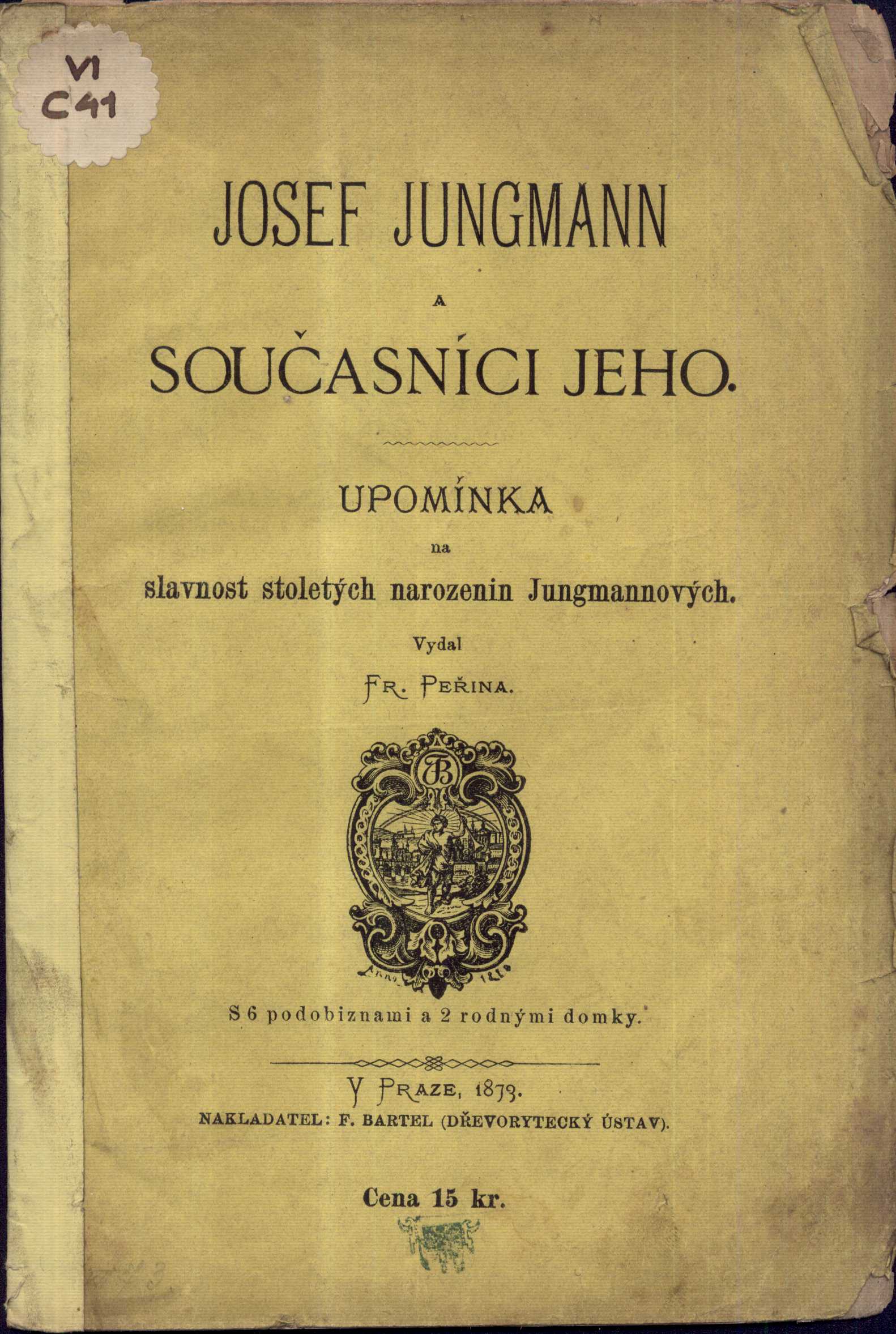 Názvové údaje Josef Jungmann a současníci jeho : upomínka na slavnost stoletých narozenin Jungmannových : s 6 podobiznami a 2 rodnými domky / vydal Fr. Peřina Osobní jméno Peřina, František Jaroslav, 1844-1902 (Autor) Další autoři F. Bartel (nakladatelství) (Nakladatel, vydavatel) J. B. Pichl a spol. (Tiskař) Nakladatel V Praze : F. Bartel (dřevorytecký ústav), 1873 Výrobce J. B. Pichl a spol. Rozsah 32 stran : ilustrace ; 20 cm Osobní hesla Jungmann, Josef, 1773-1847 - filolog, literární historik, lexikograf, pedagog, spisovatel a překladatel Klíčová slova česká literatura * národní obrození * Jungmann J. Počet ex. 1, z toho volných 1 Druh dok. monografie Signatura KaG VI C 41