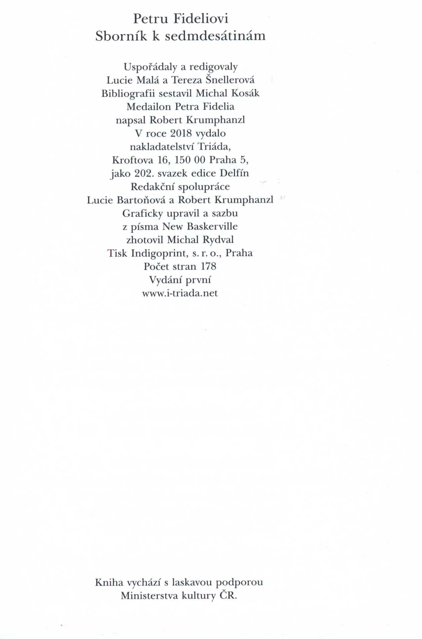 Názvové údaje Umouněnec / François Mauriac ; z francouzského originálu Le Sagouin ... přeložil Karel Palek Osobní jméno Mauriac, François, 1885-1970 (Autor) Další autoři Palek, Karel, 1948- (Překladatel) Bergr, Věroslav, 1928-2022 (Autor obálky) Korp. Vyšehrad (nakladatelství) (Nakladatel, vydavatel) Mír, novinářské závody (tiskárna) (Tiskař) Unifikovaný název Sagouin. Česky Nakladatel Praha : Vyšehrad, 1983 Výrobce Praha : Mír, n. p., závod 5 Rozsah 92 stran : ilustrace ; 18 cm Klíčová slova francouzská literatura * próza * Mauriac F. * novela * český překlad * Palek K. * r. 1983 Počet ex. 1, z toho volných 1 Adr. el. zdr. http://krameriusndk.nkp.cz/search/handle/uuid:b3032bc0-2760-11e3-9319-005056827e51 Druh dok. monografie Signatura VZinková 0678 Názvové údaje Jak se dělají filosofie / Zdeněk Vašíček ; [k vydání připravili Robert Krumphanzl a Karel Palek ; typograficky vypravila a obálku navrhla Markéta Jelenová] Osobní jméno Vašíček, Zdeněk, 1933-2011 (Autor) Další autoři Krumphanzl, Robert, 1973- (Editor) Palek, Karel, 1948- (Editor) Jelenová, Markéta, 1970- (Typograf) (Autor obálky) Nakladatel Praha : Triáda, 2012 Rozsah 238 s. Klíčová slova filozofie * filozofické myšlení * filozofické kategorie * pojem * jazyk * odborný jazyk * filozofie vědy * studie Počet ex. 1, z toho volných 1 Druh dok. monografie Signatura C12b 14053 Názvové údaje Petru Fideliovi - sborník k sedmdesátinám / uspořádaly a redigovaly Lucie Malá a Tereza Šnellerová ; medailon Petra Fidelia napsal Robert Krumphanzl ; graficky upravil a sazbu... zhotovil Michal Rydval Další autoři Fidelius, Petr, 1948- (Poctěná osoba) Malá, Lucie (Editor) (Sestavovatel, kompilátor) Šnellerová, Tereza, (Editor) (Sestavovatel, kompilátor) 1988- Krumphanzl, Robert, 1973- (Autor citací nebo úryvků textu) Rydval, Michal, 1973- (Knižní grafik) (Sazeč) Korp. Triáda (nakladatelství) (Nakladatel, vydavatel) Indigoprint (tiskárna) (Tiskař) Nakladatel Praha : Triáda, 2018 Výrobce Indigoprint, s.r.o. Rozsah 175 stran ; 19 cm Osobní hesla Fidelius, Petr, 1948- - esejista, filolog, překladatel, editor, vysokoškolský pedagog * Palek, Karel, 1948- - esejista, filolog, překladatel, editor, vysokoškolský pedagog Klíčová slova filologové * publicisté * Česko * stol. 20.-21. * filozofie jazyka * politické aspekty * biografie * sborníky * jubilejní publikace * personální bibliografie Počet ex. 1, z toho volných 1 Druh dok. monografie Signatura C12b 18980